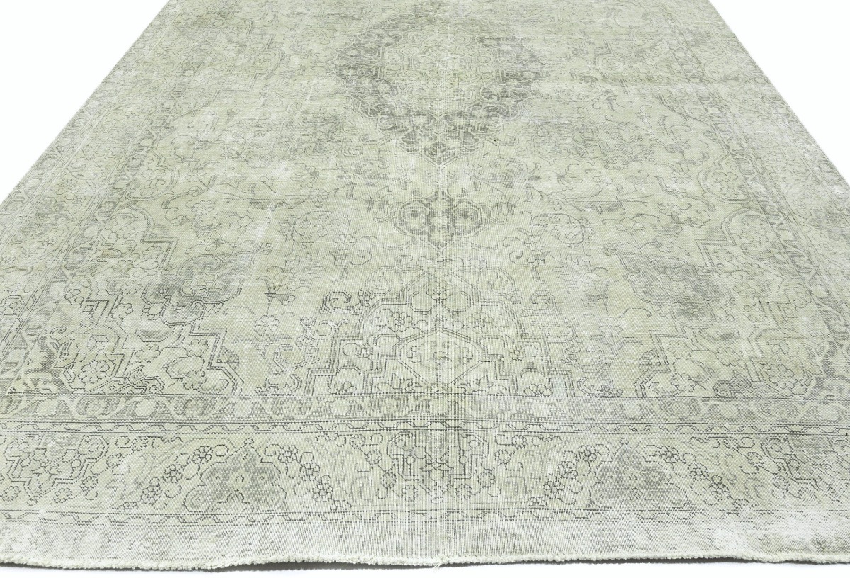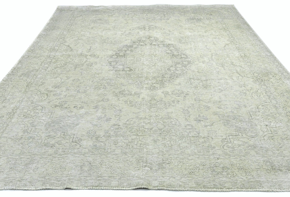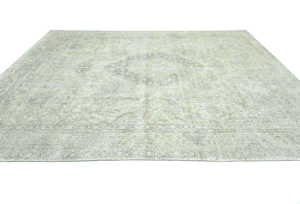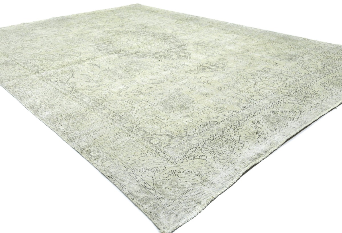 Antique Muted Beige Floral 9'5X12'5 Distressed Vintage Oriental Rug