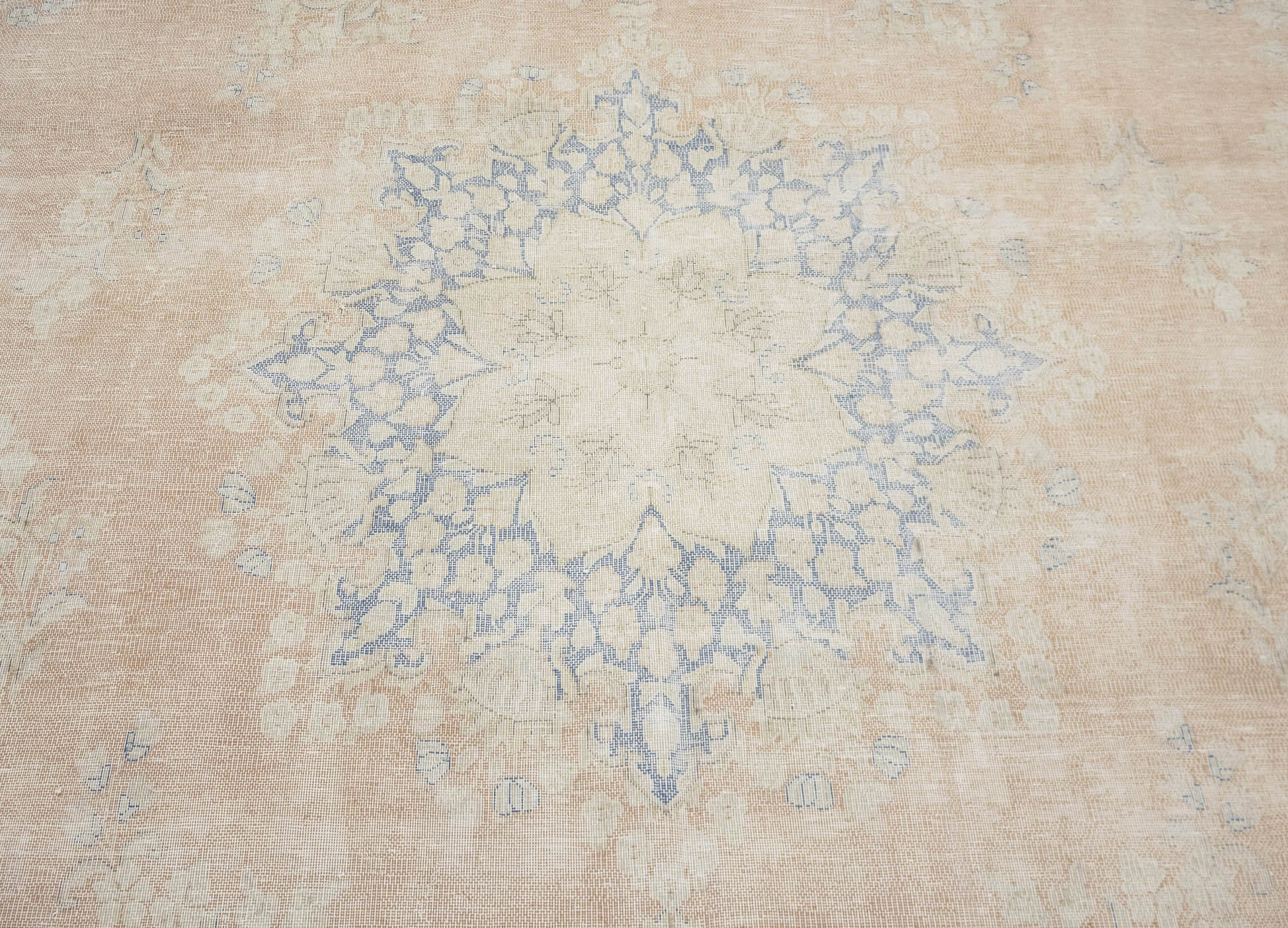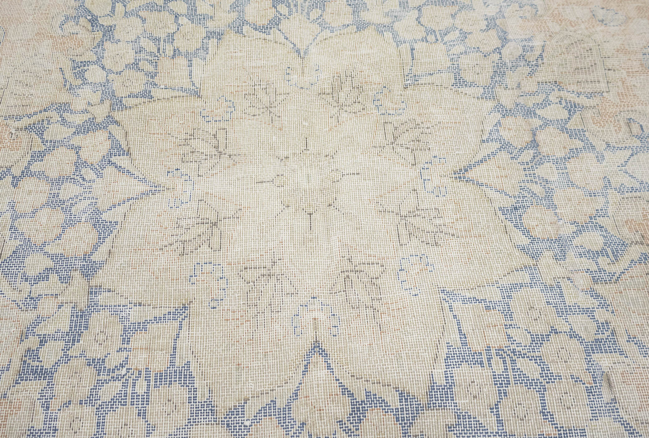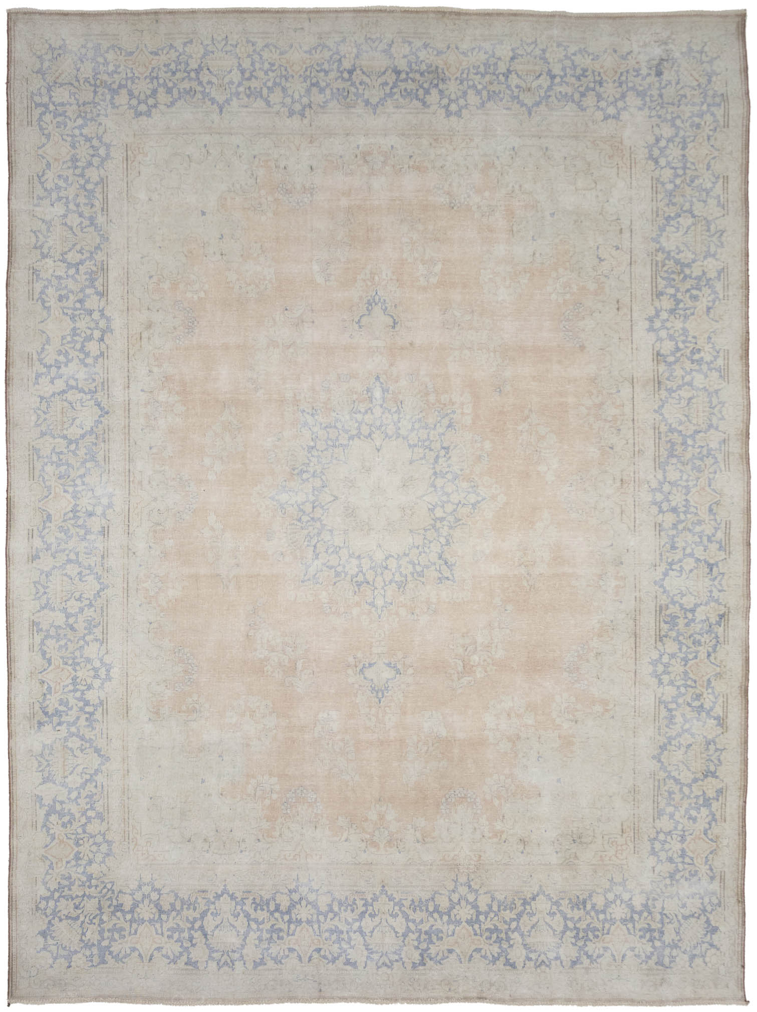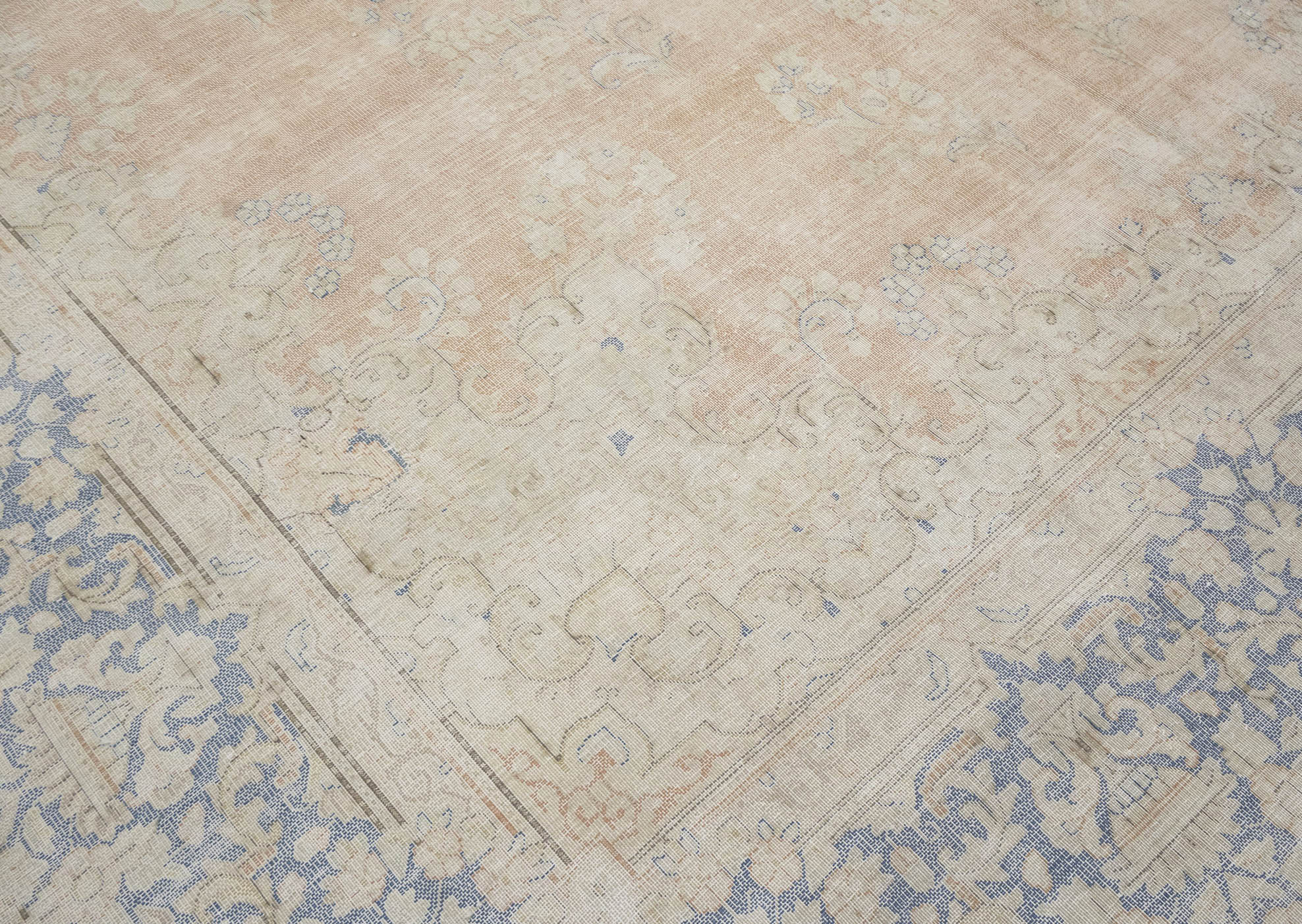Antique Muted Beige Floral 9'5X12'7 Distressed Vintage Oriental Rug