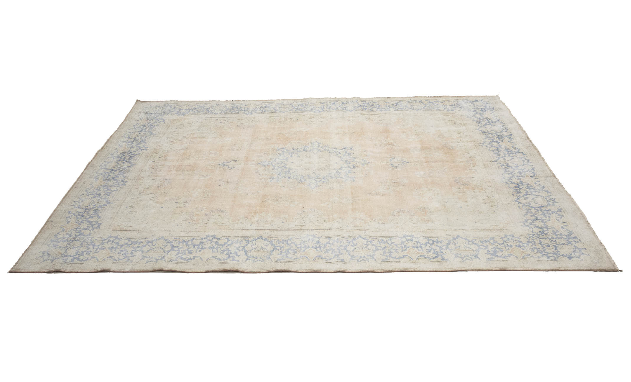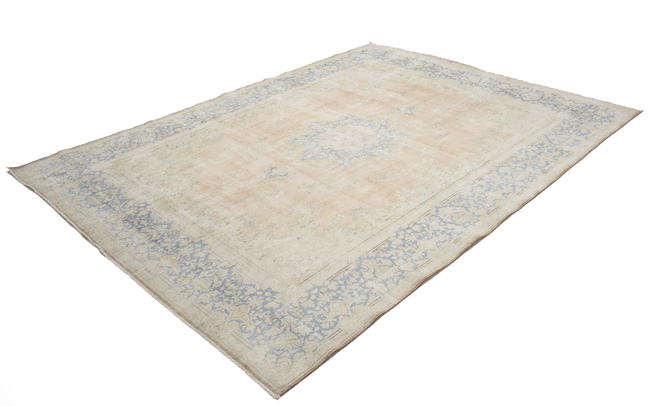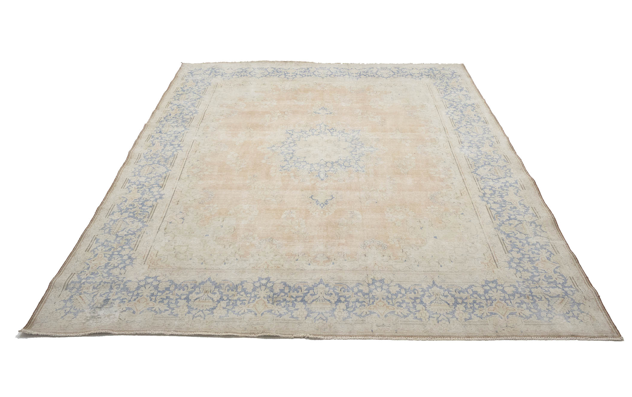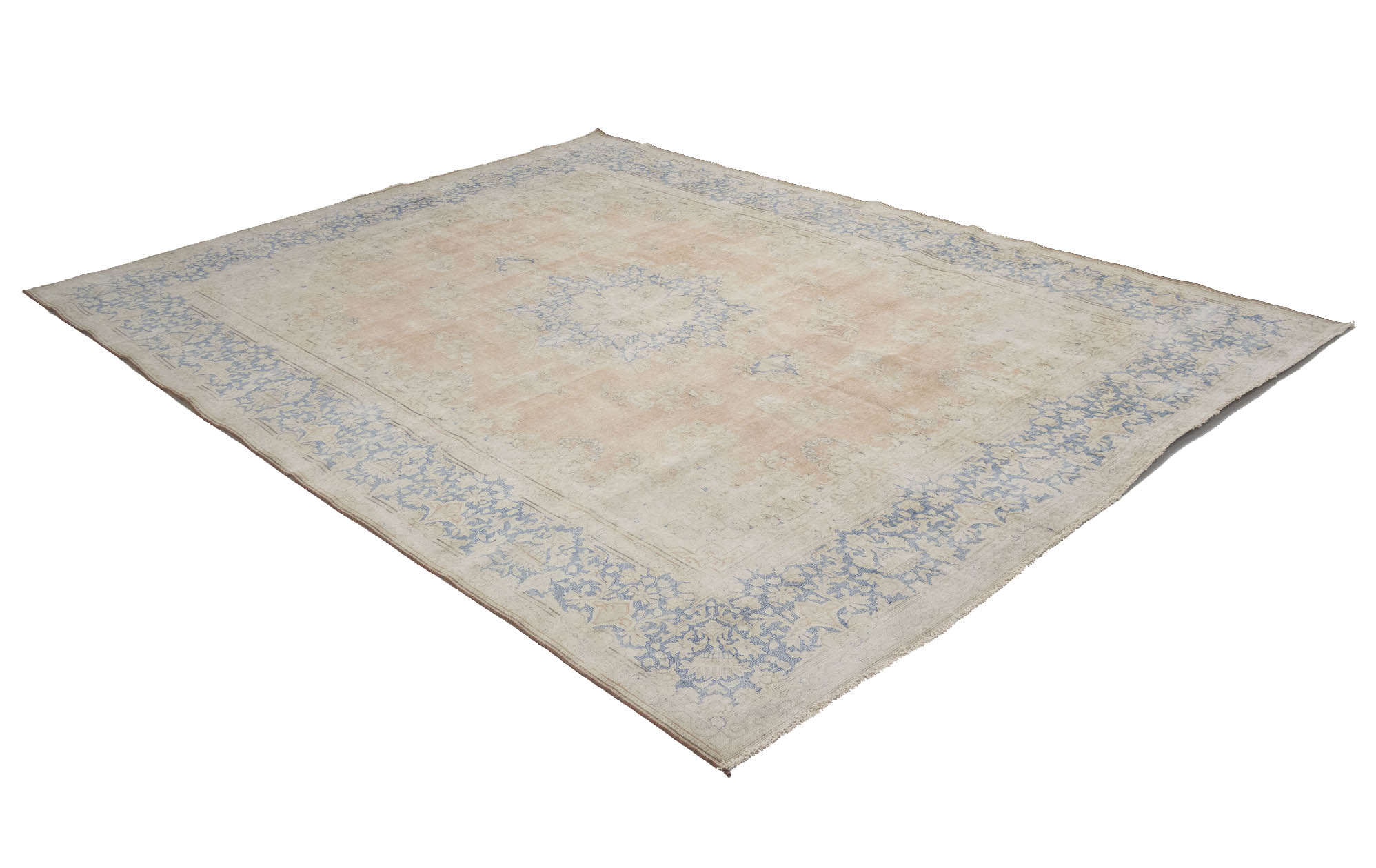 Antique Muted Beige Floral 9'5X12'7 Distressed Vintage Oriental Rug