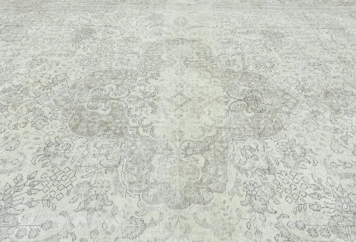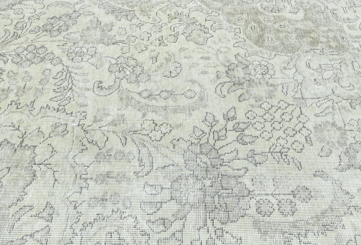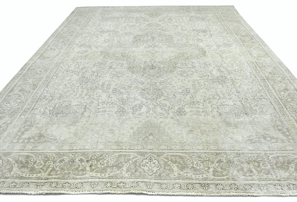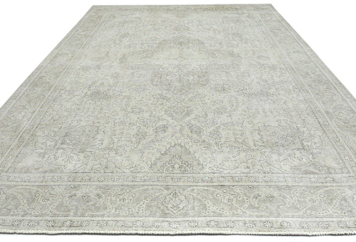 Antique Muted Beige Floral 9'6X12'5 Distressed Vintage Oriental Rug