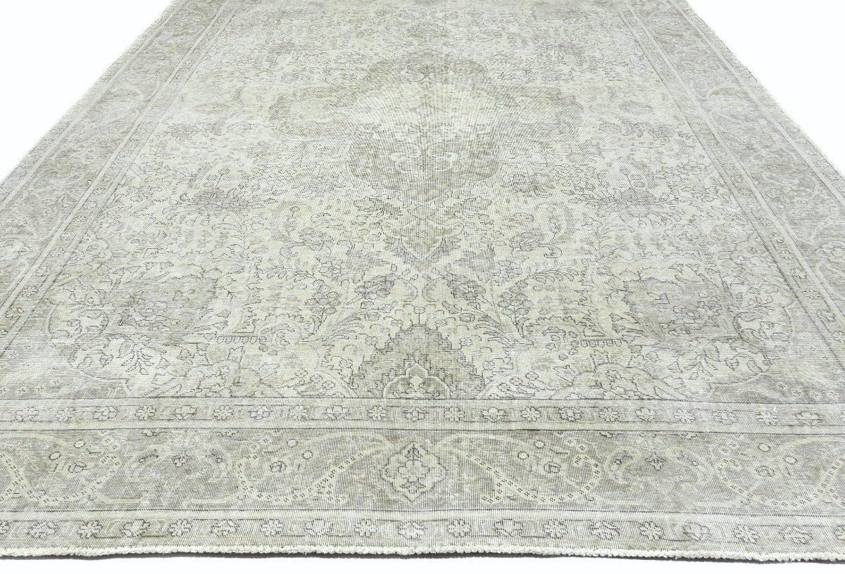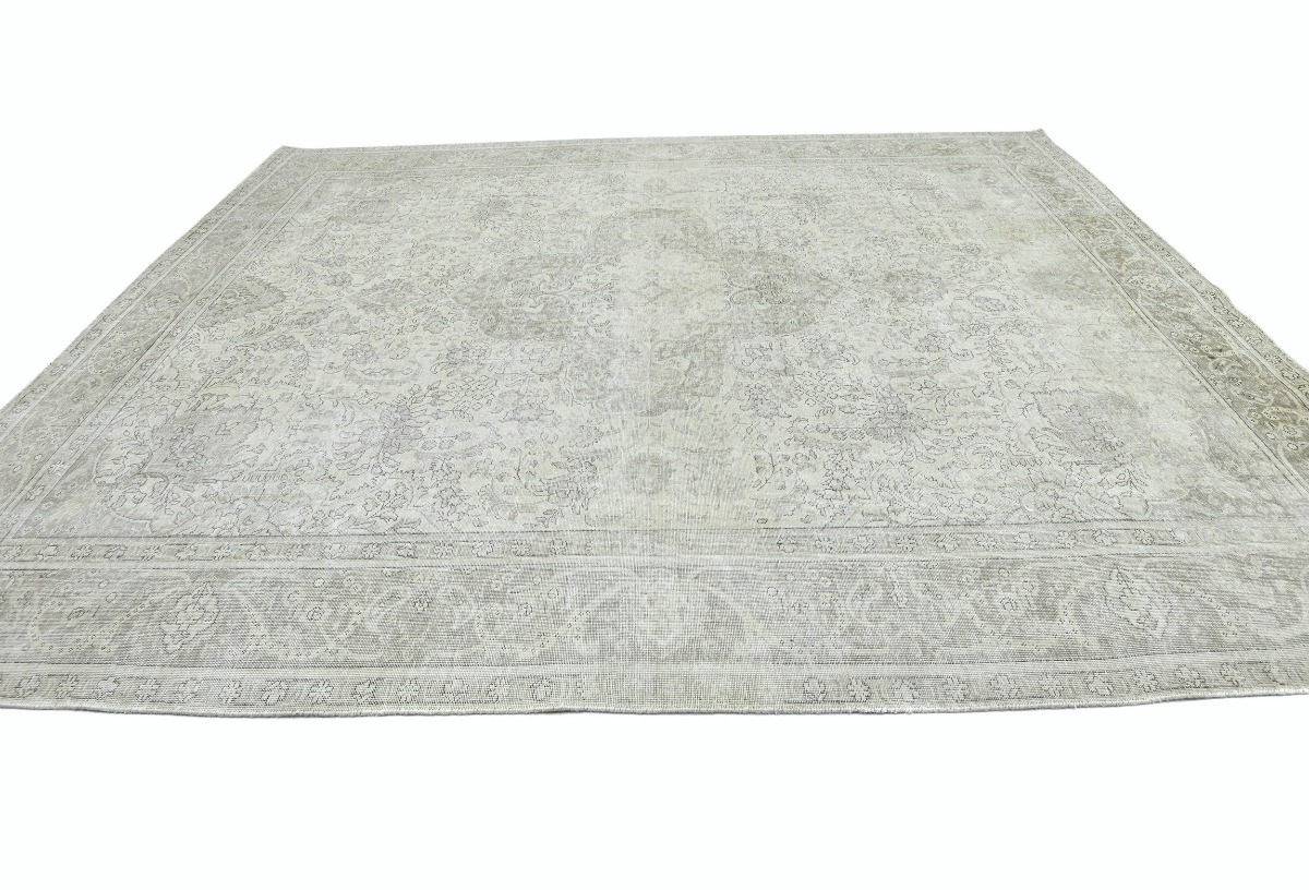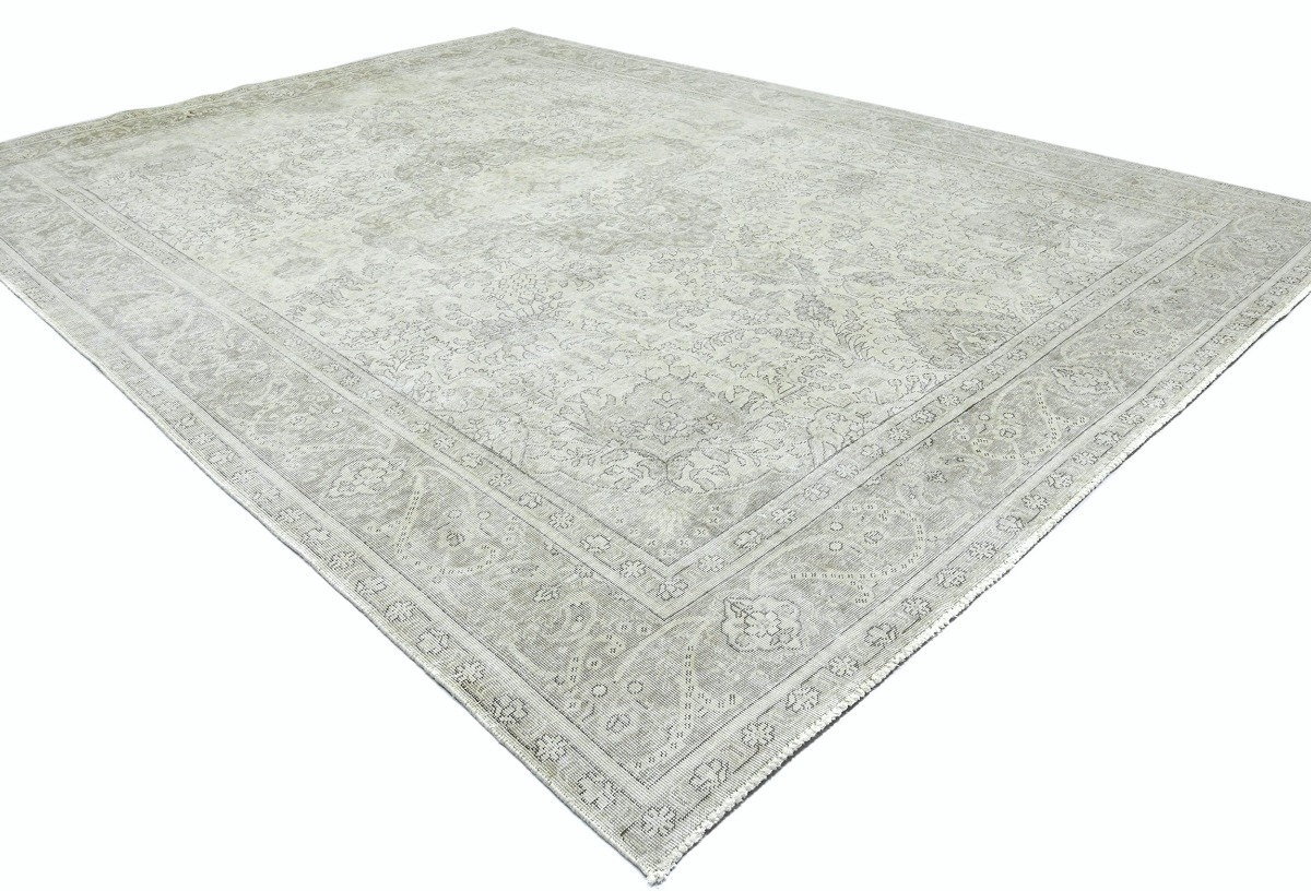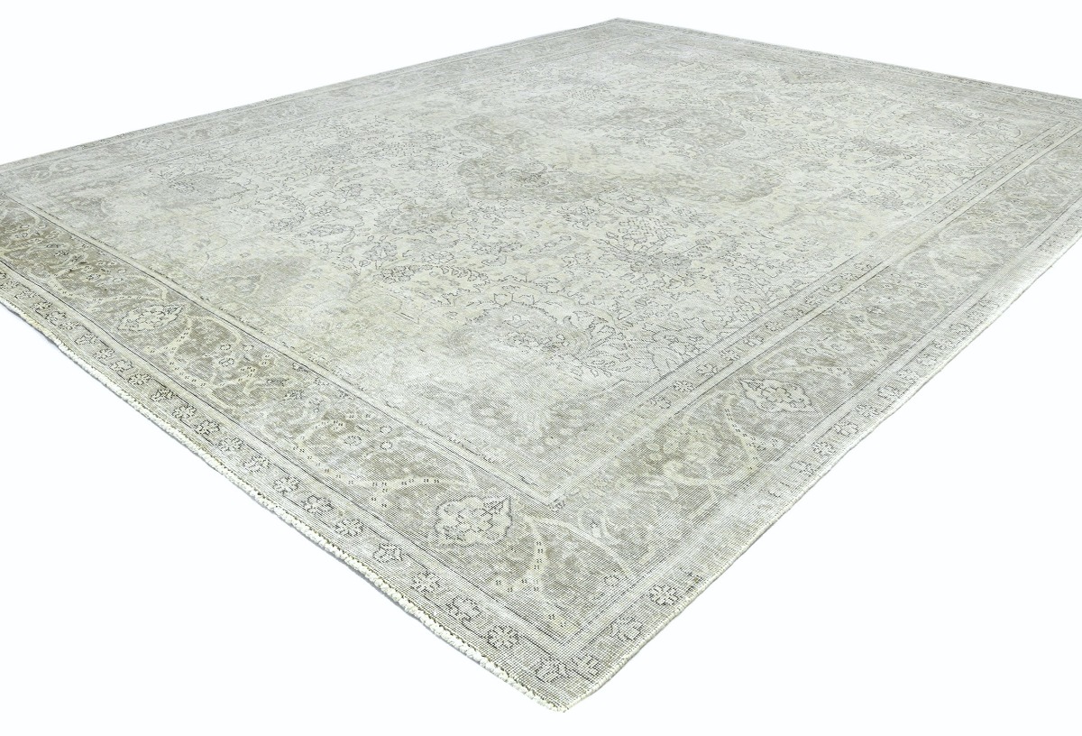 Antique Muted Beige Floral 9'6X12'5 Distressed Vintage Oriental Rug