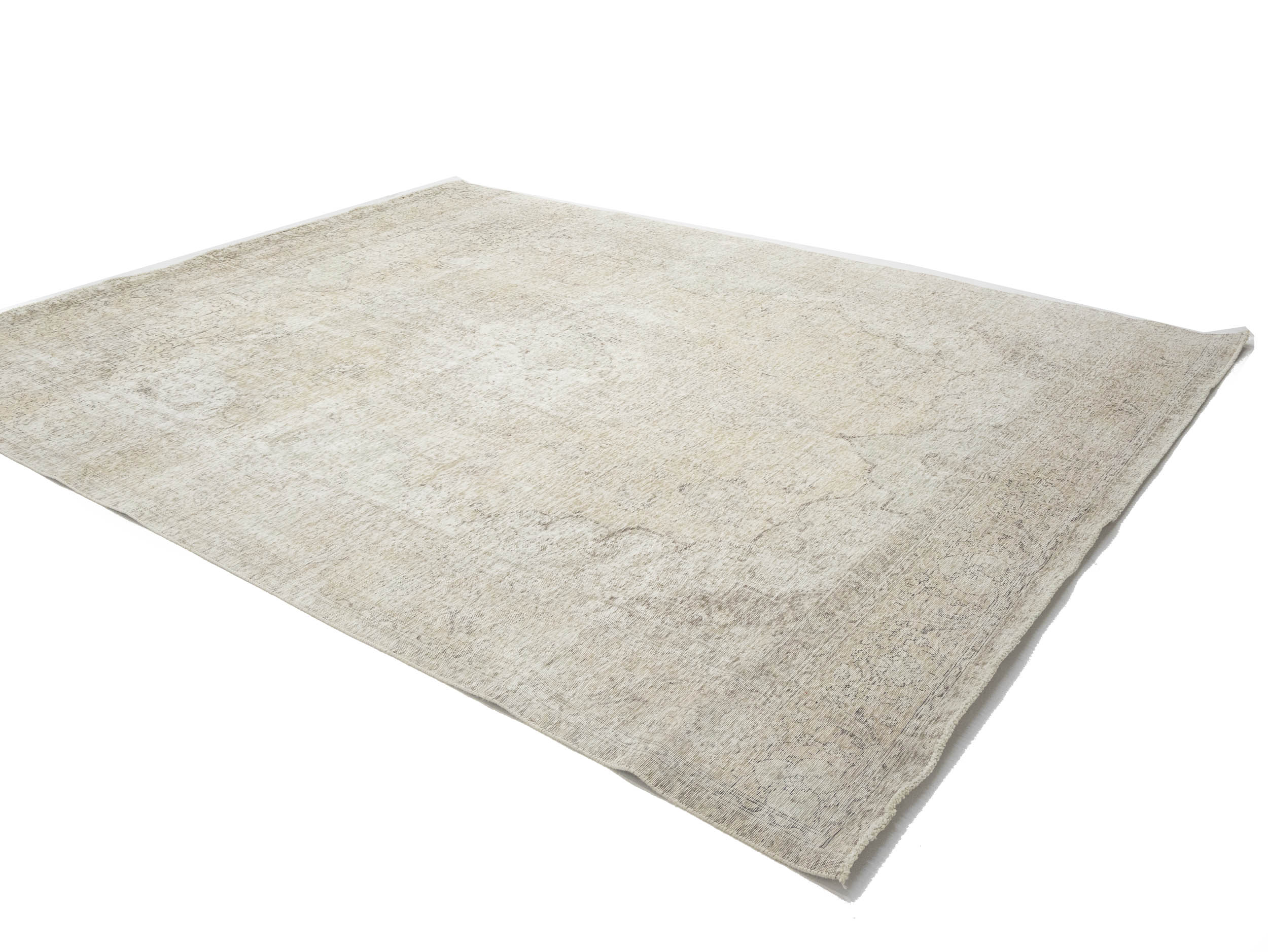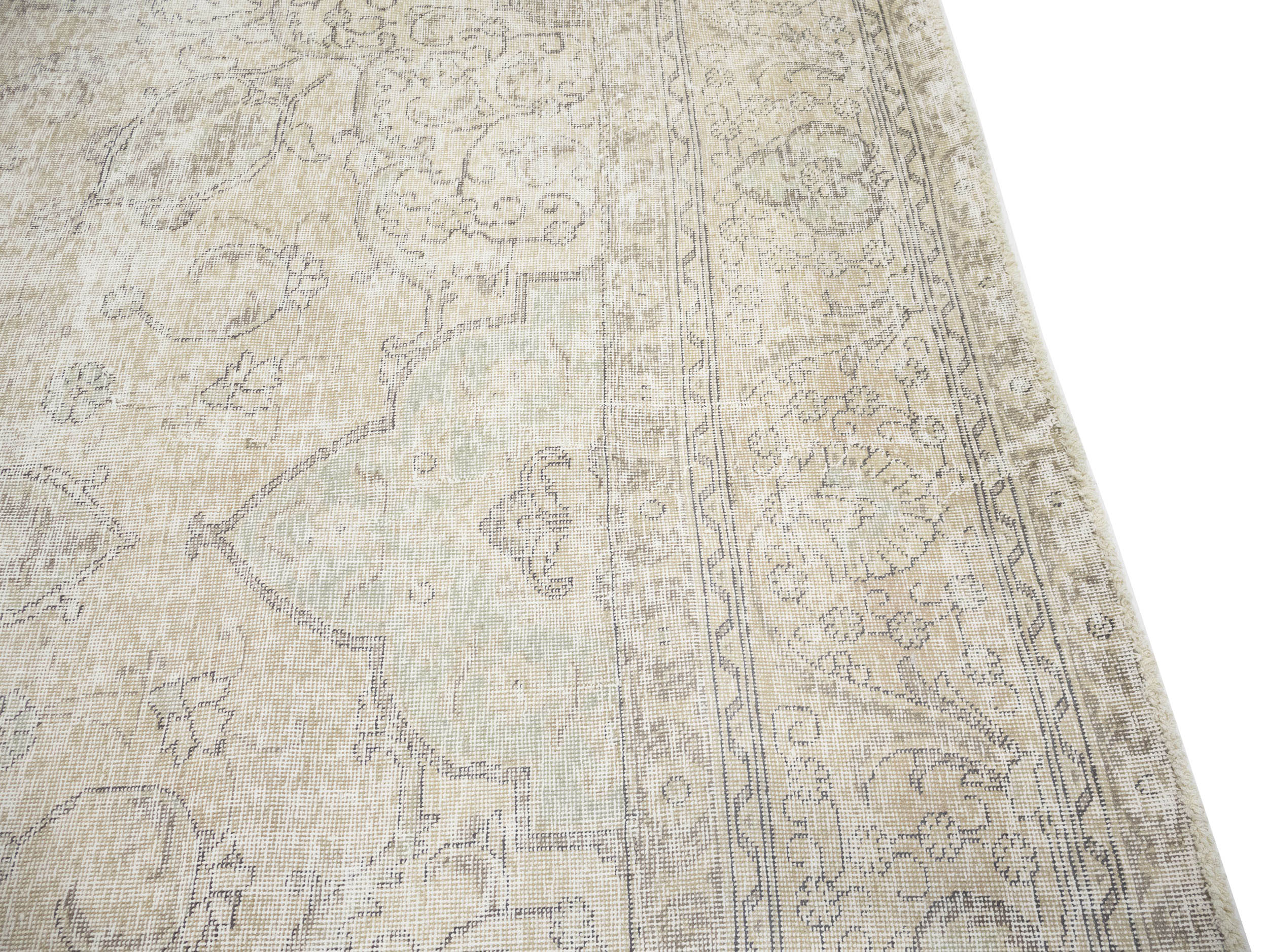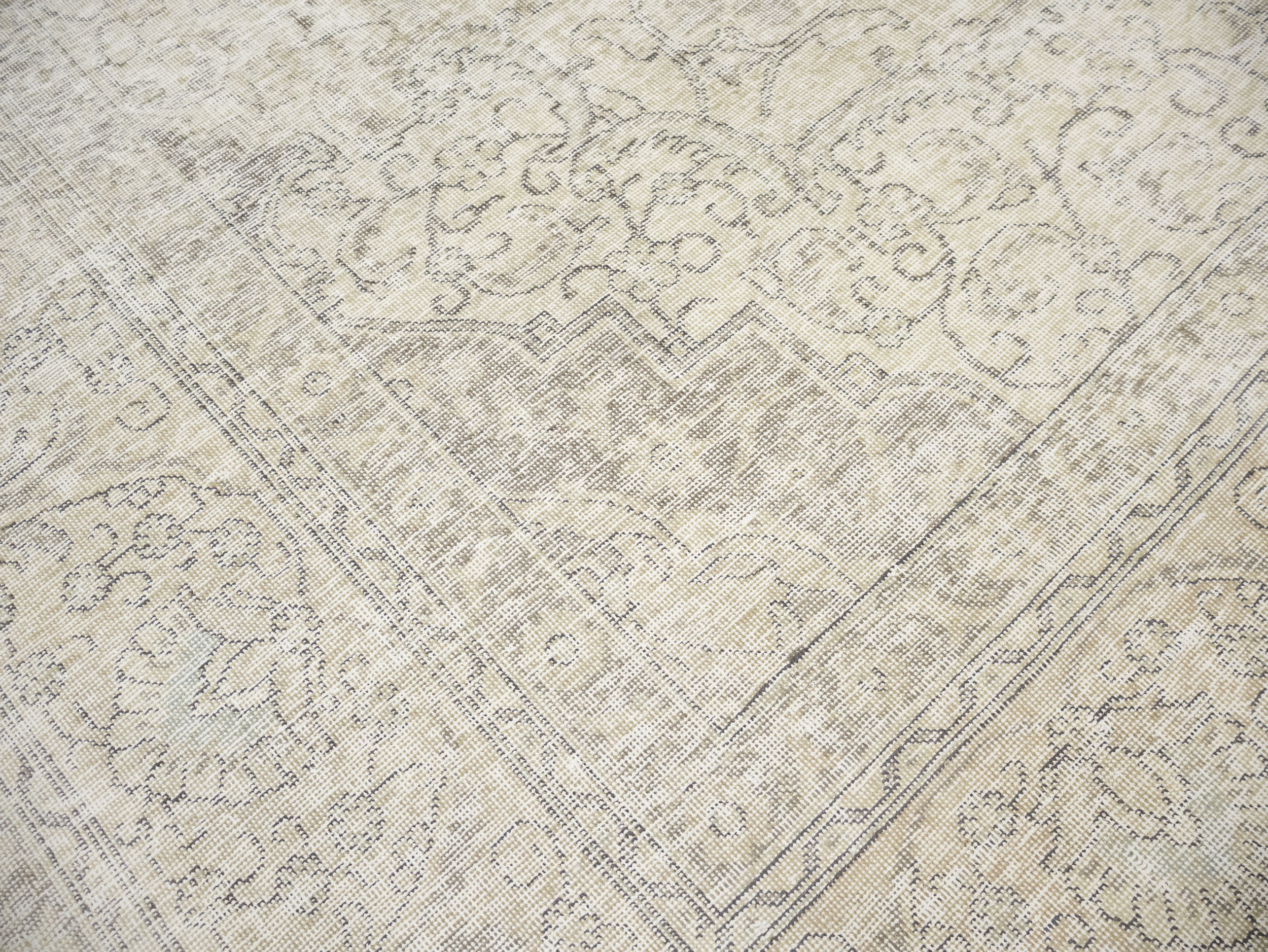 Antique Muted Beige Floral 9'7X12'2 Distressed Vintage Oriental Rug