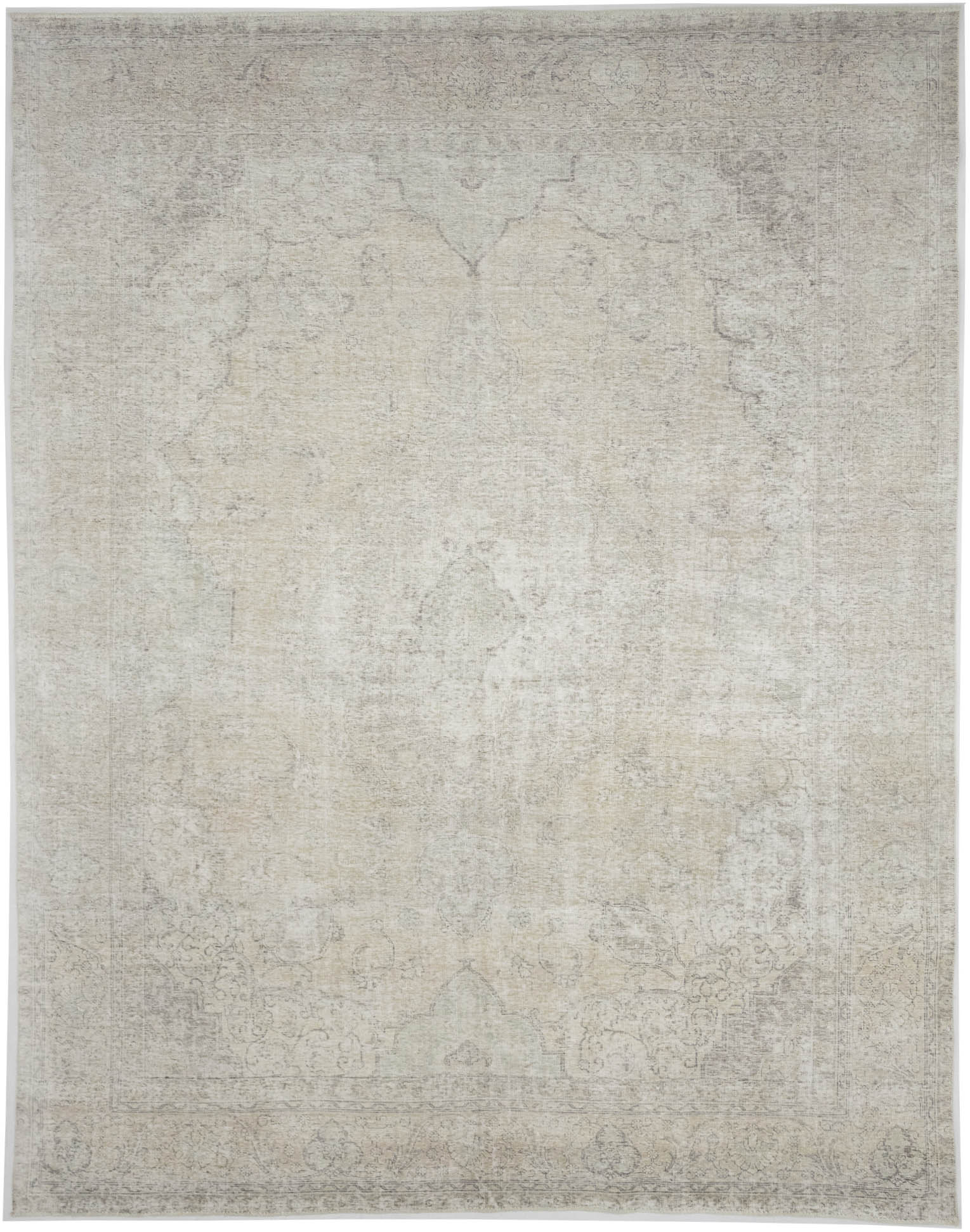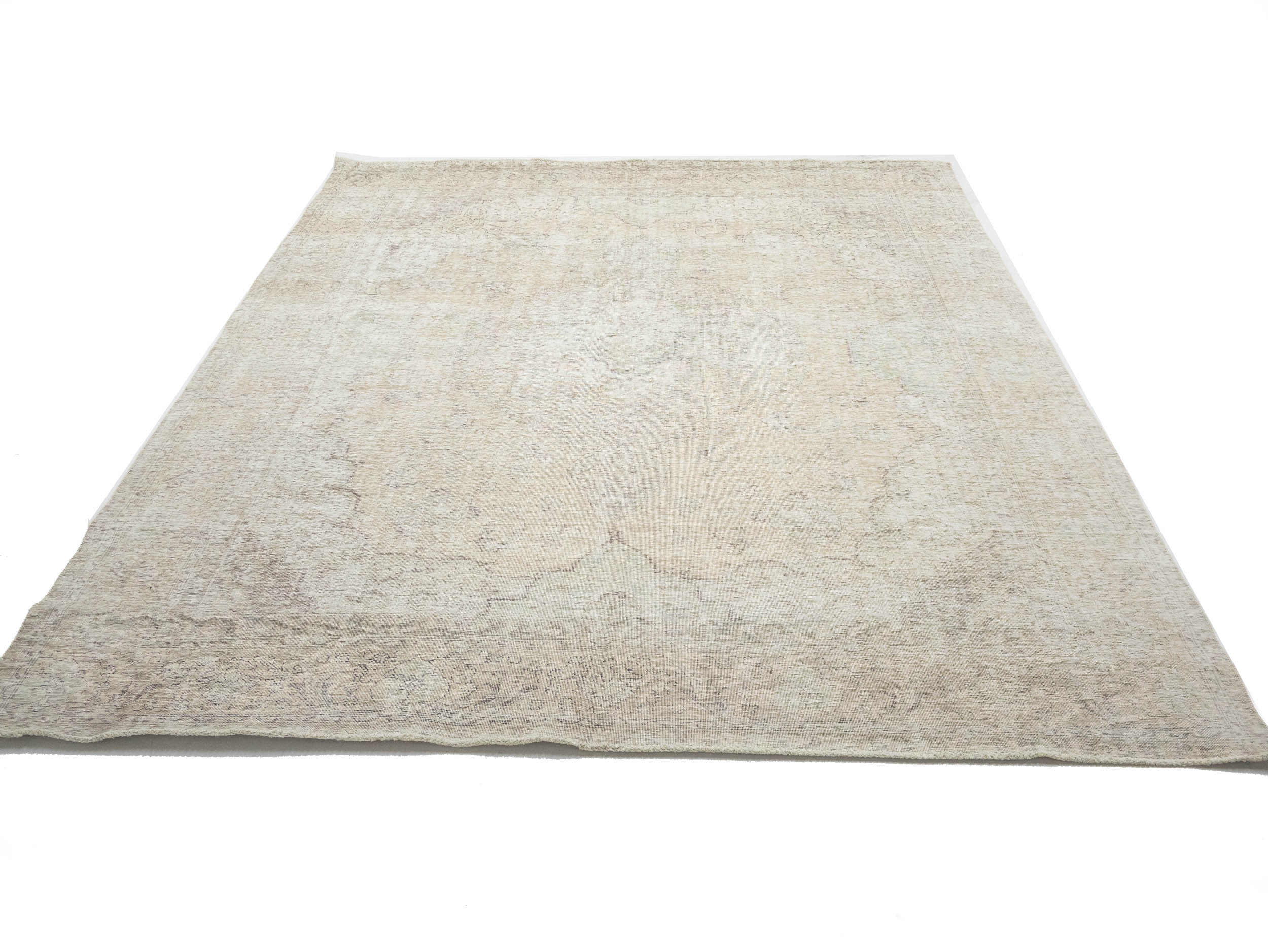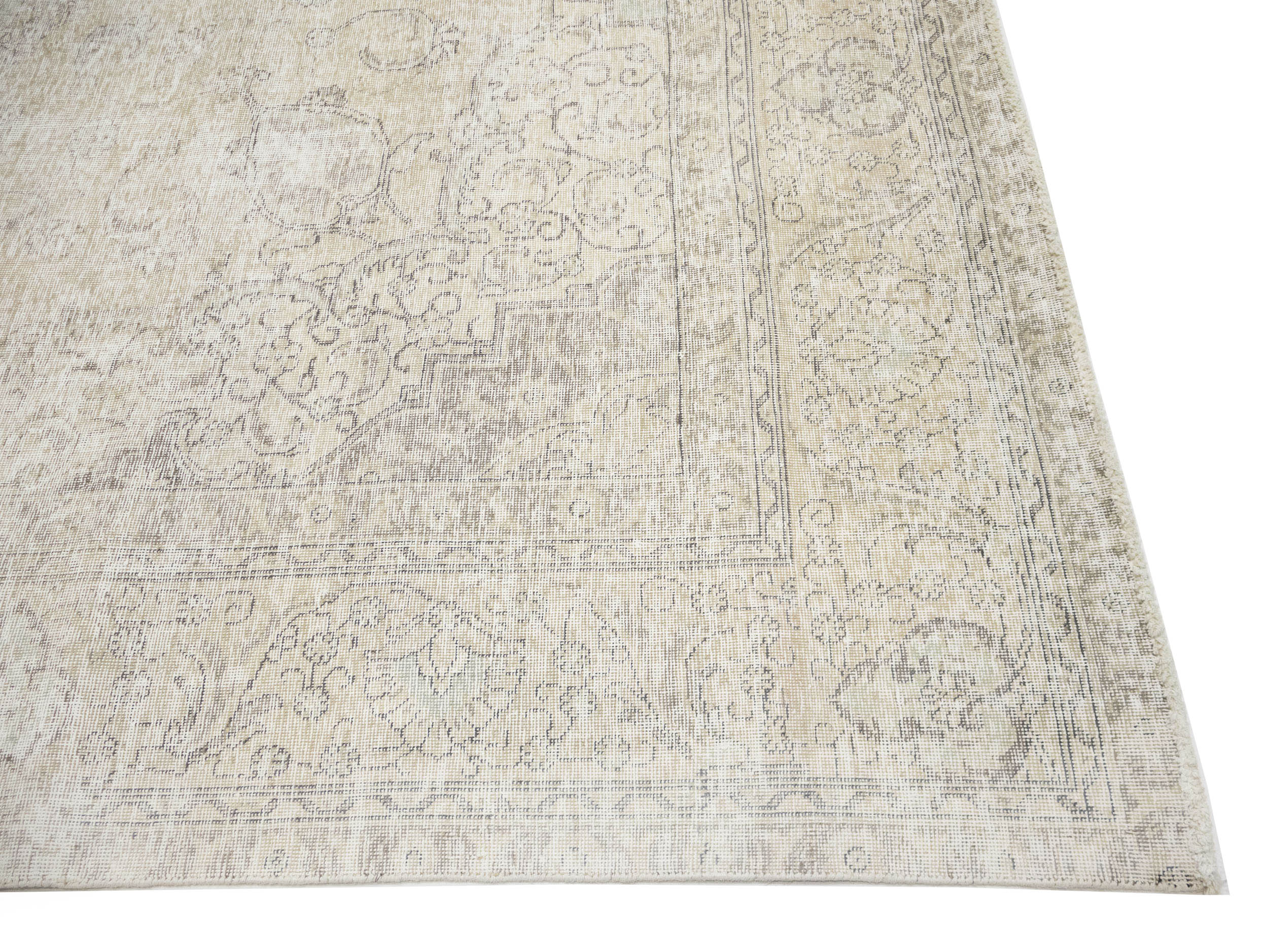 Antique Muted Beige Floral 9'7X12'2 Distressed Vintage Oriental Rug