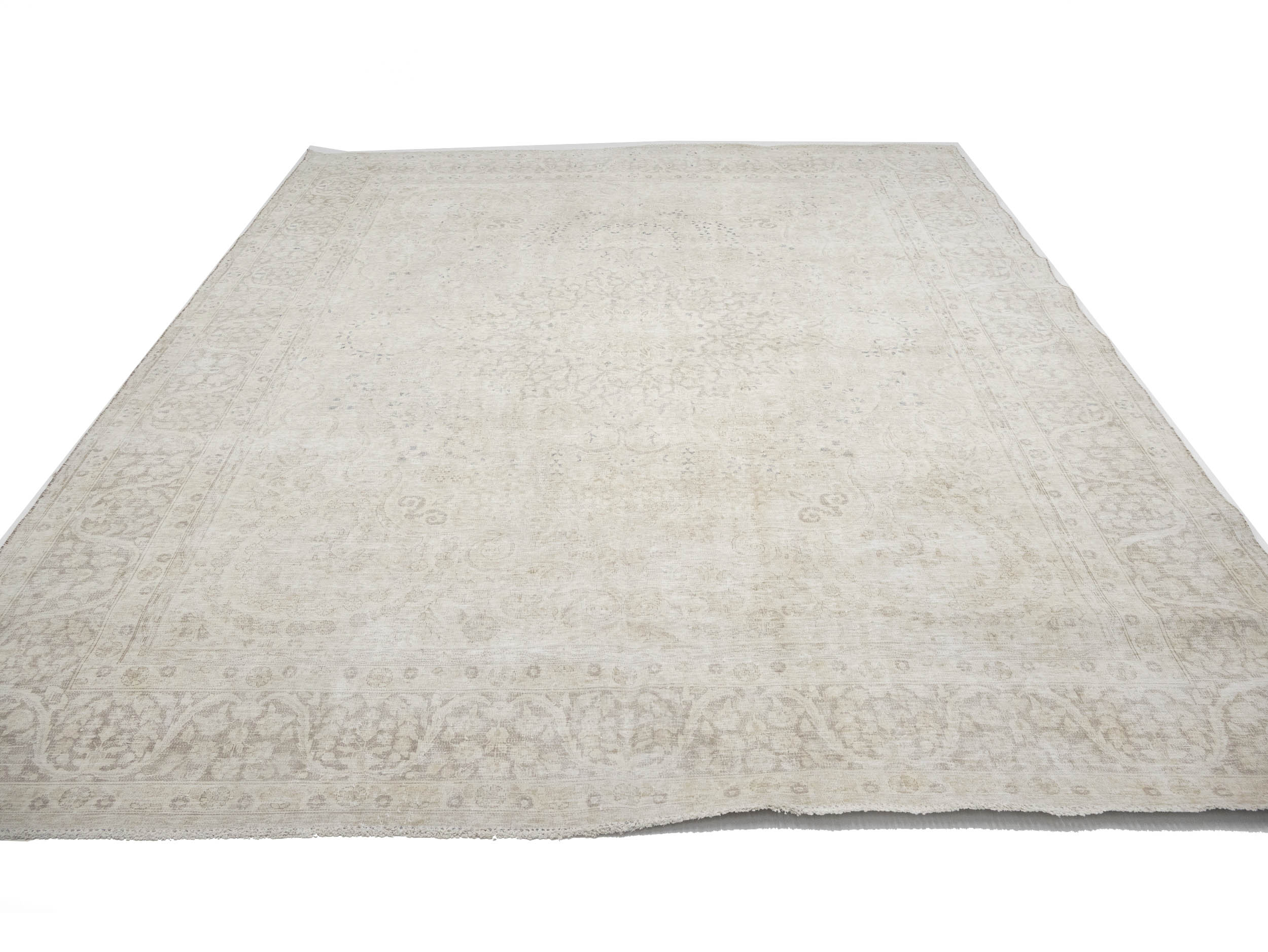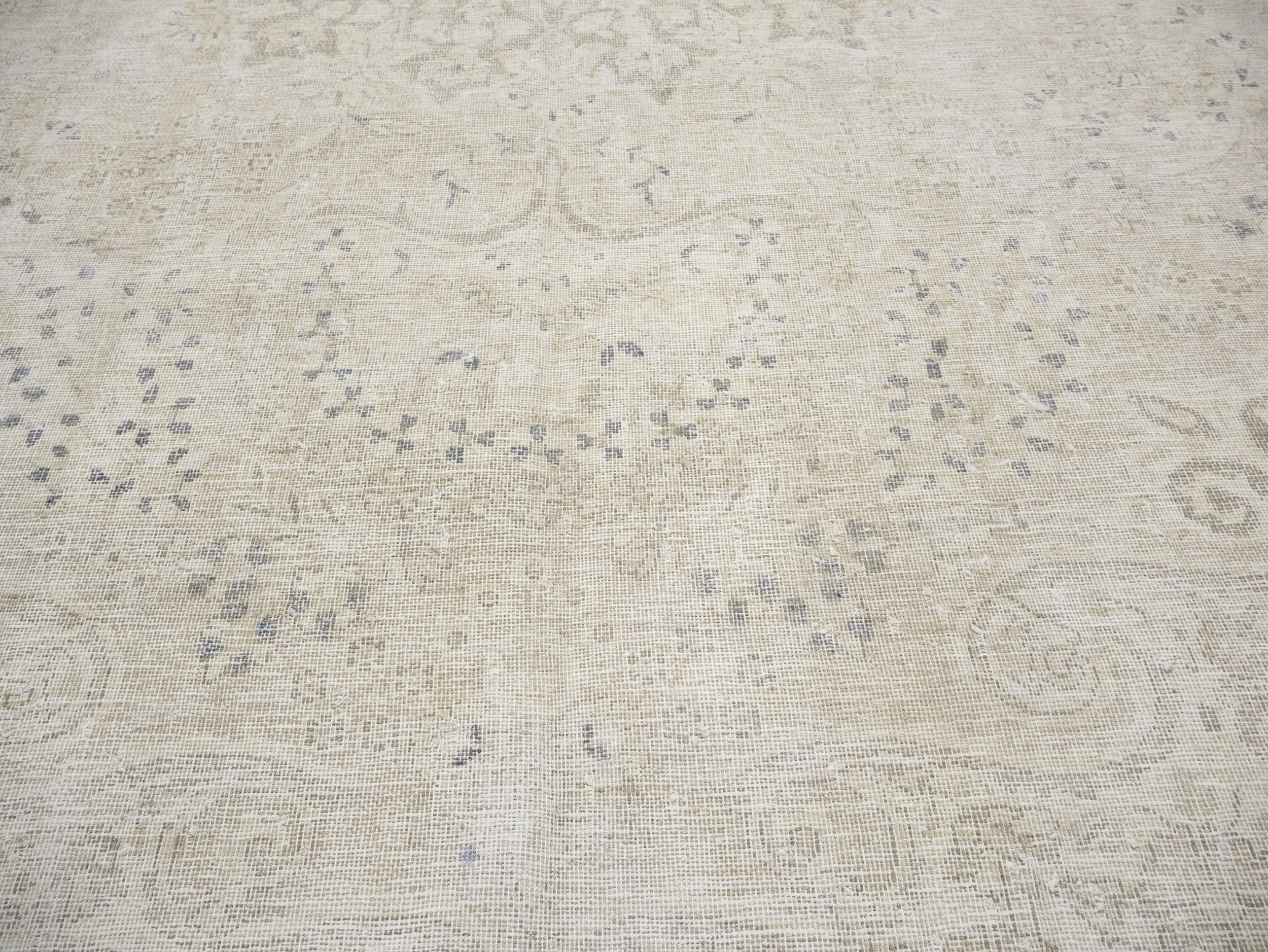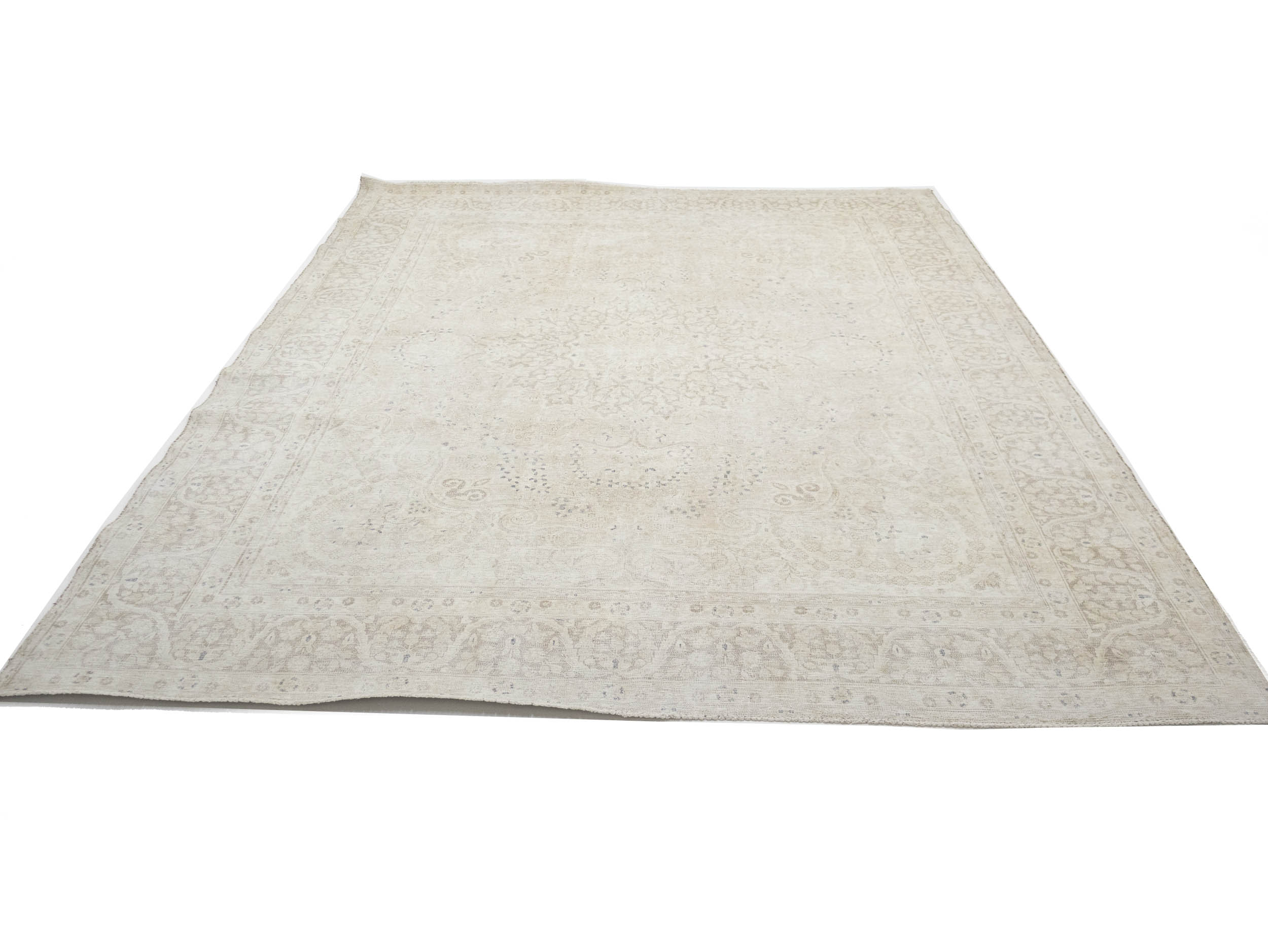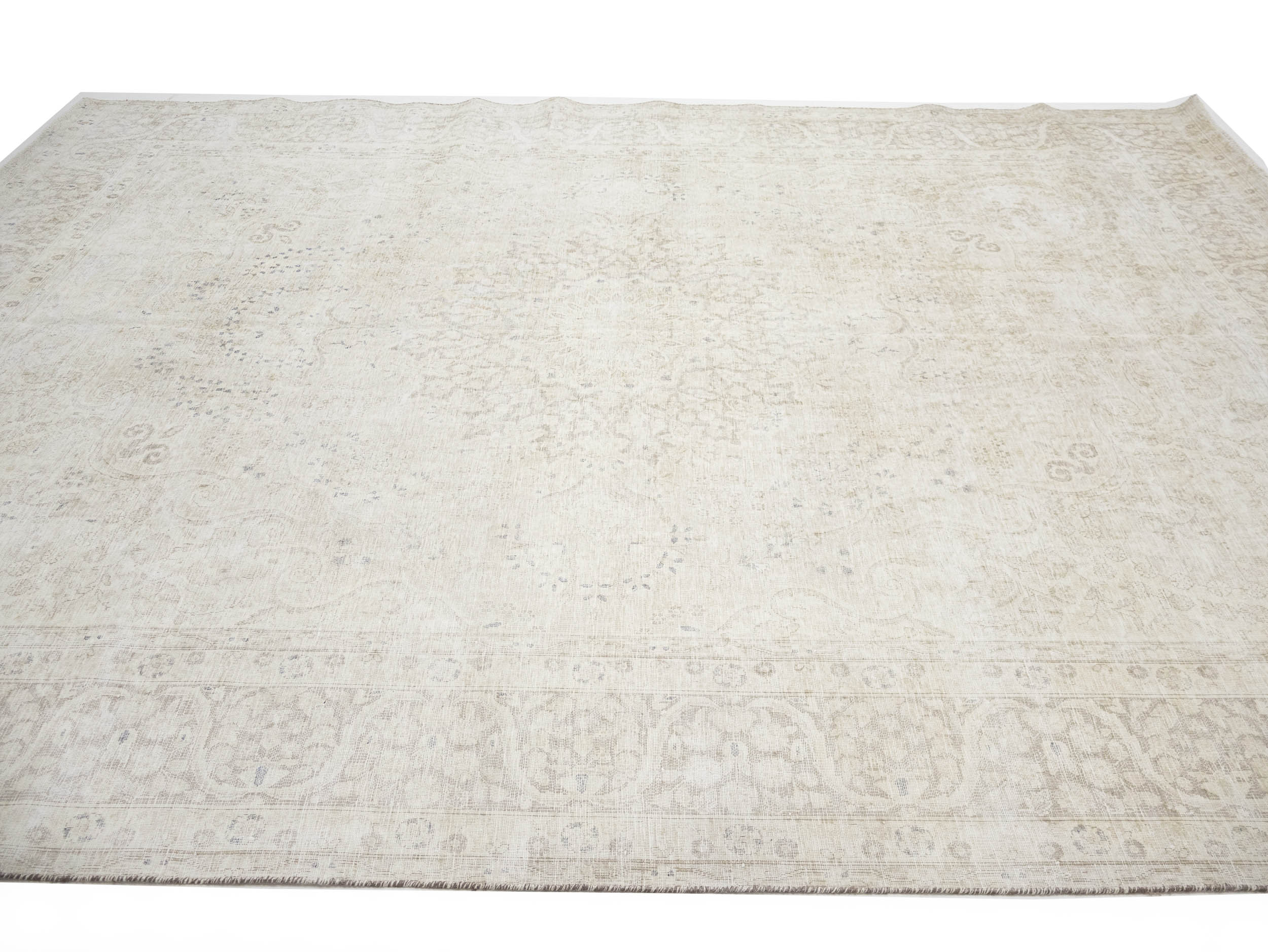 Antique Muted Beige Floral 9'8X12'4 Distressed Vintage Oriental Rug