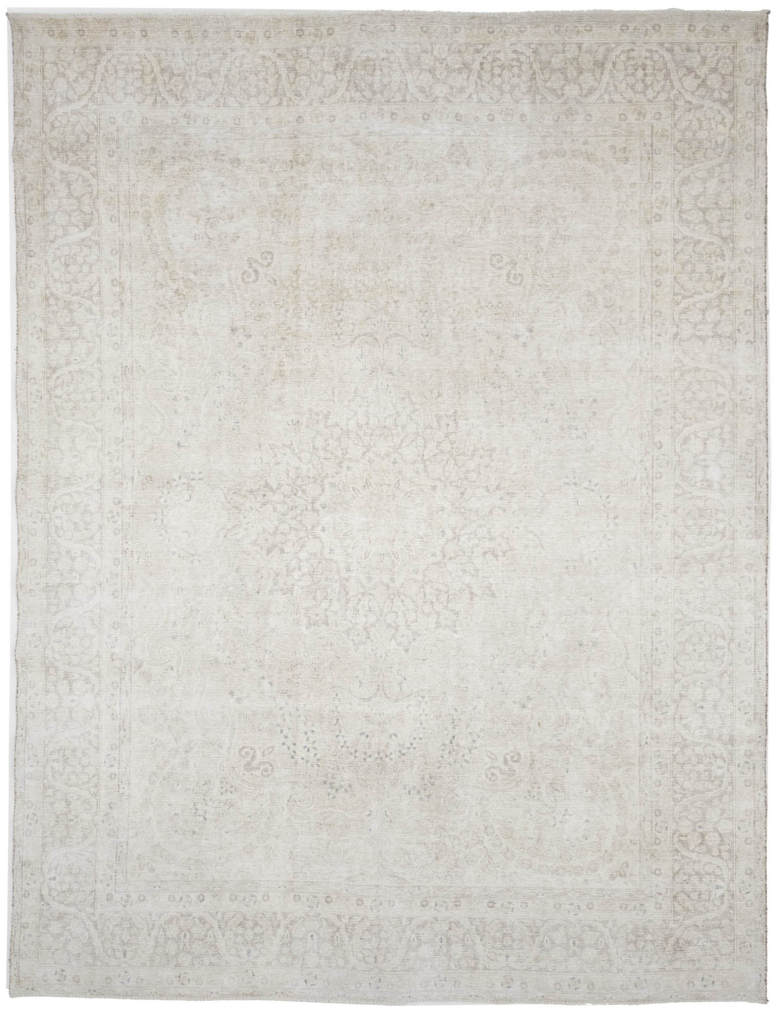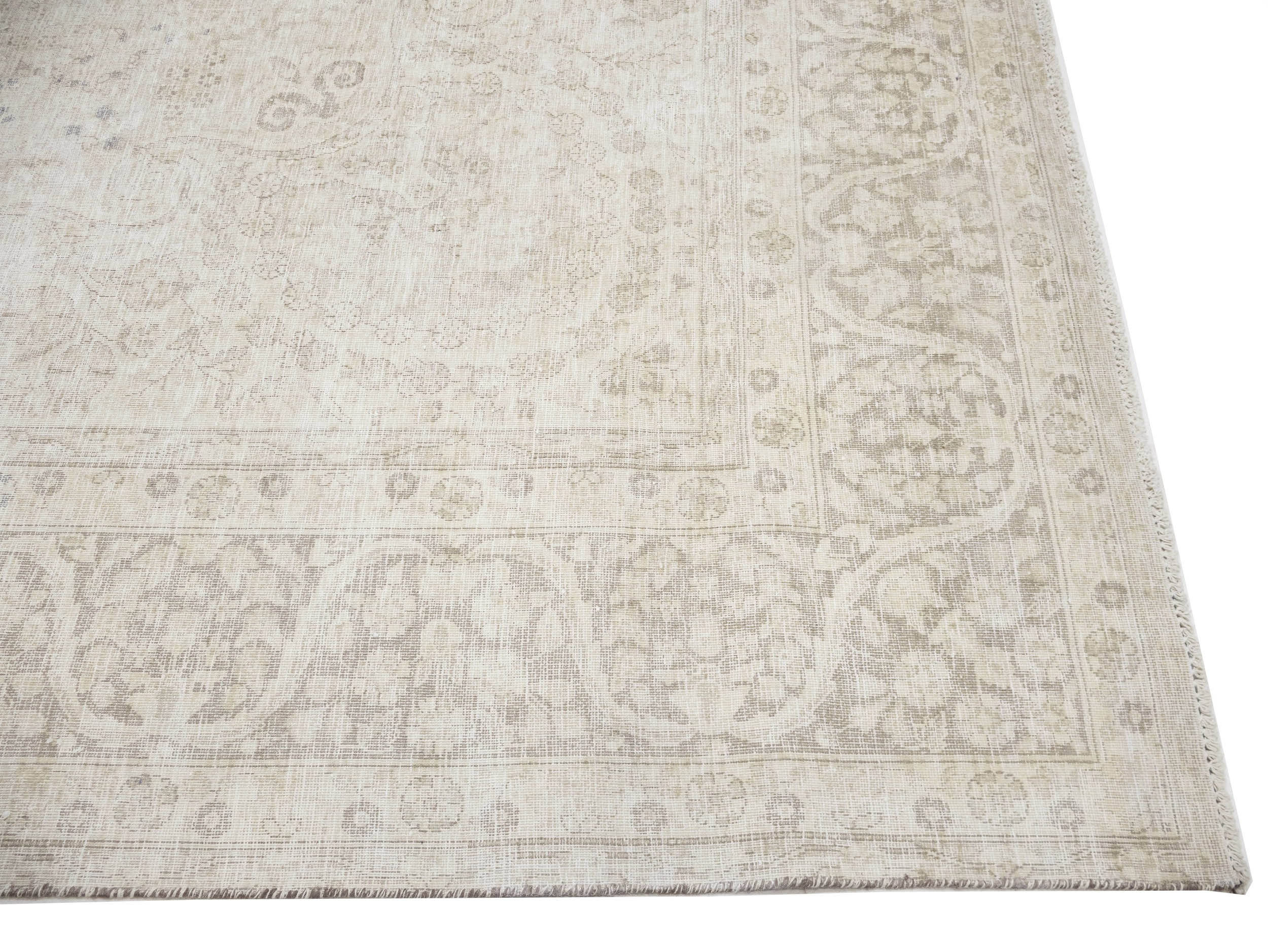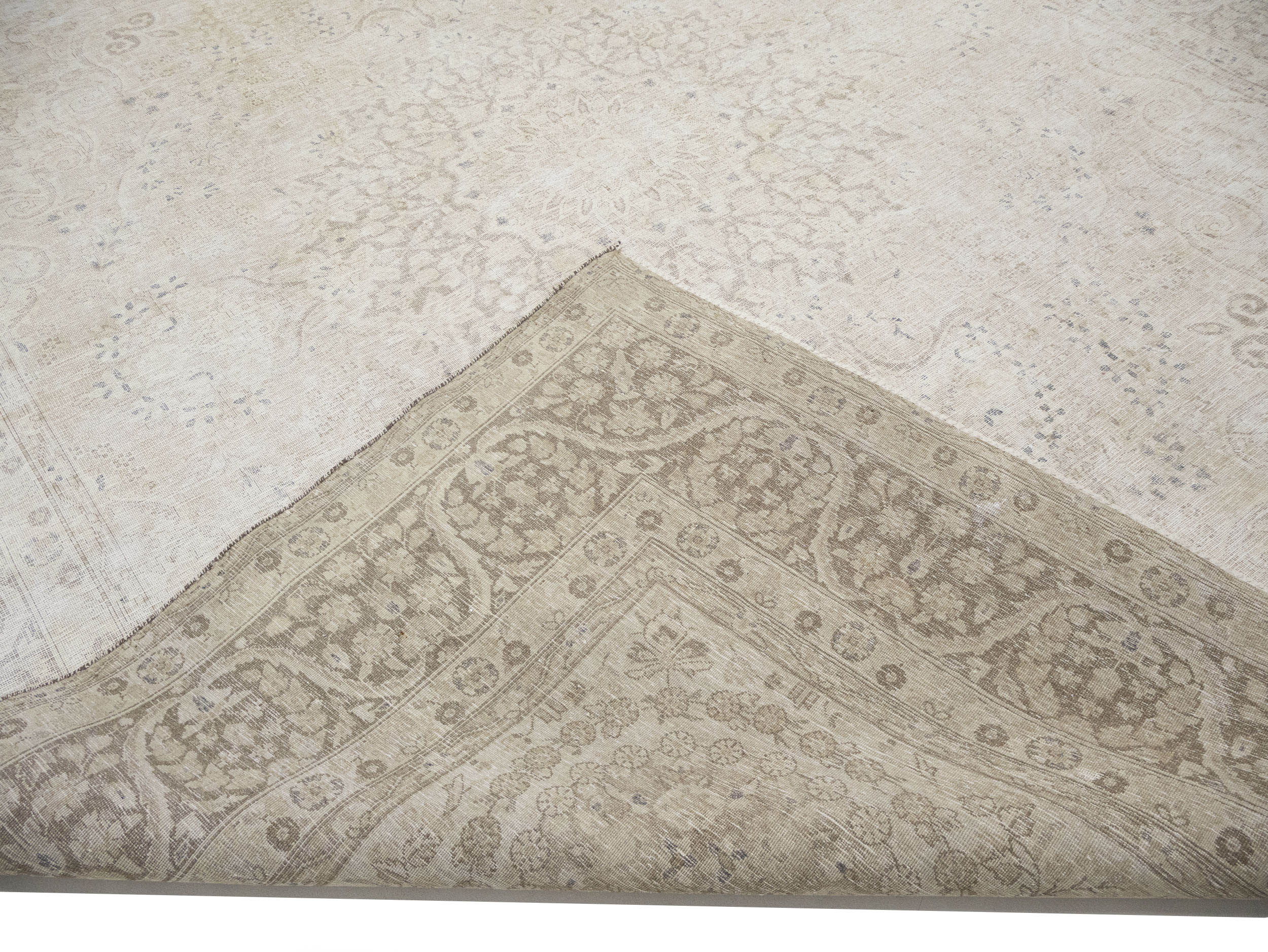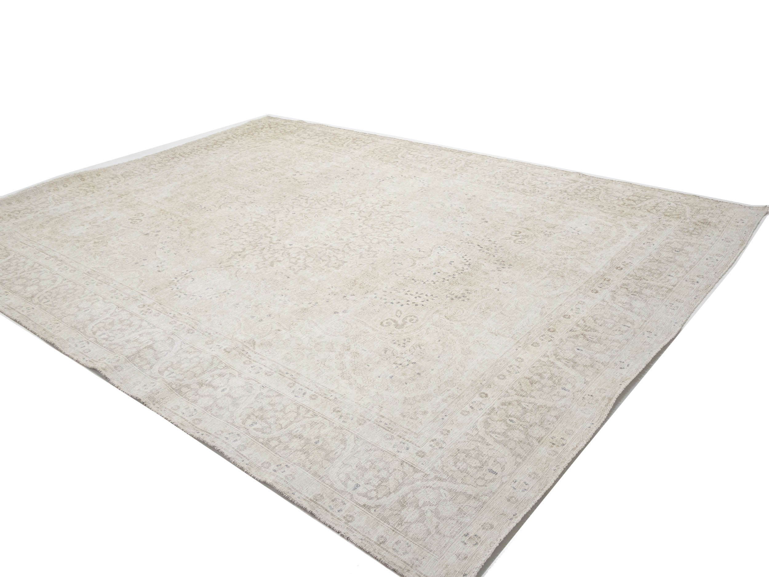 Antique Muted Beige Floral 9'8X12'4 Distressed Vintage Oriental Rug