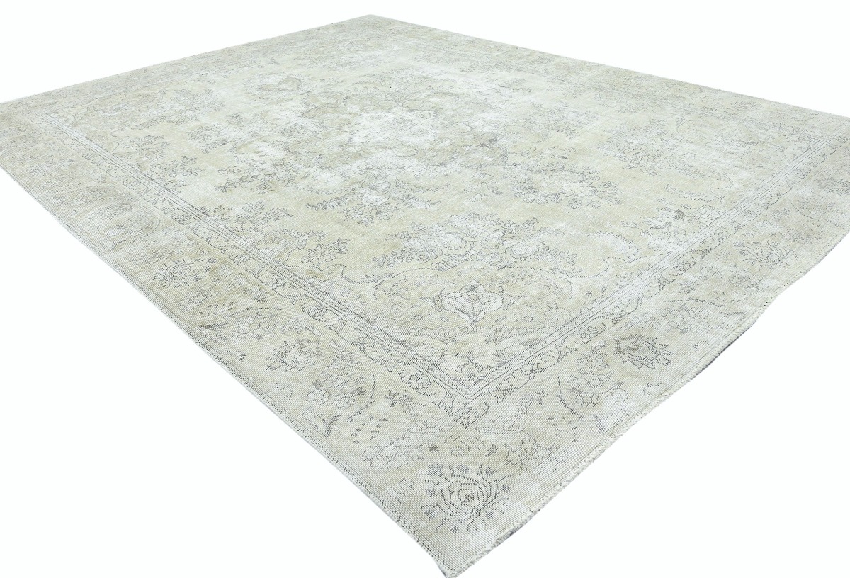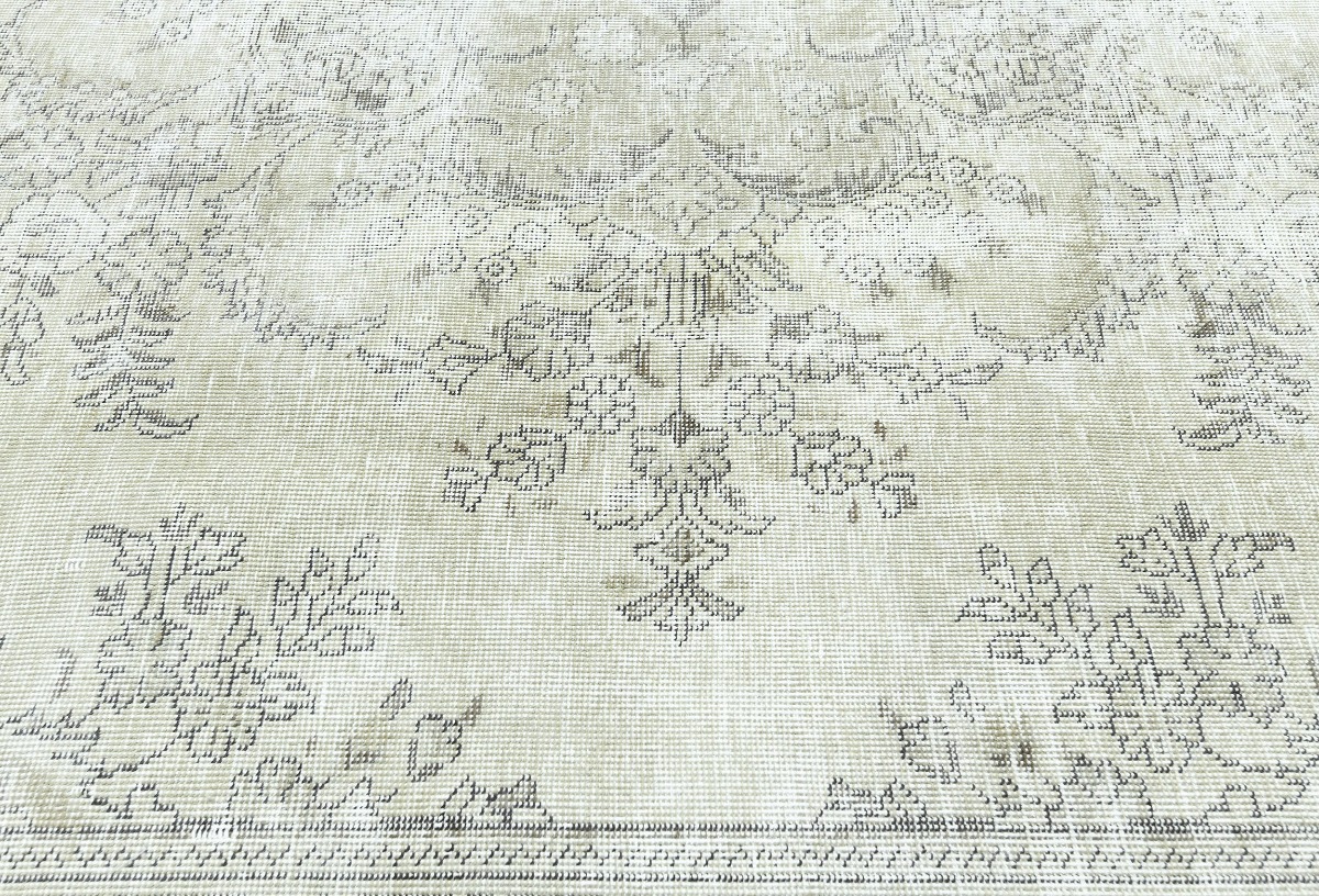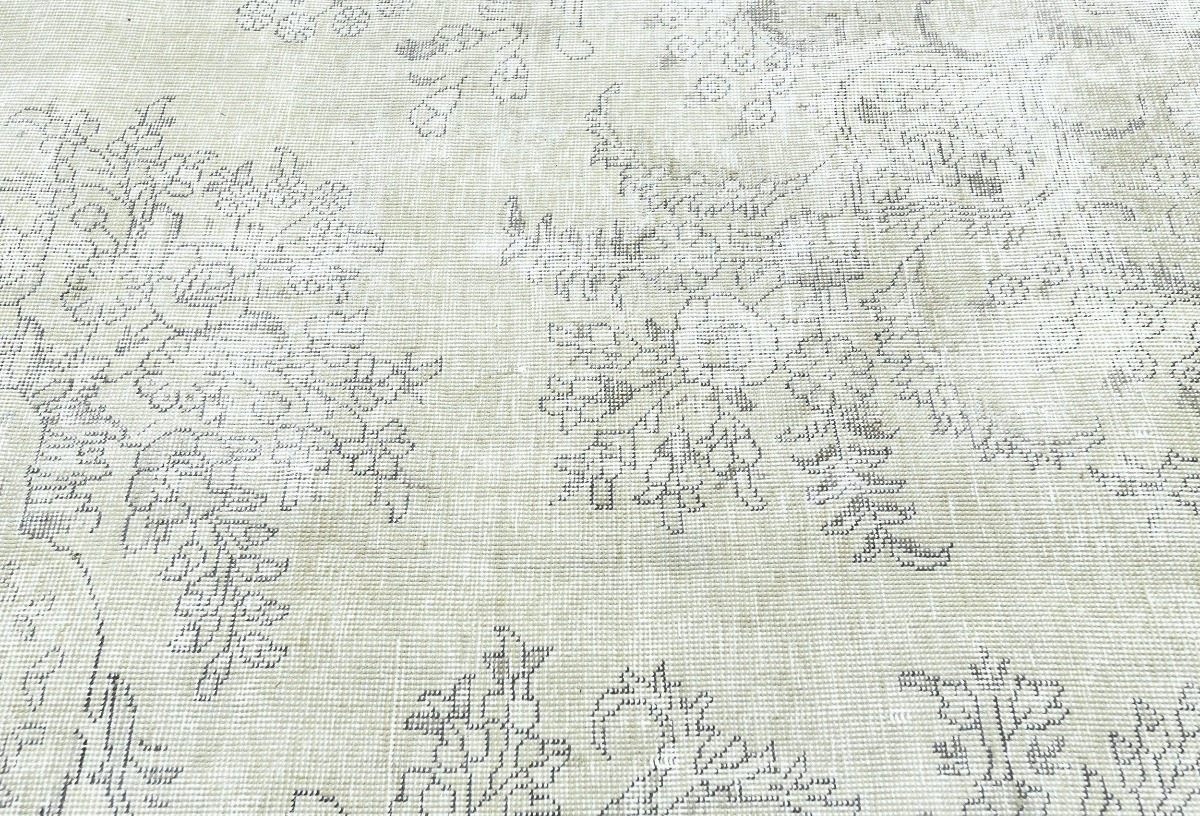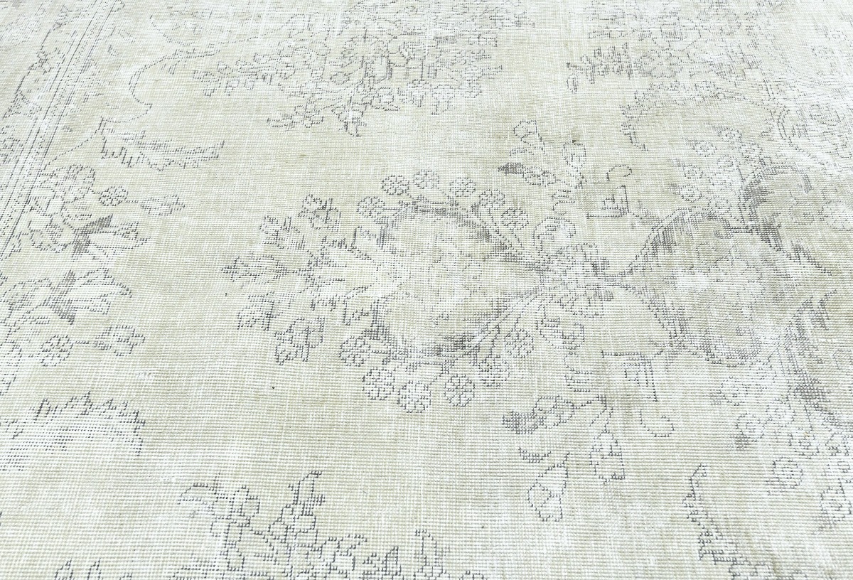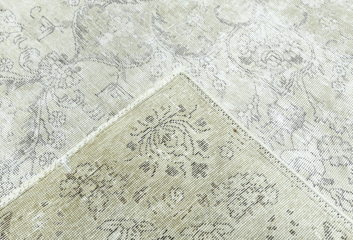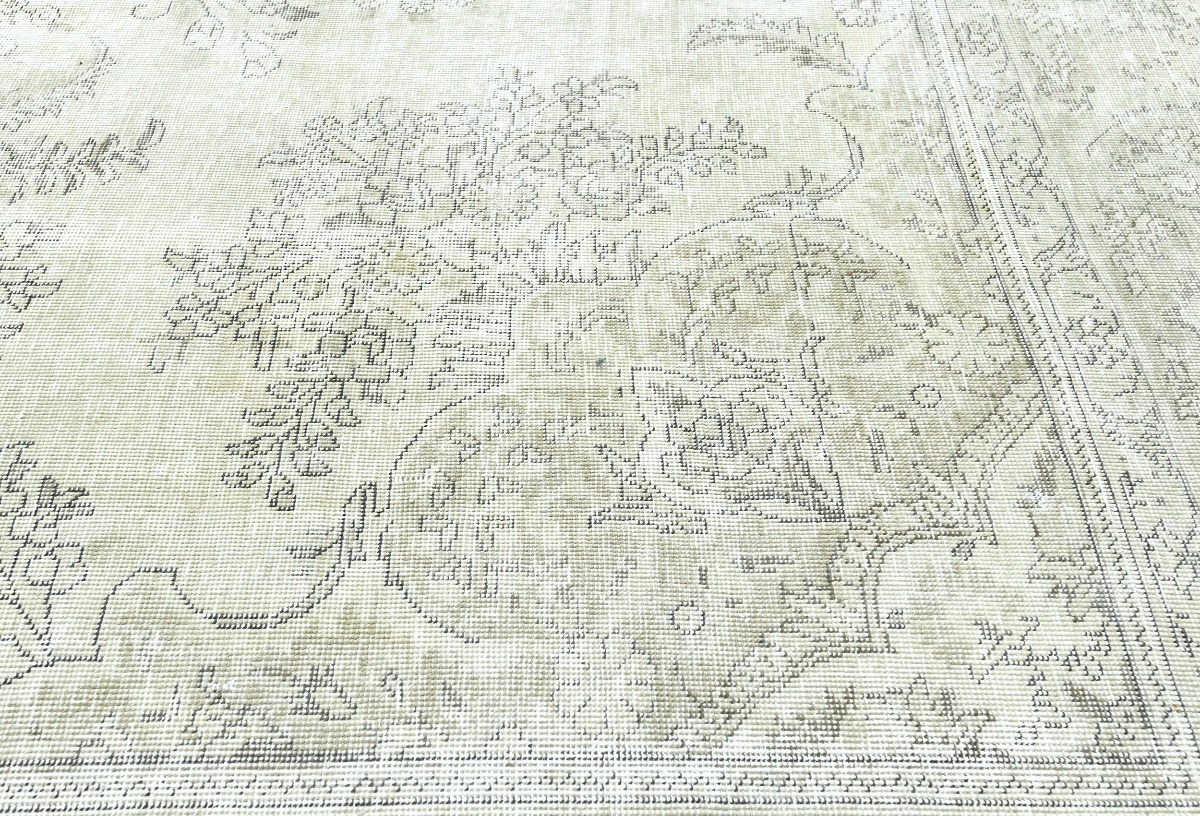 Antique Muted Beige Floral 9X11'5 Distressed Vintage Oriental Rug