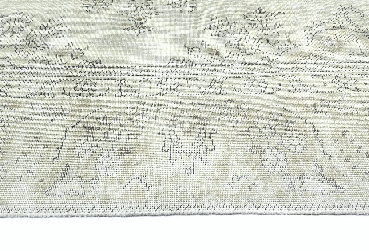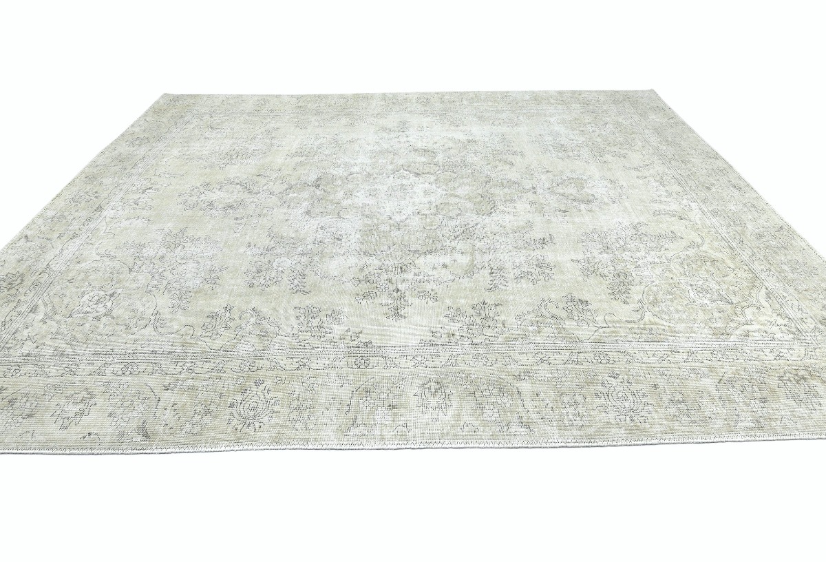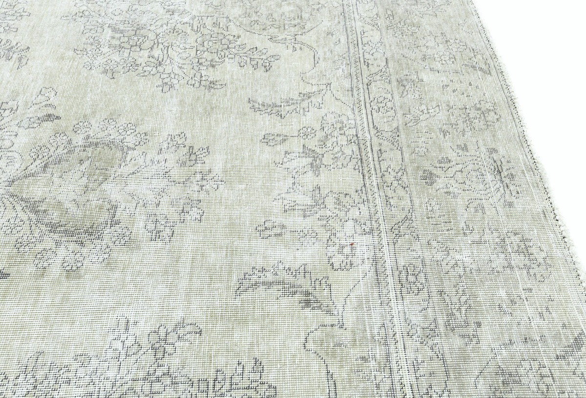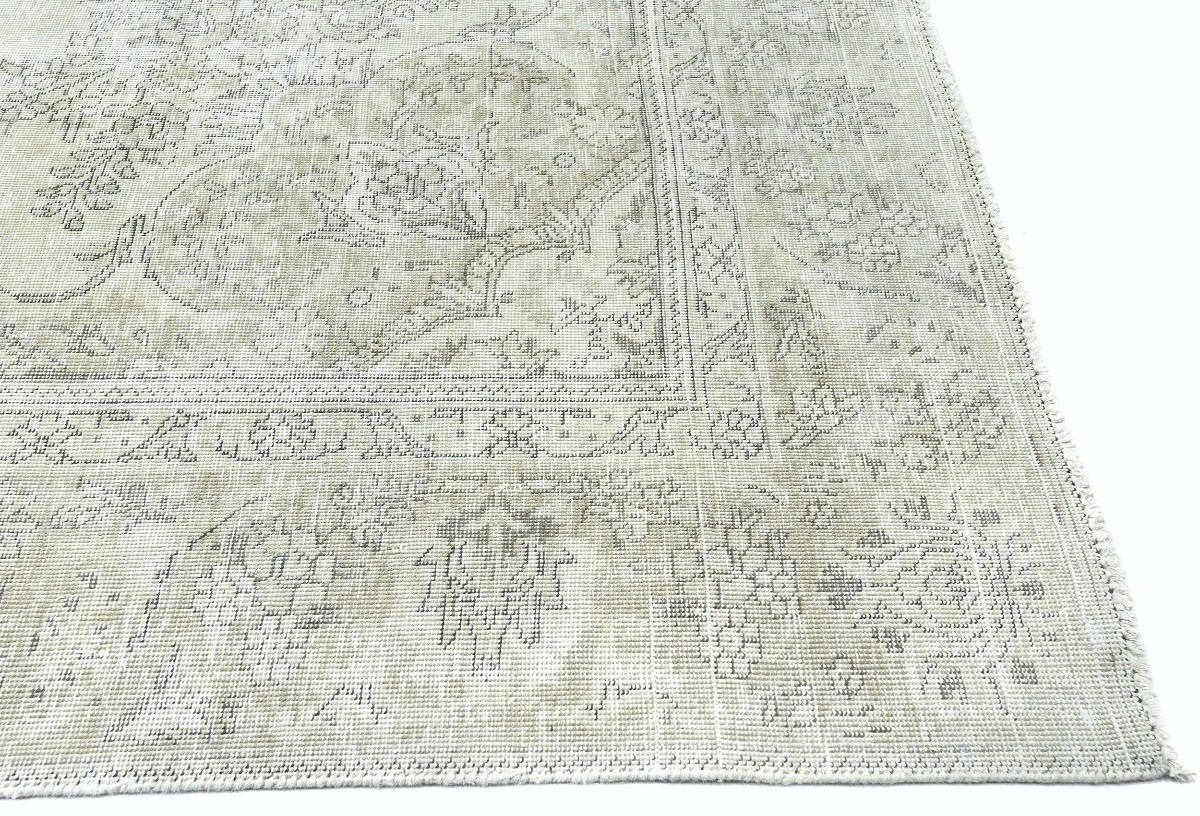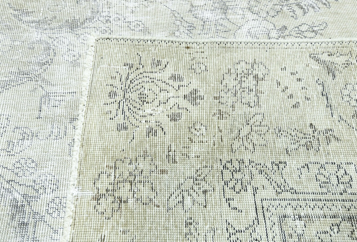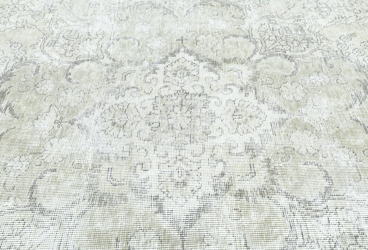 Antique Muted Beige Floral 9X11'5 Distressed Vintage Oriental Rug