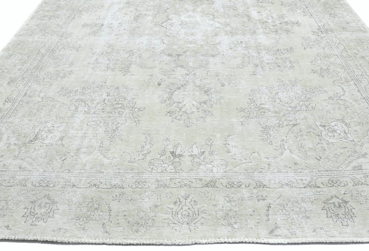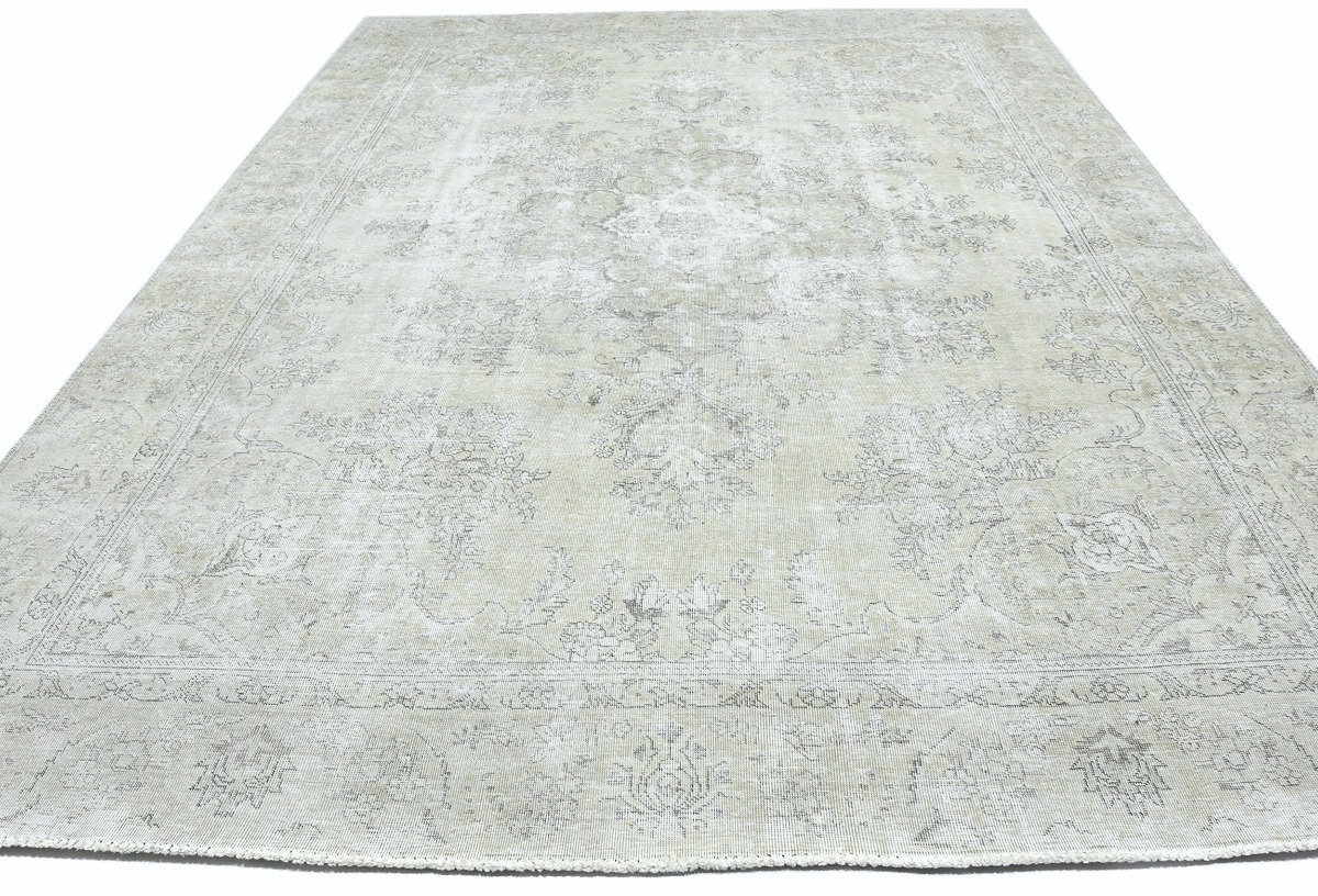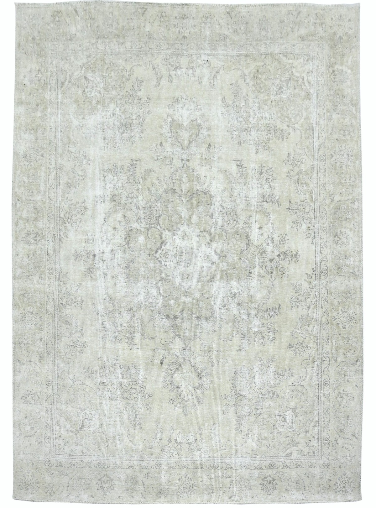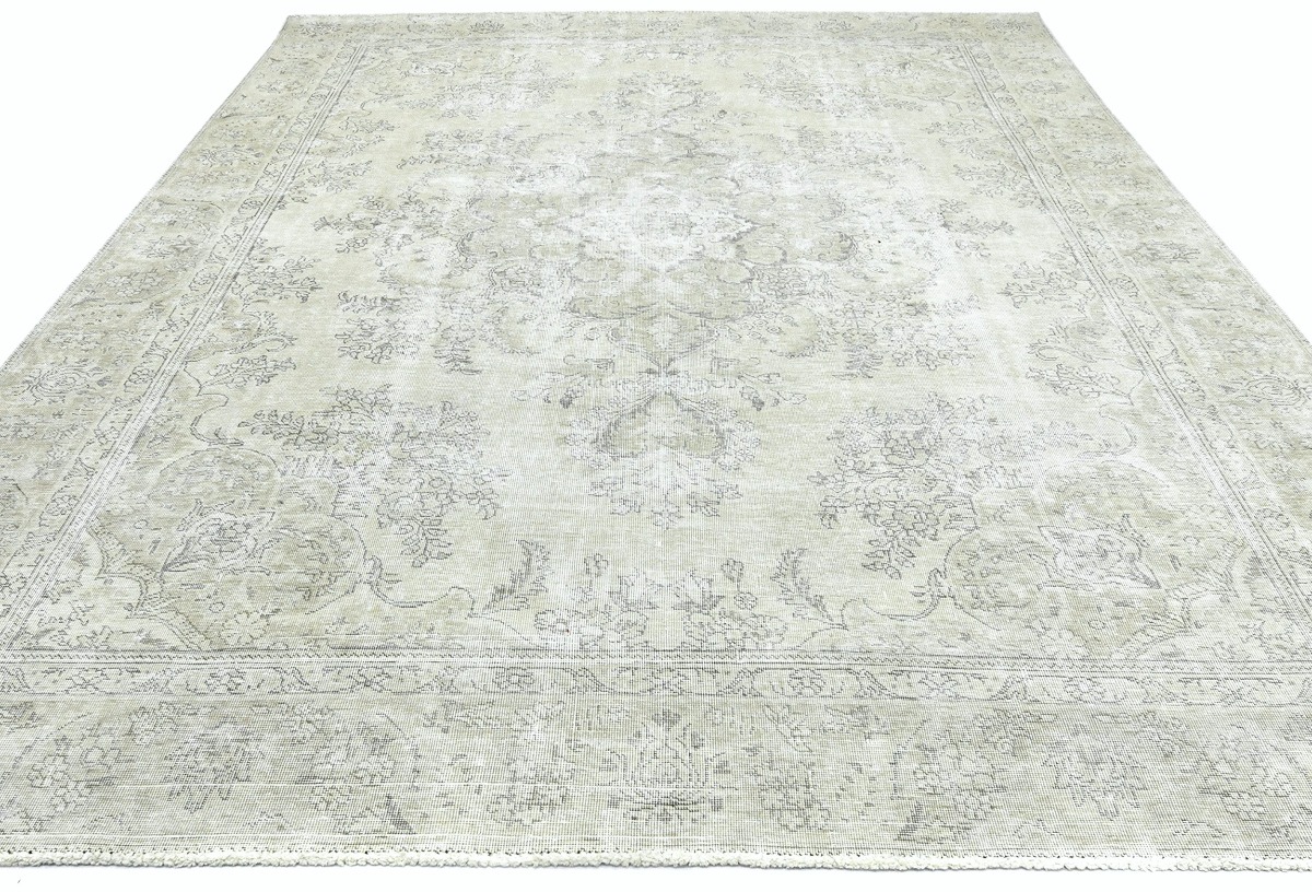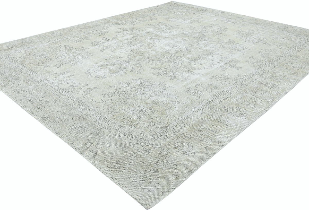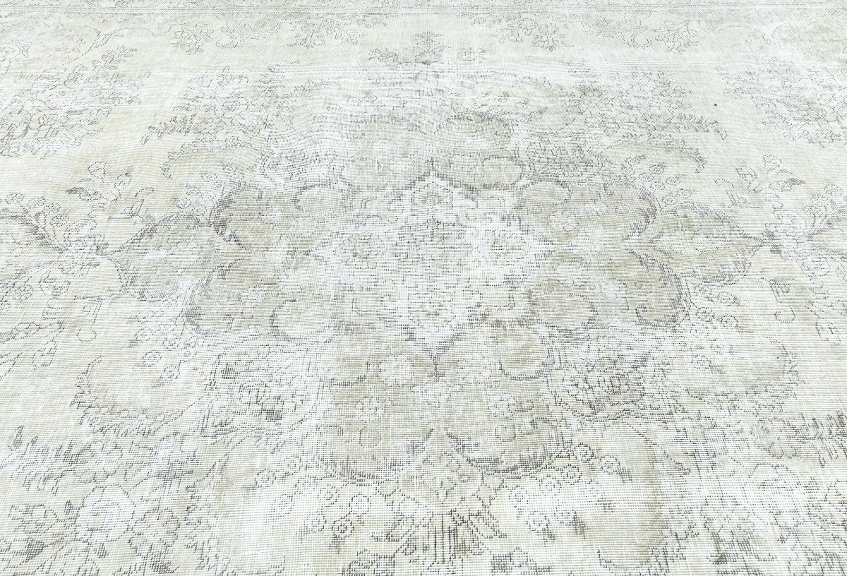 Antique Muted Beige Floral 9X11'5 Distressed Vintage Oriental Rug