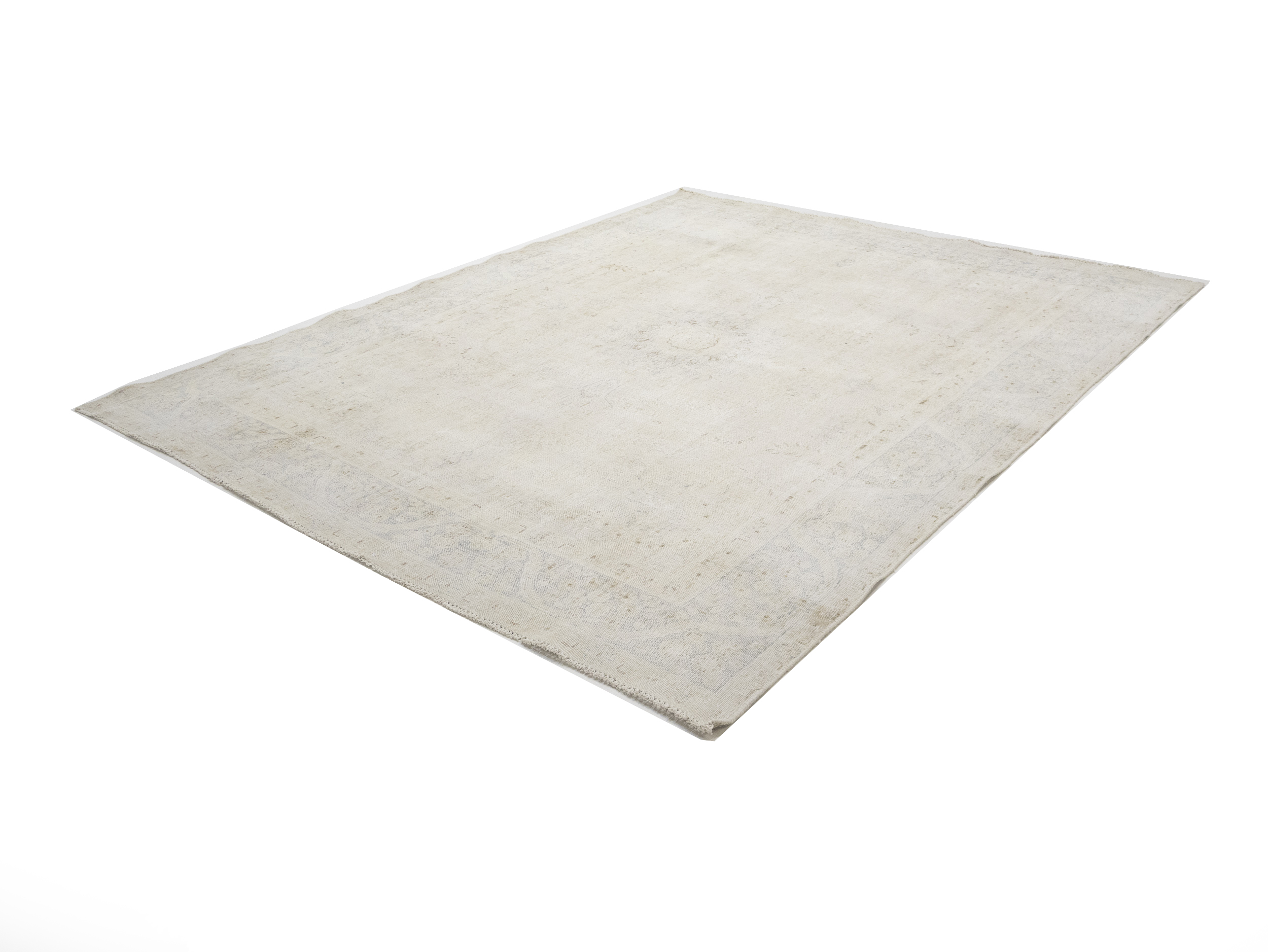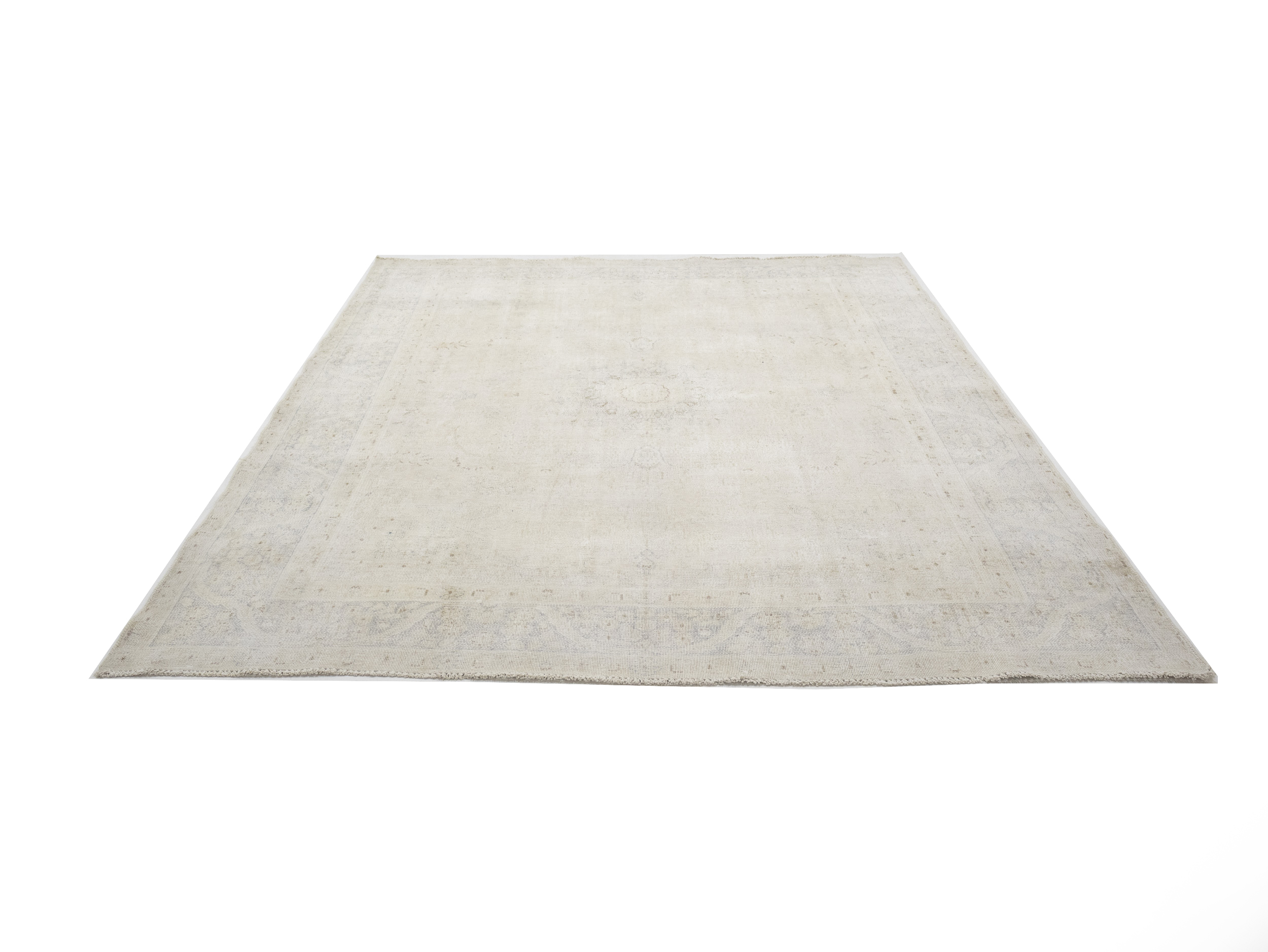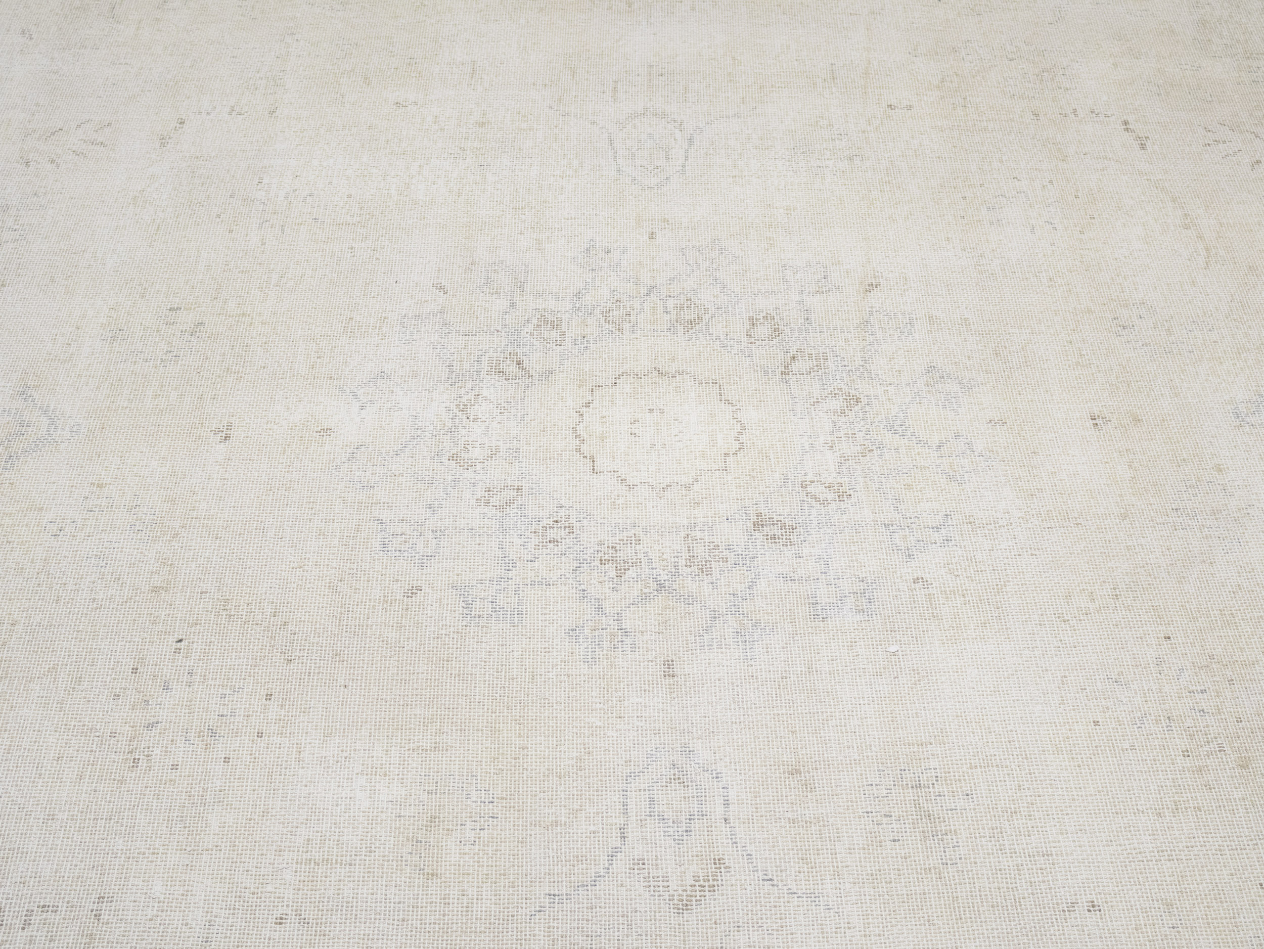 Antique Muted Beige Floral 9X11 Distressed Vintage Oriental Rug