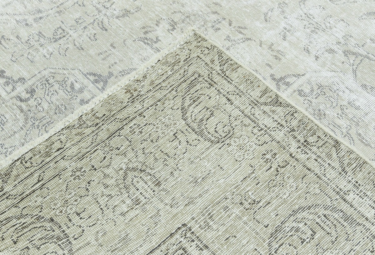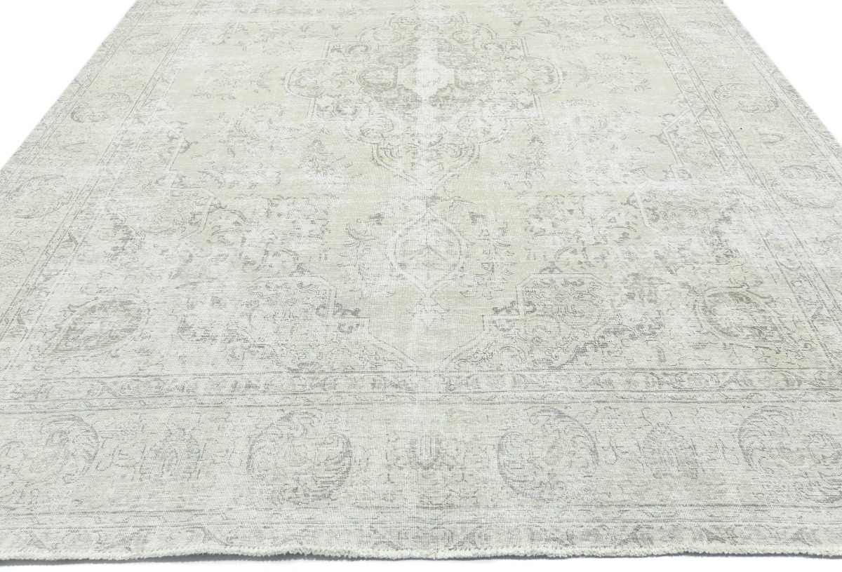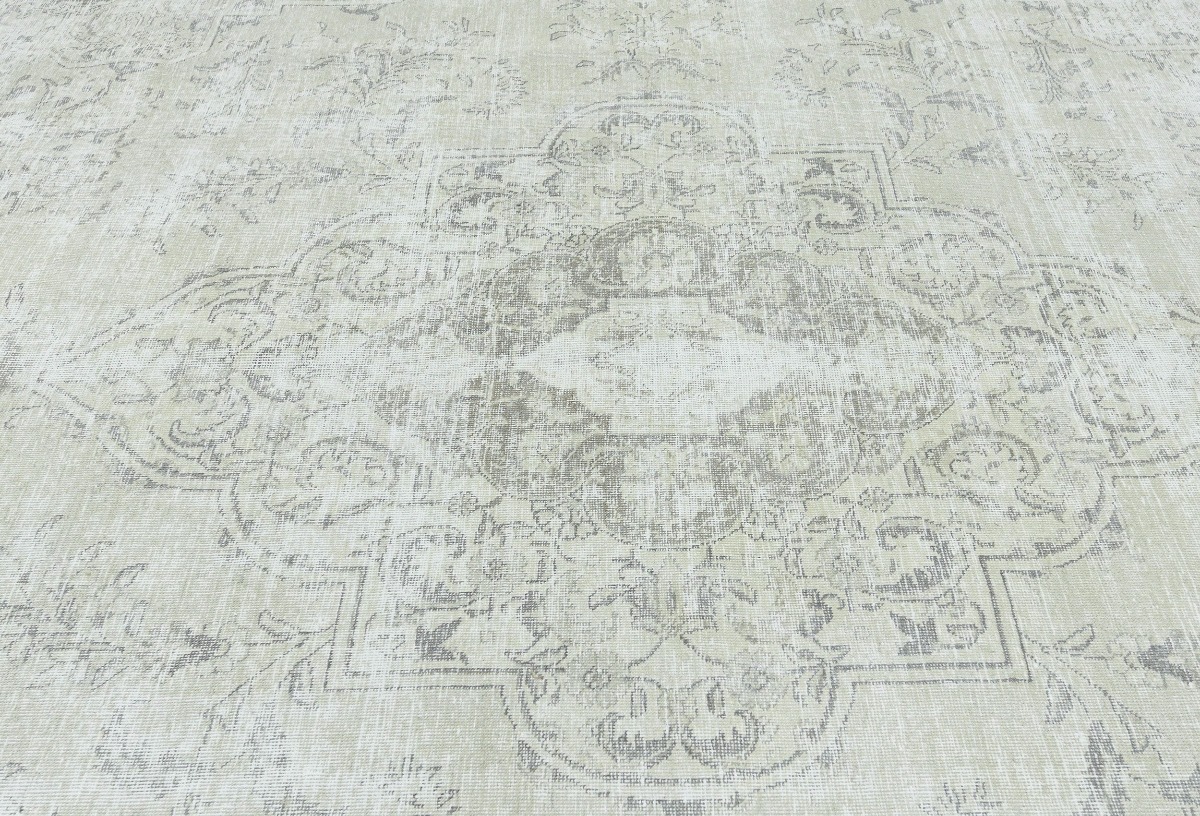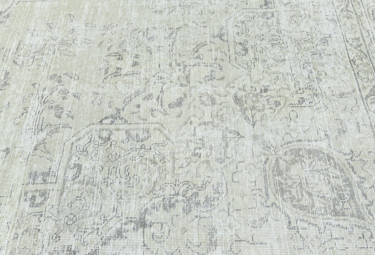Antique Muted Beige Floral 9X12 Distressed Vintage Oriental Rug