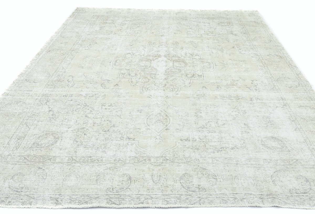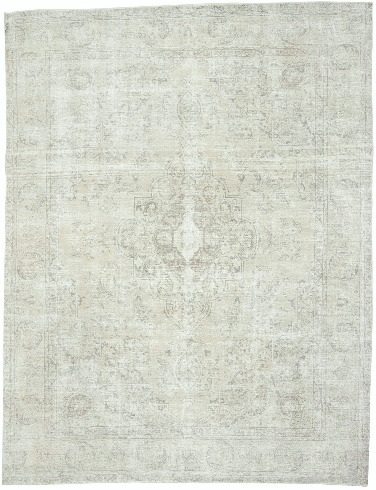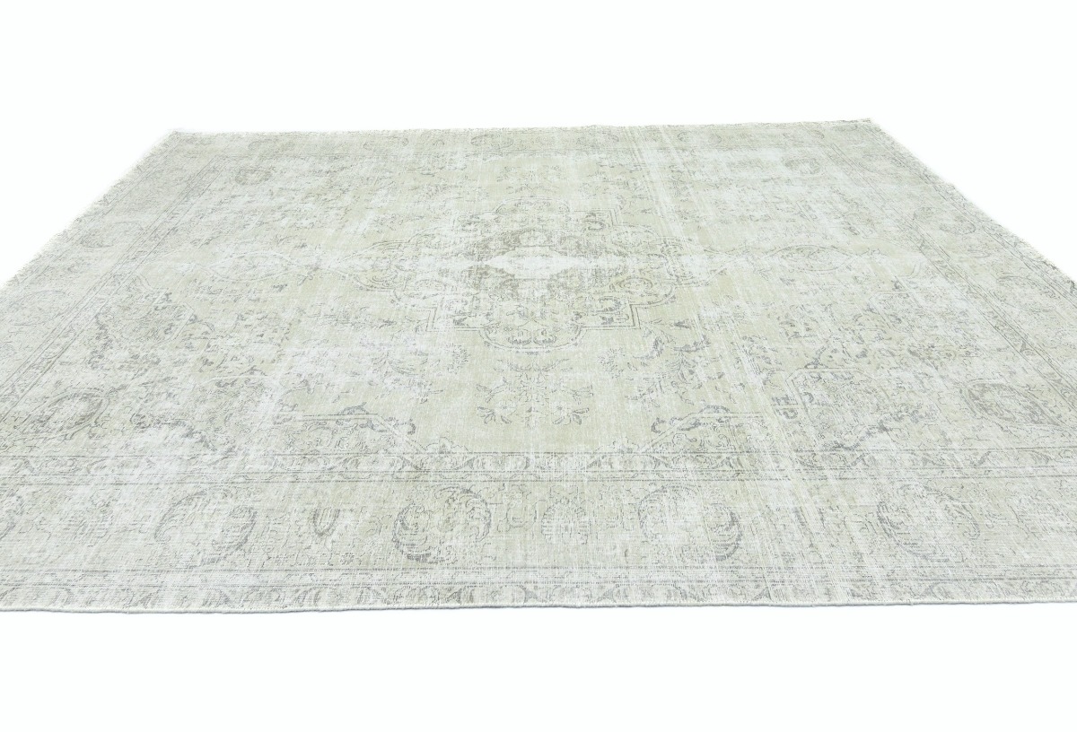 Antique Muted Beige Floral 9X12 Distressed Vintage Oriental Rug