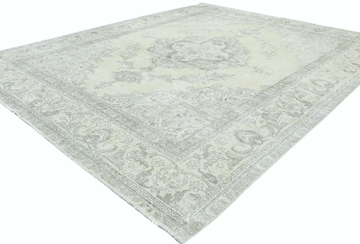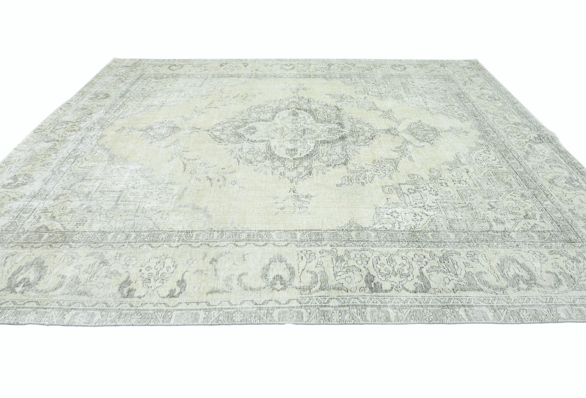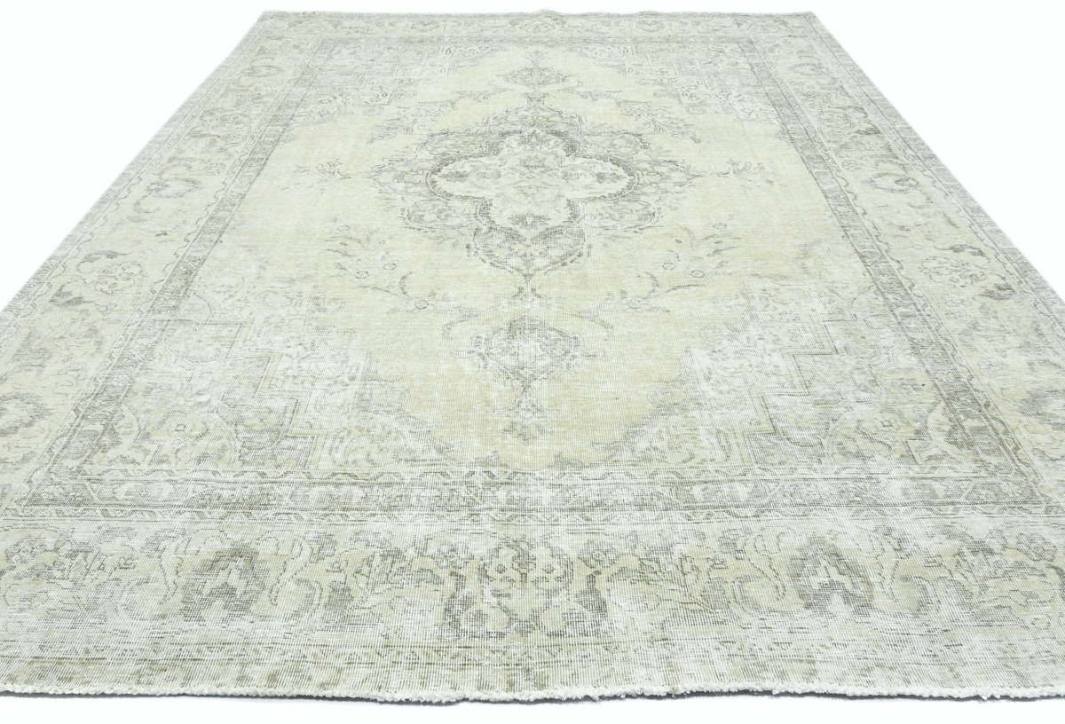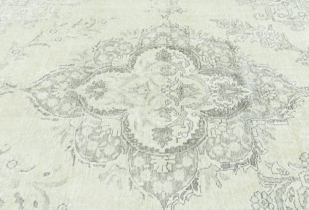 Antique Muted Beige Floral 9X12 Distressed Vintage Oriental Rug