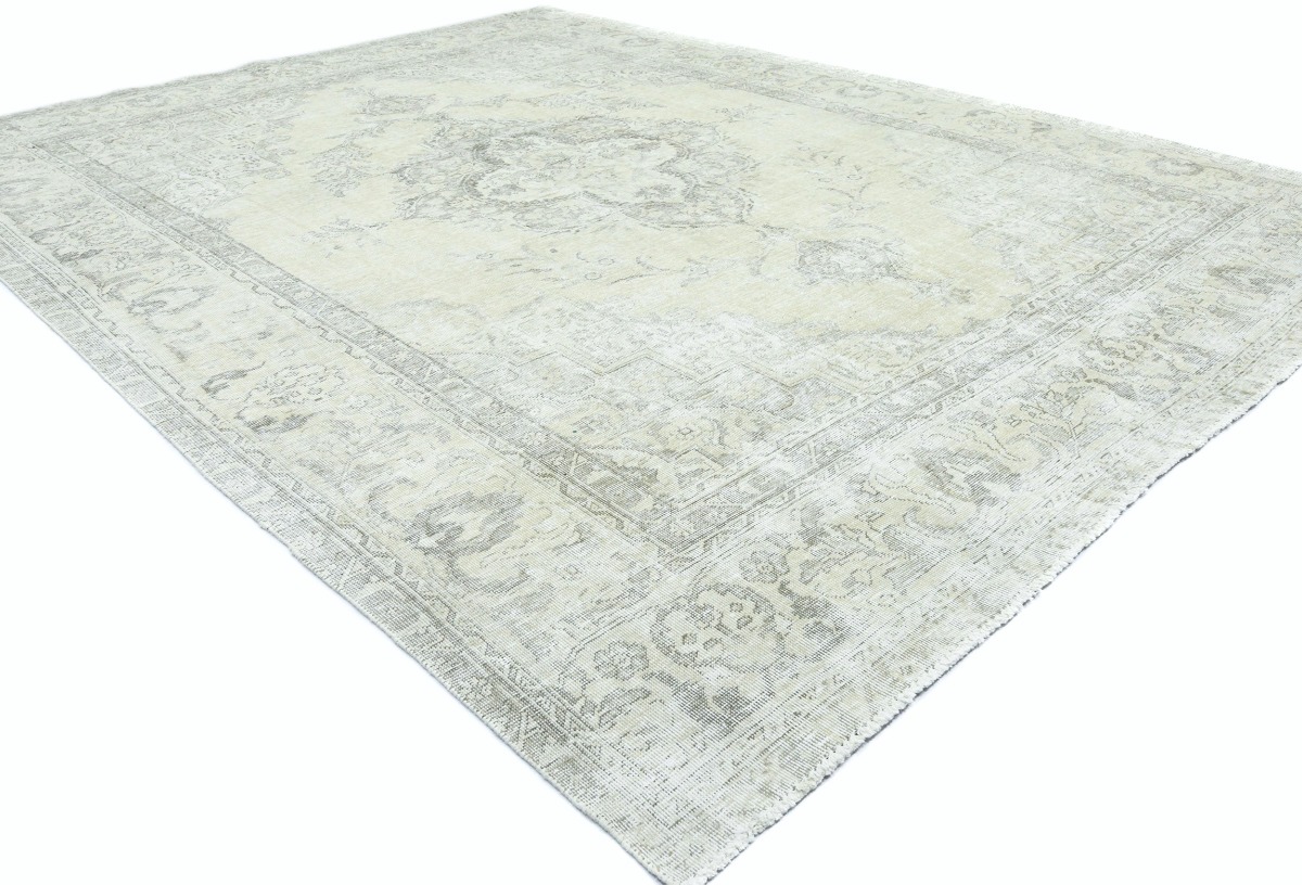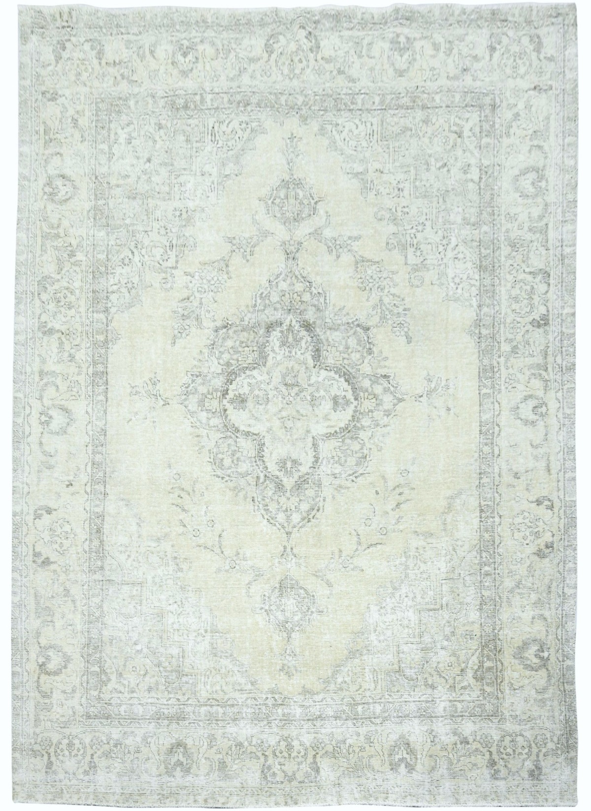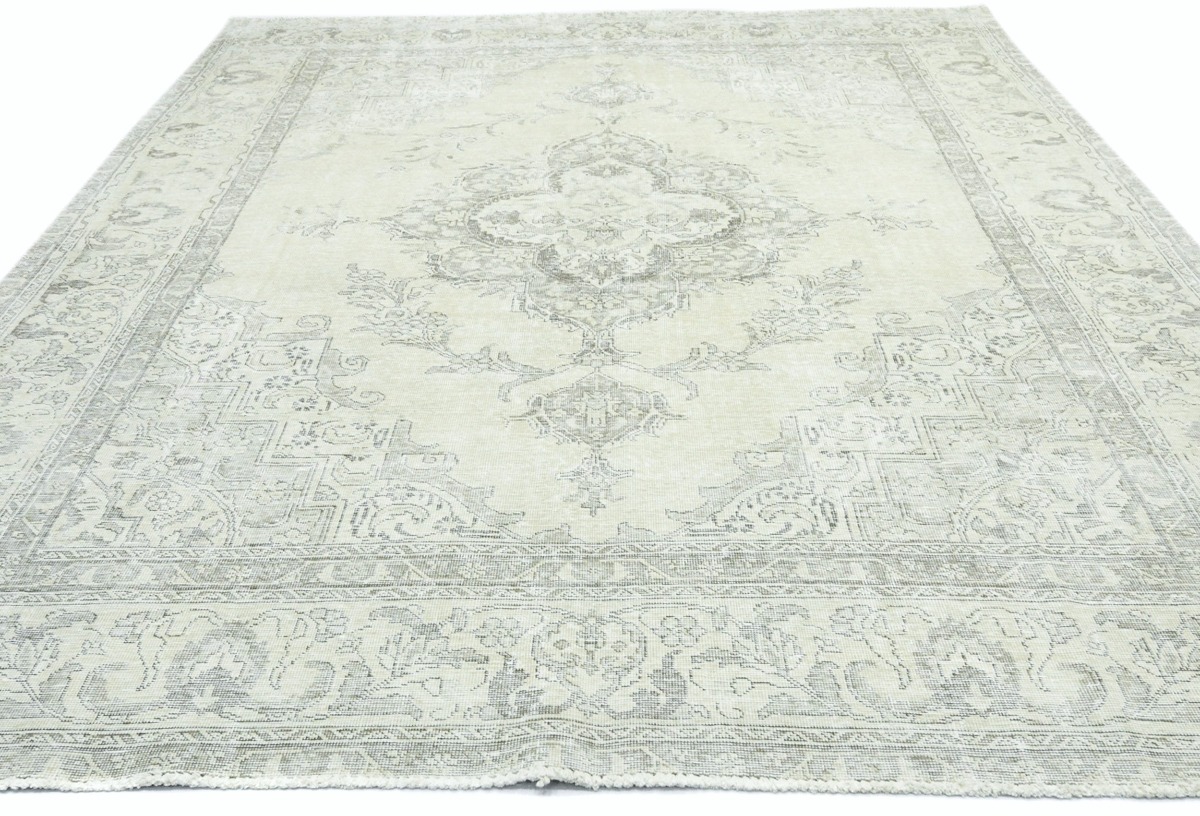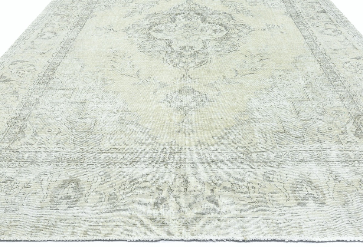 Antique Muted Beige Floral 9X12 Distressed Vintage Oriental Rug