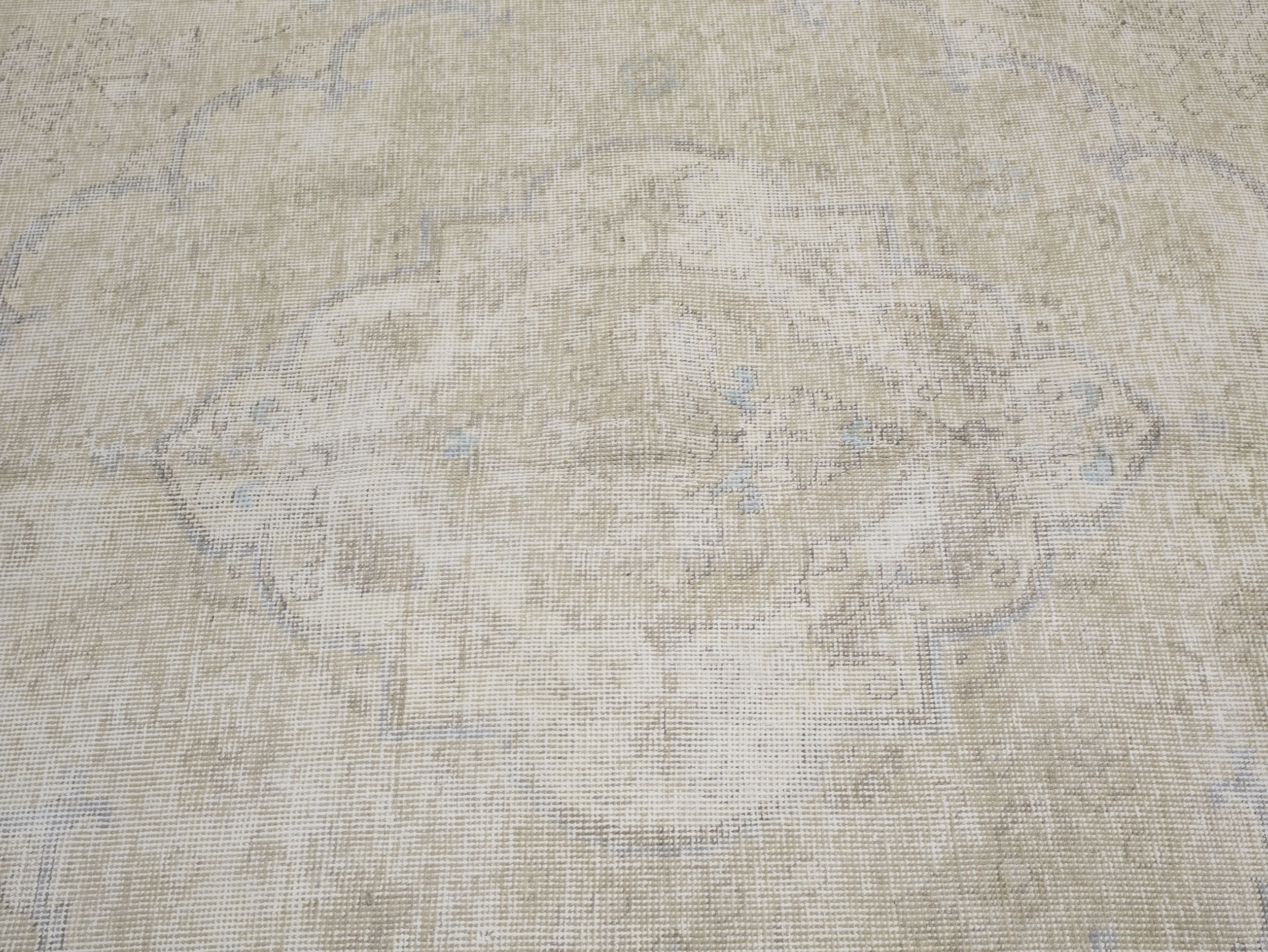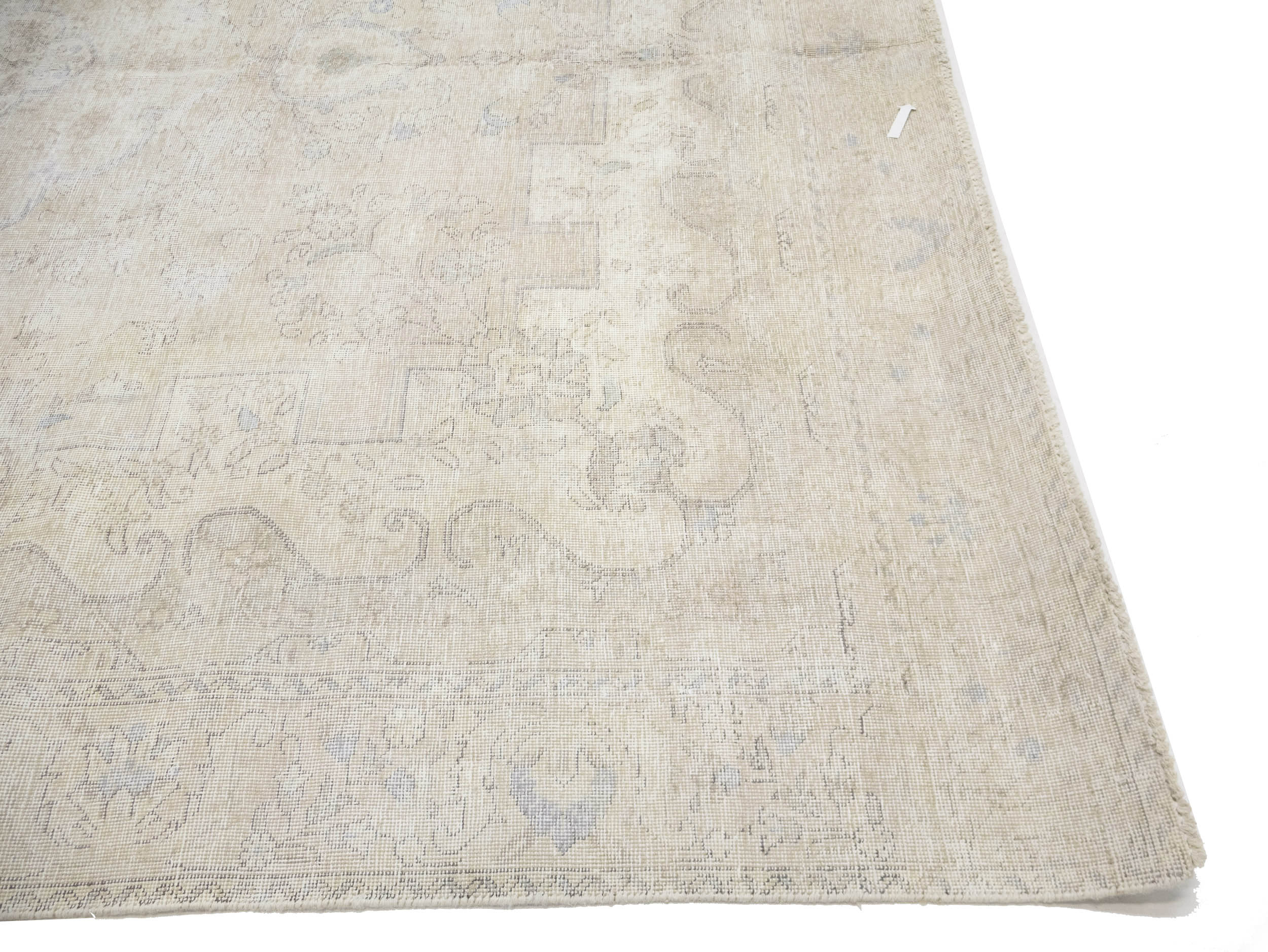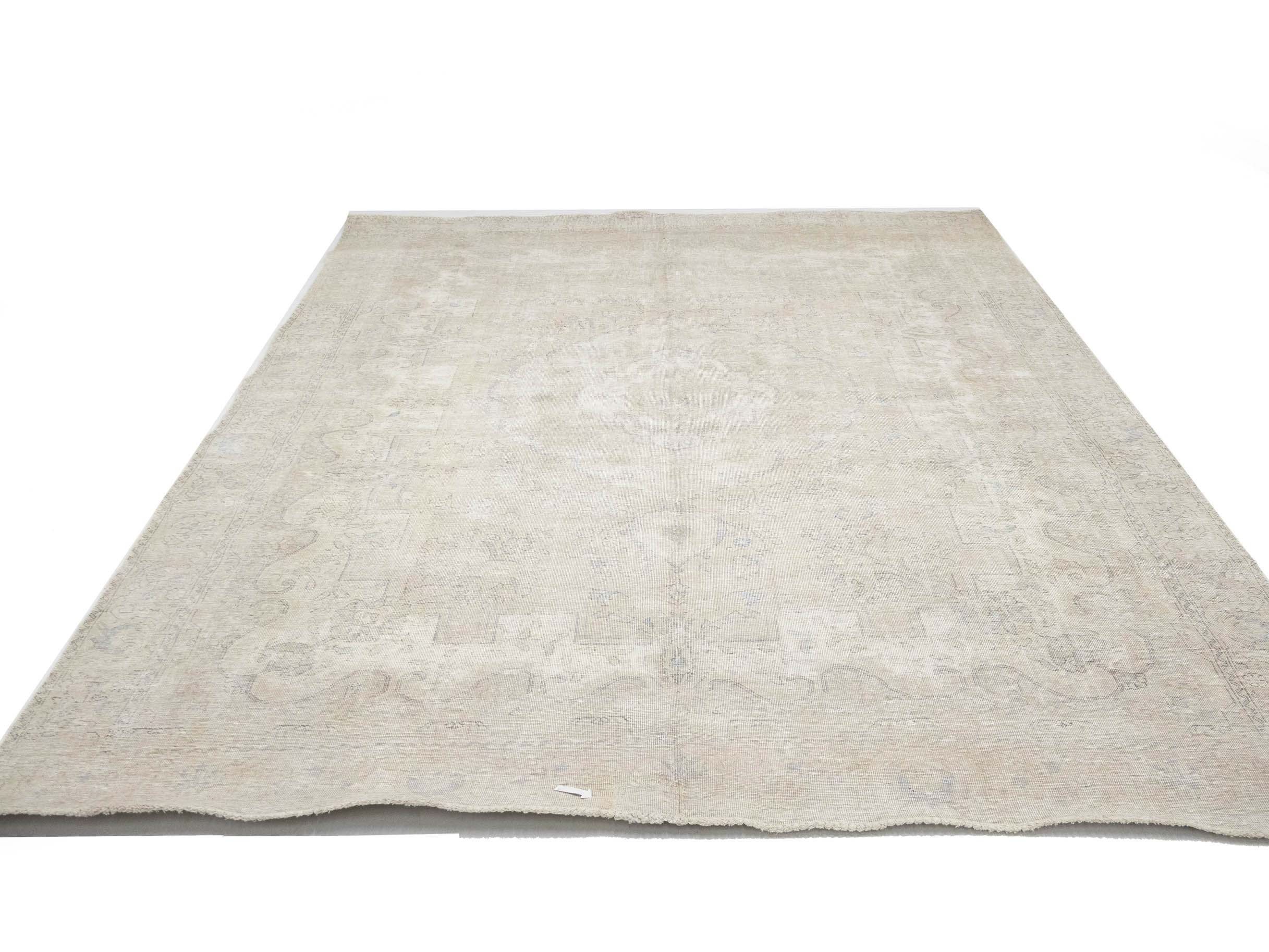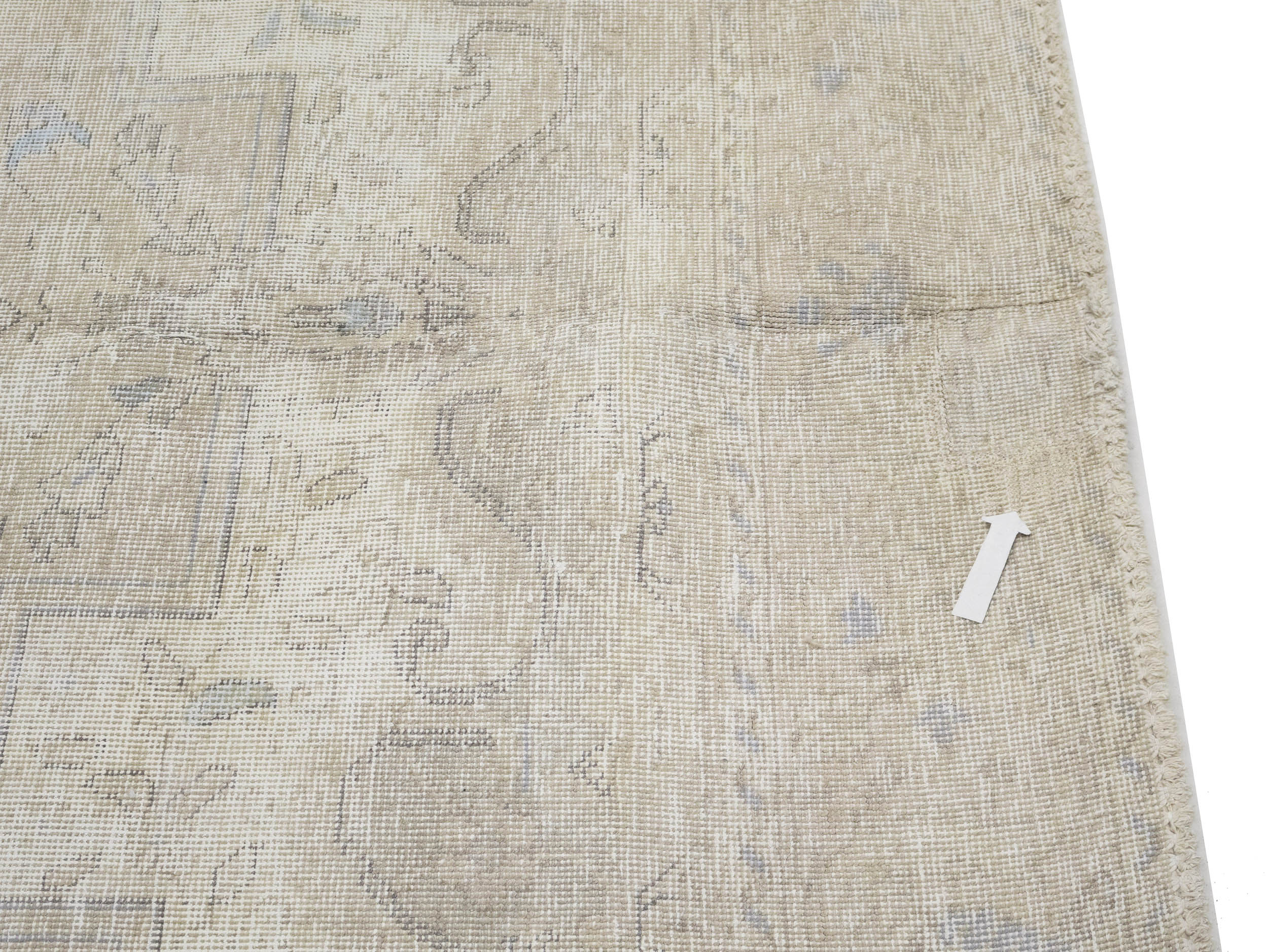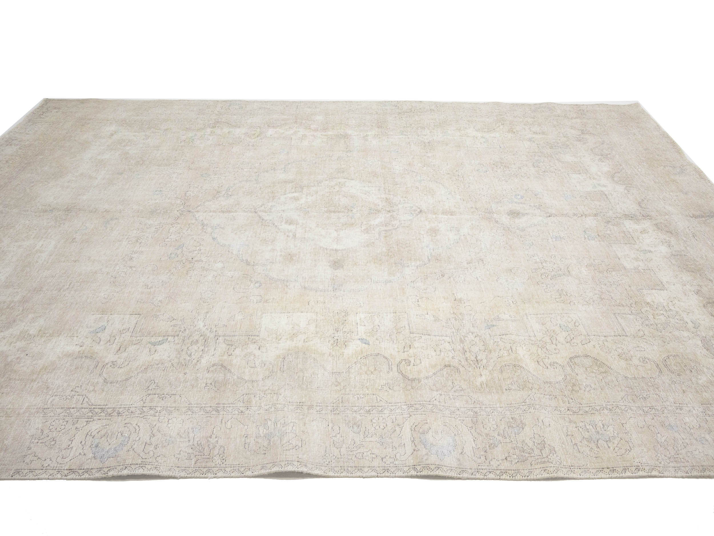 Antique Muted Beige Floral 9X12 Distressed Vintage Oriental Rug