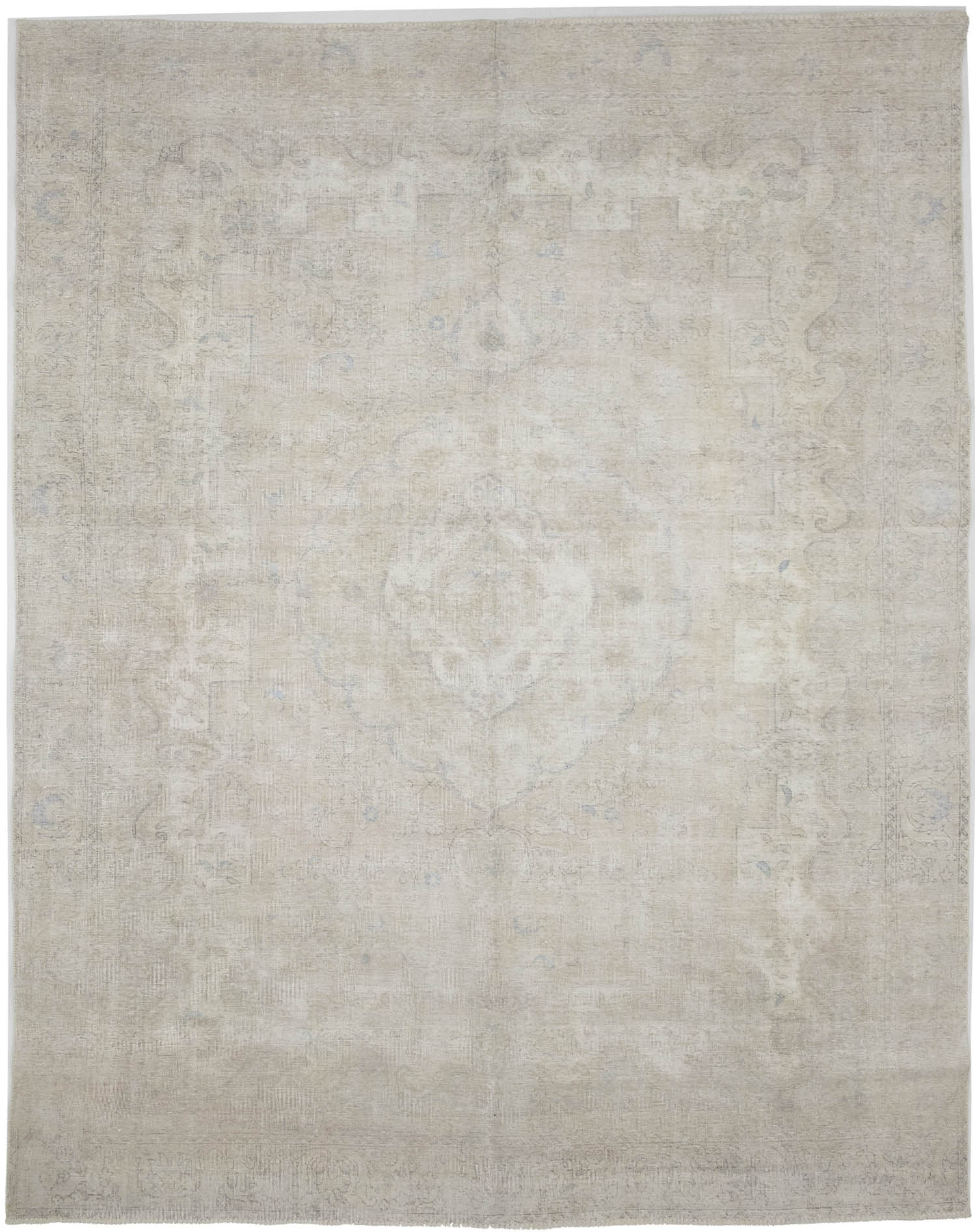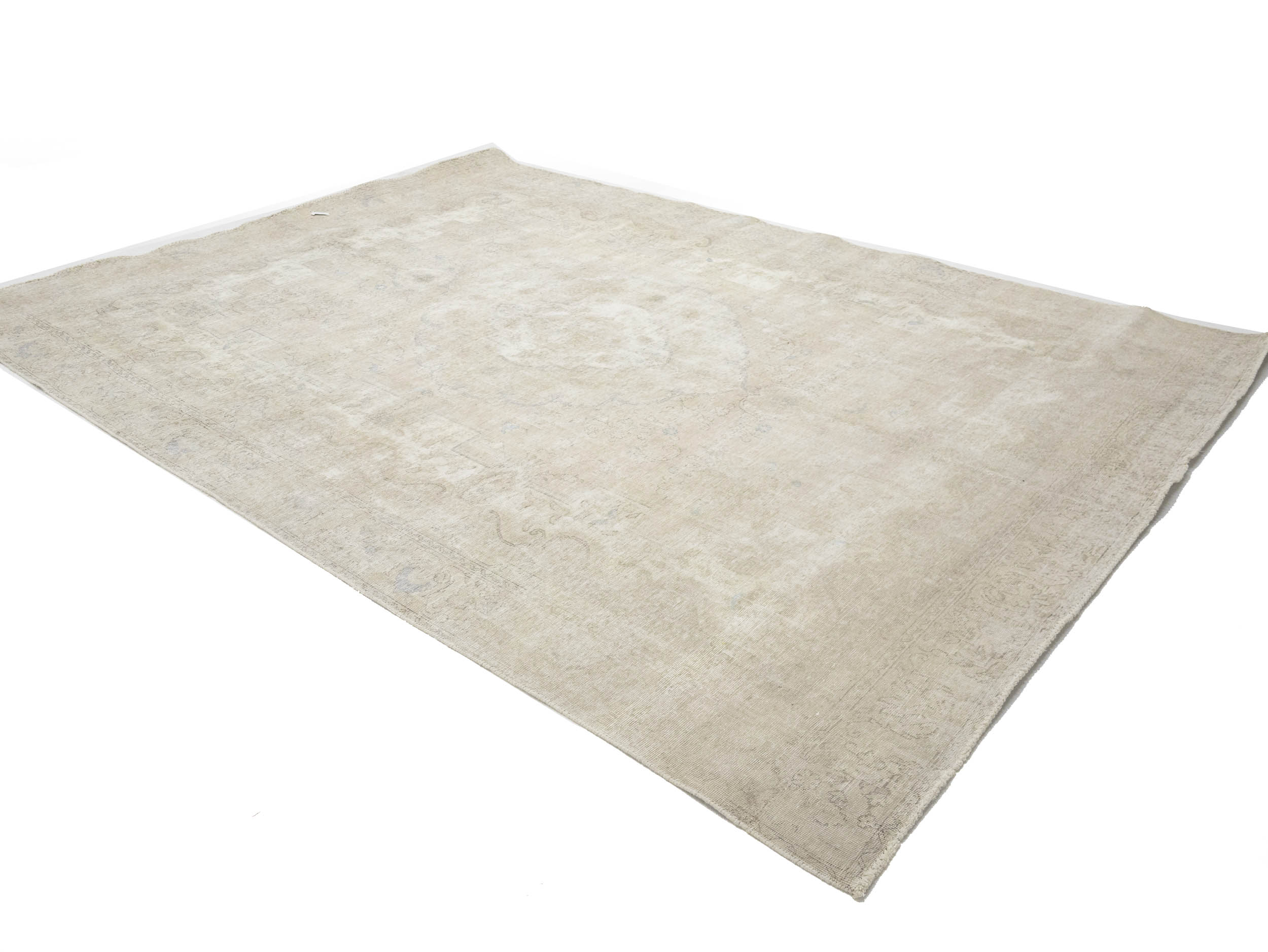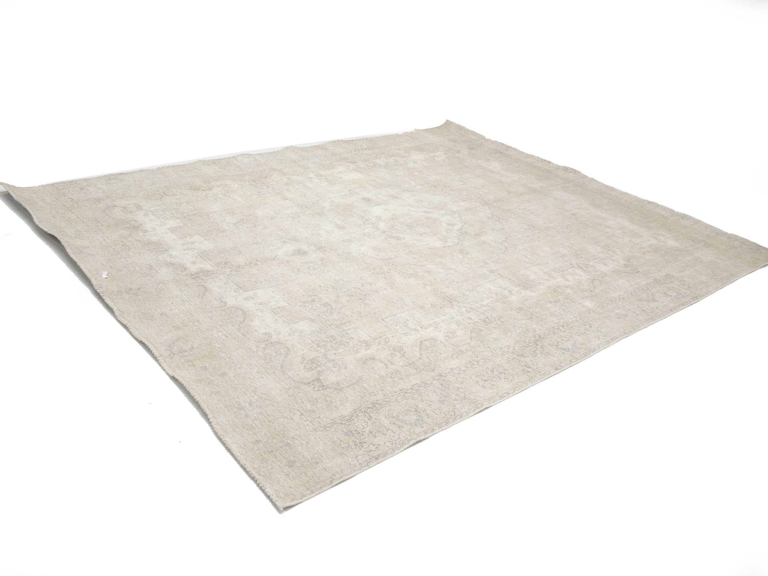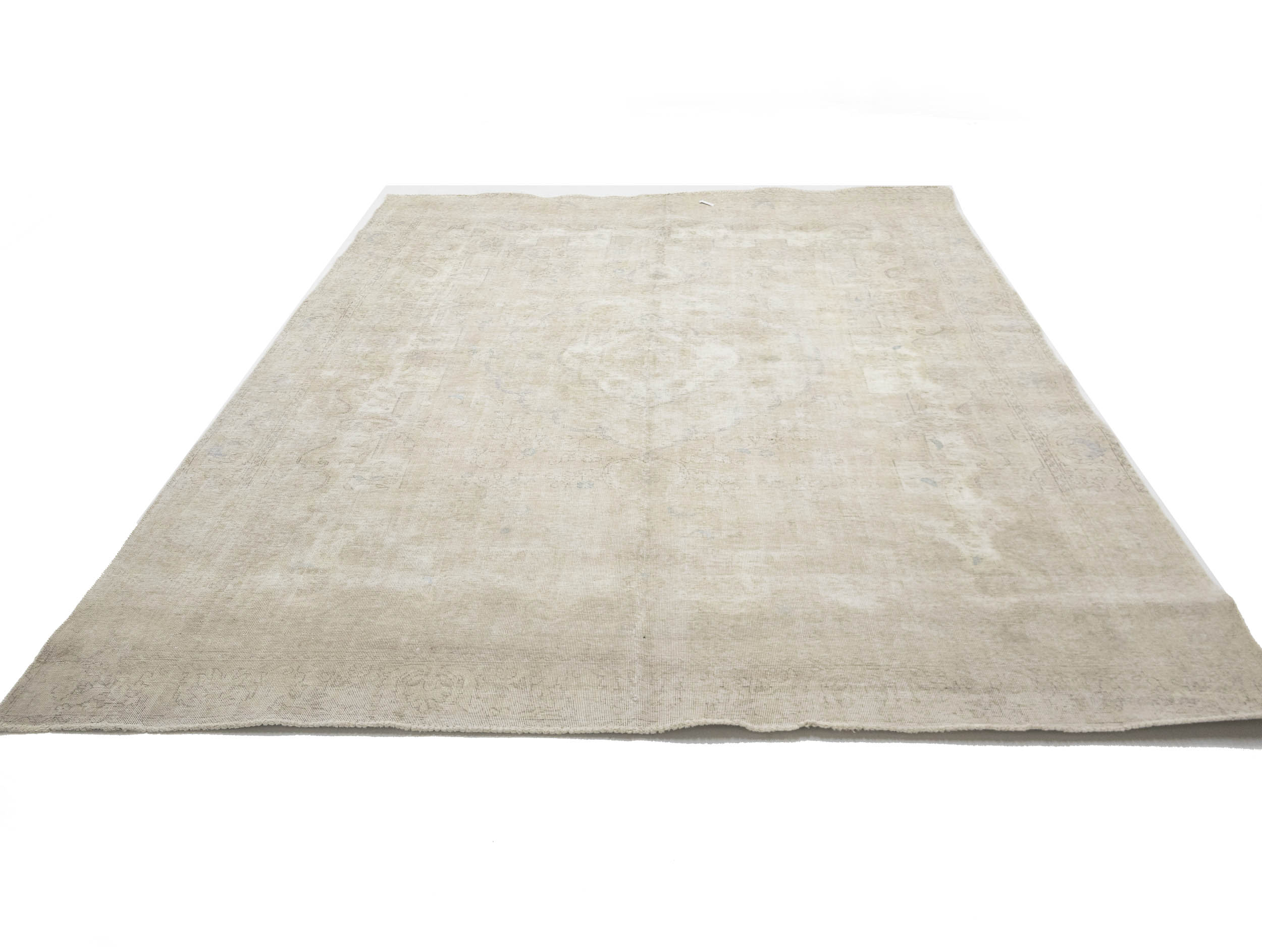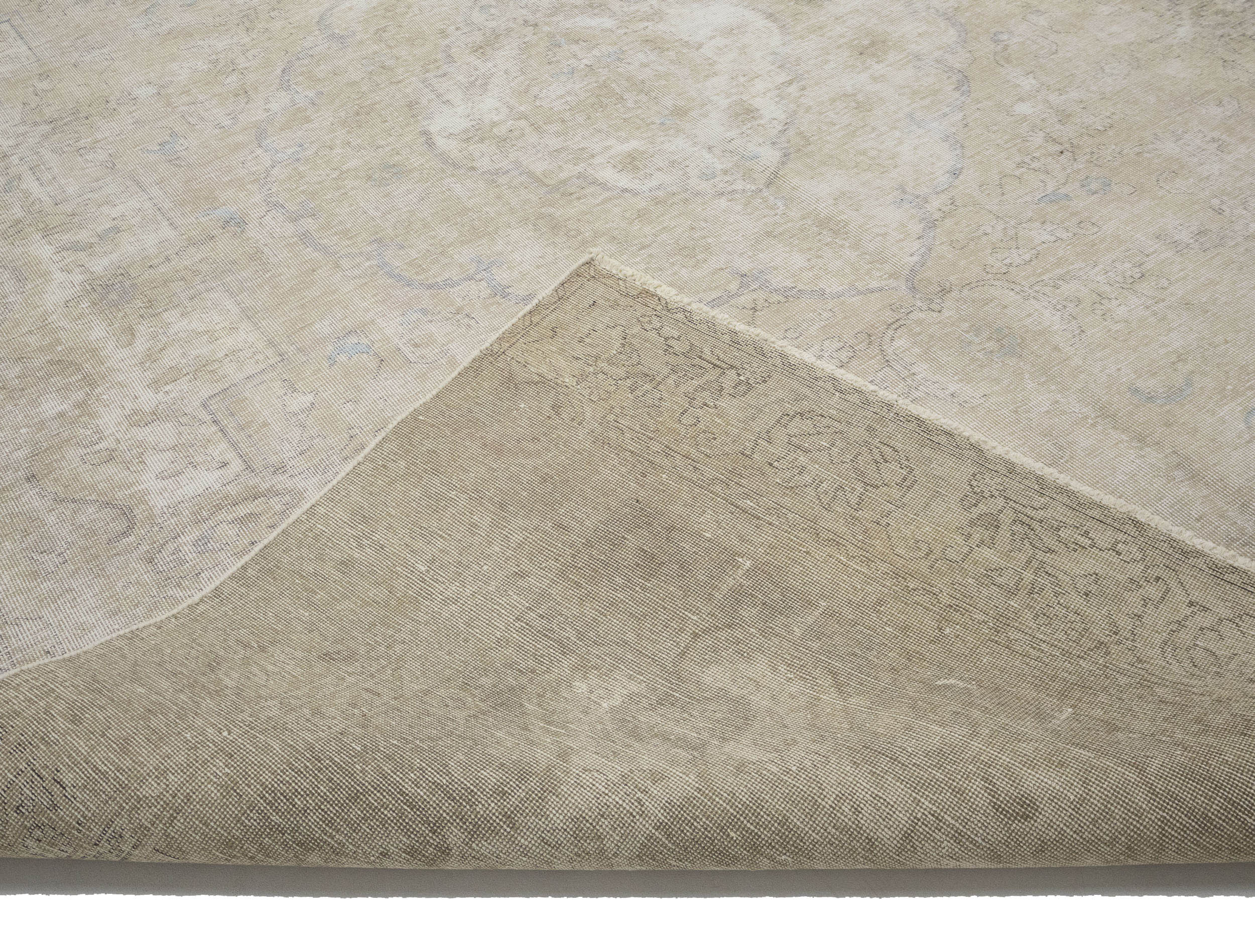 Antique Muted Beige Floral 9X12 Distressed Vintage Oriental Rug