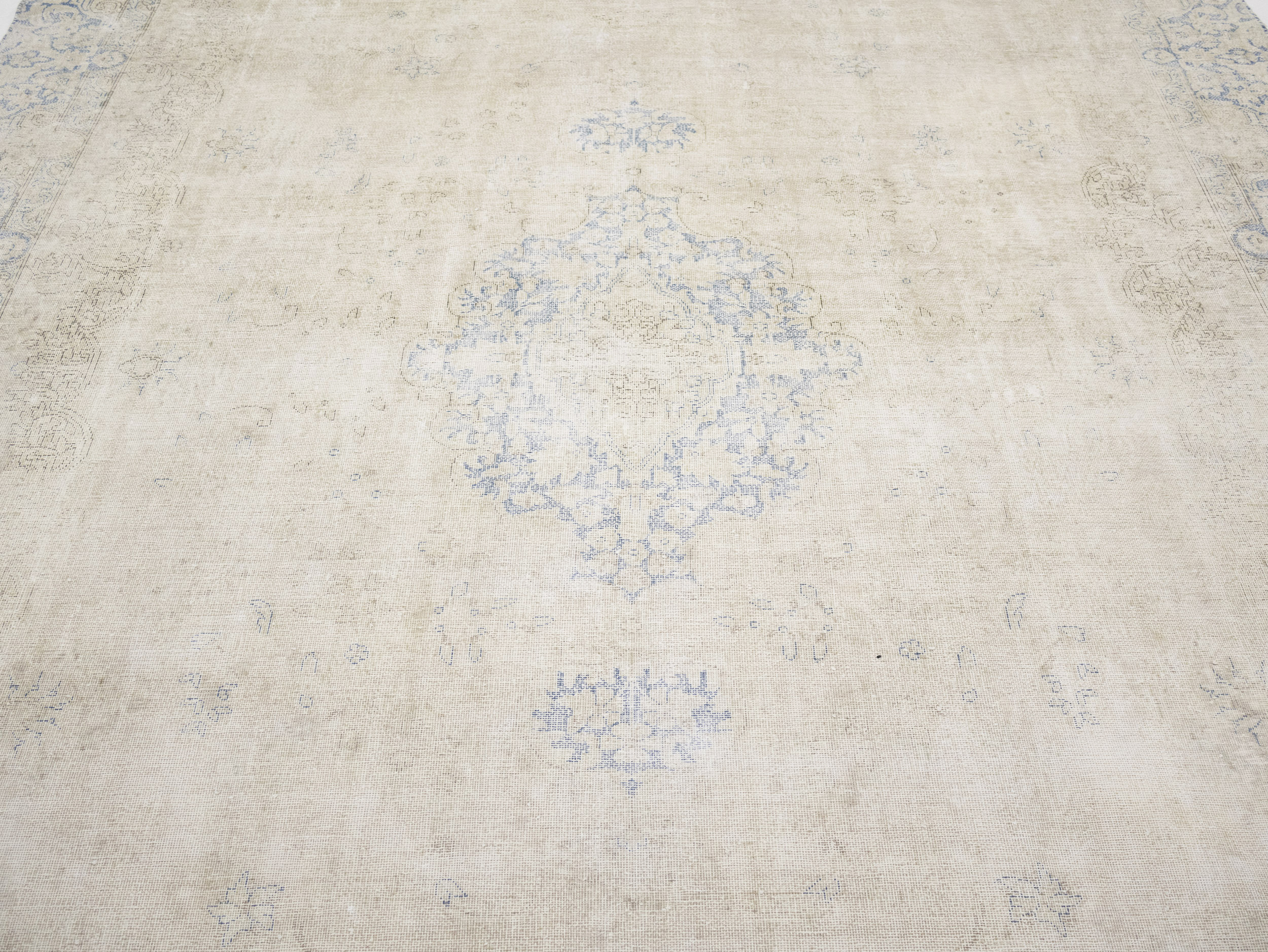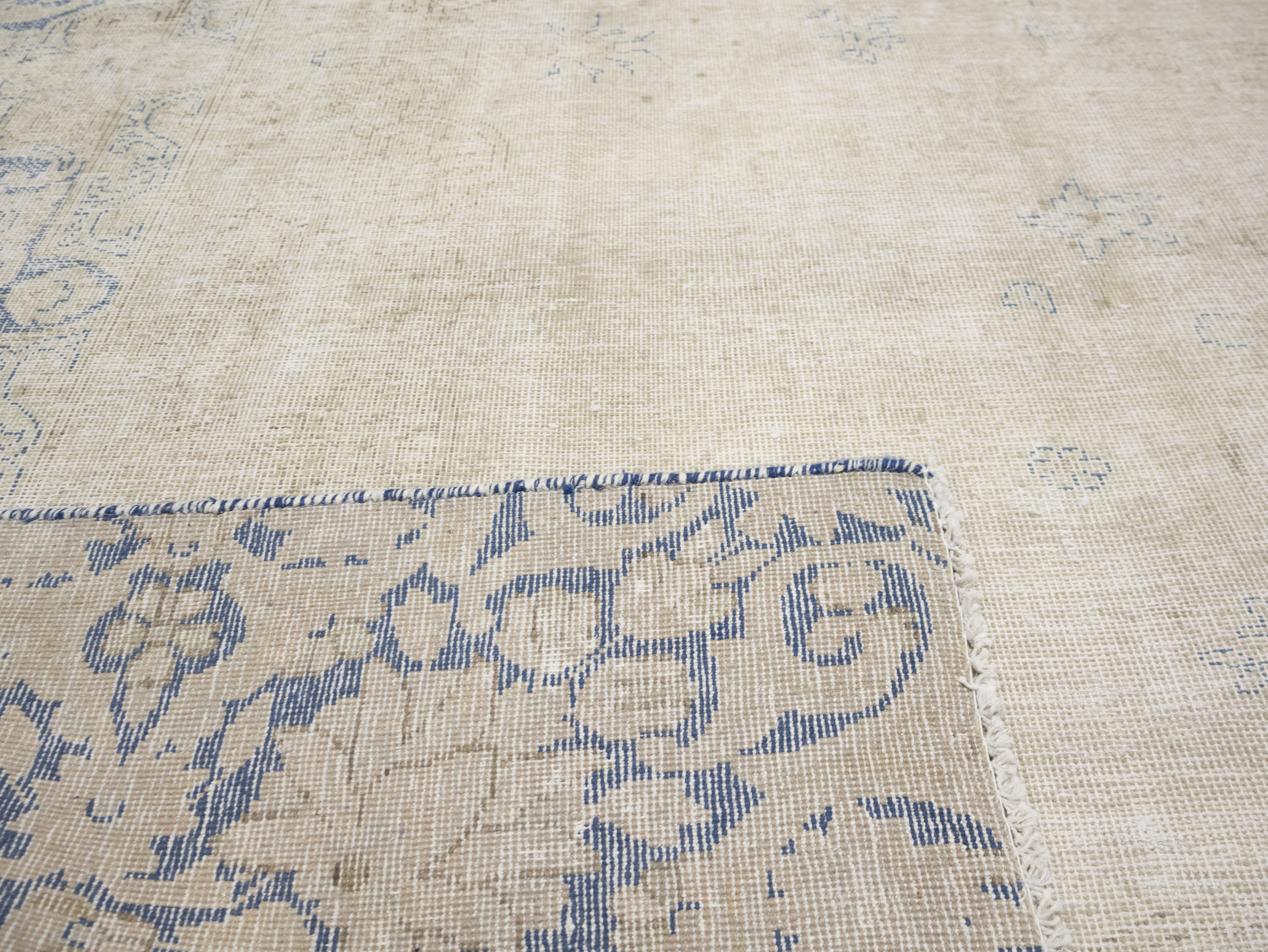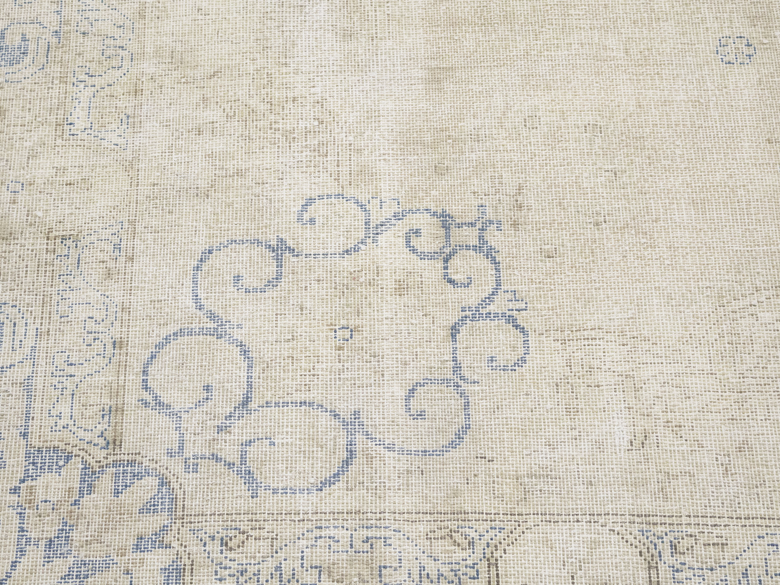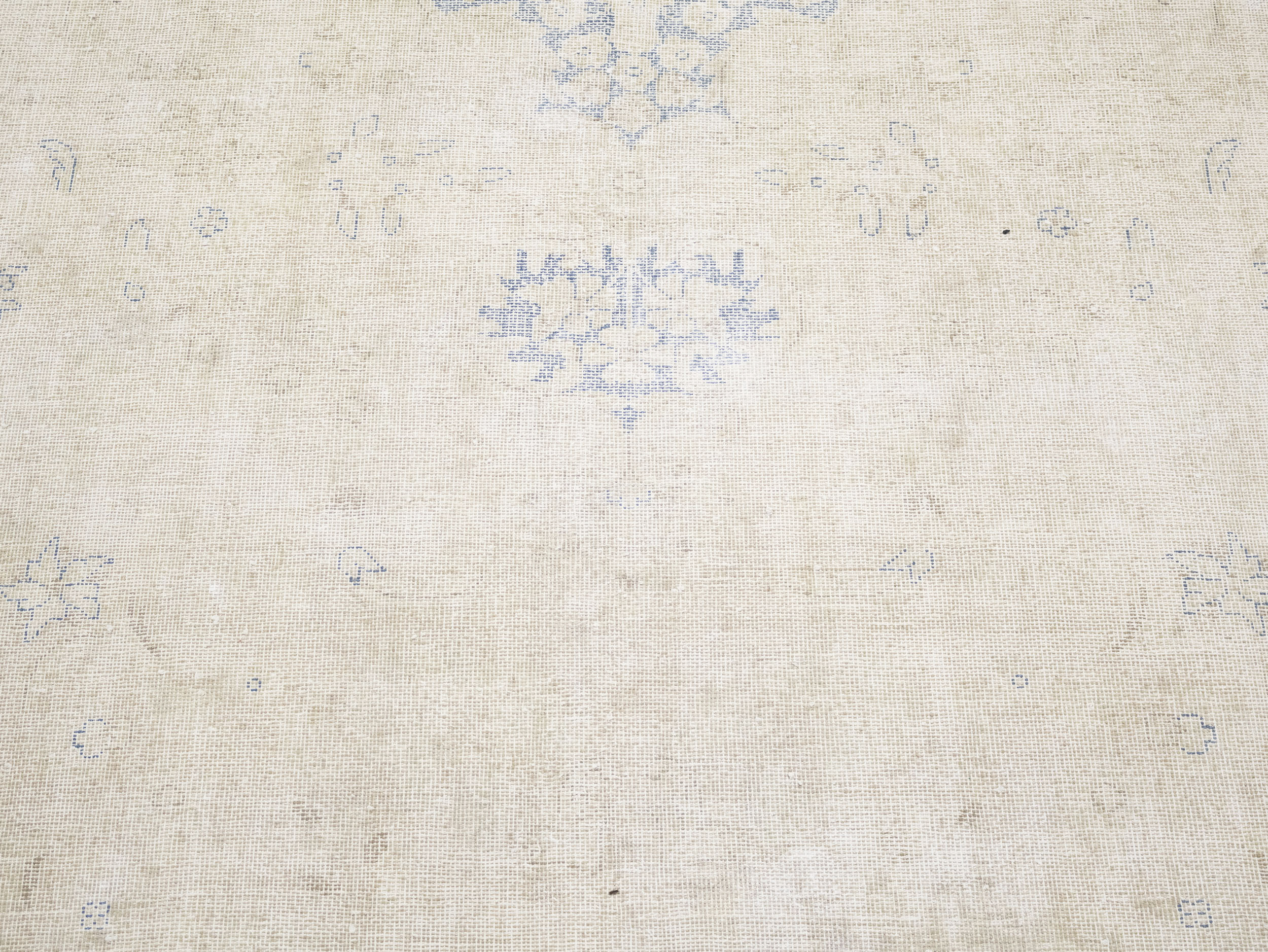 Antique Muted Beige Floral 9X12 Distressed Vintage Oriental Rug