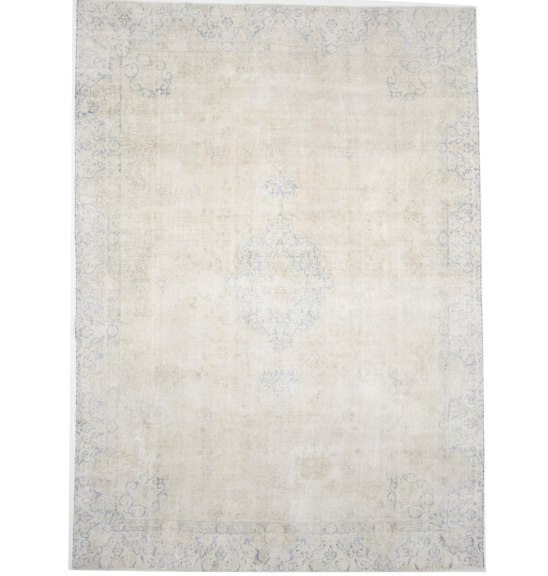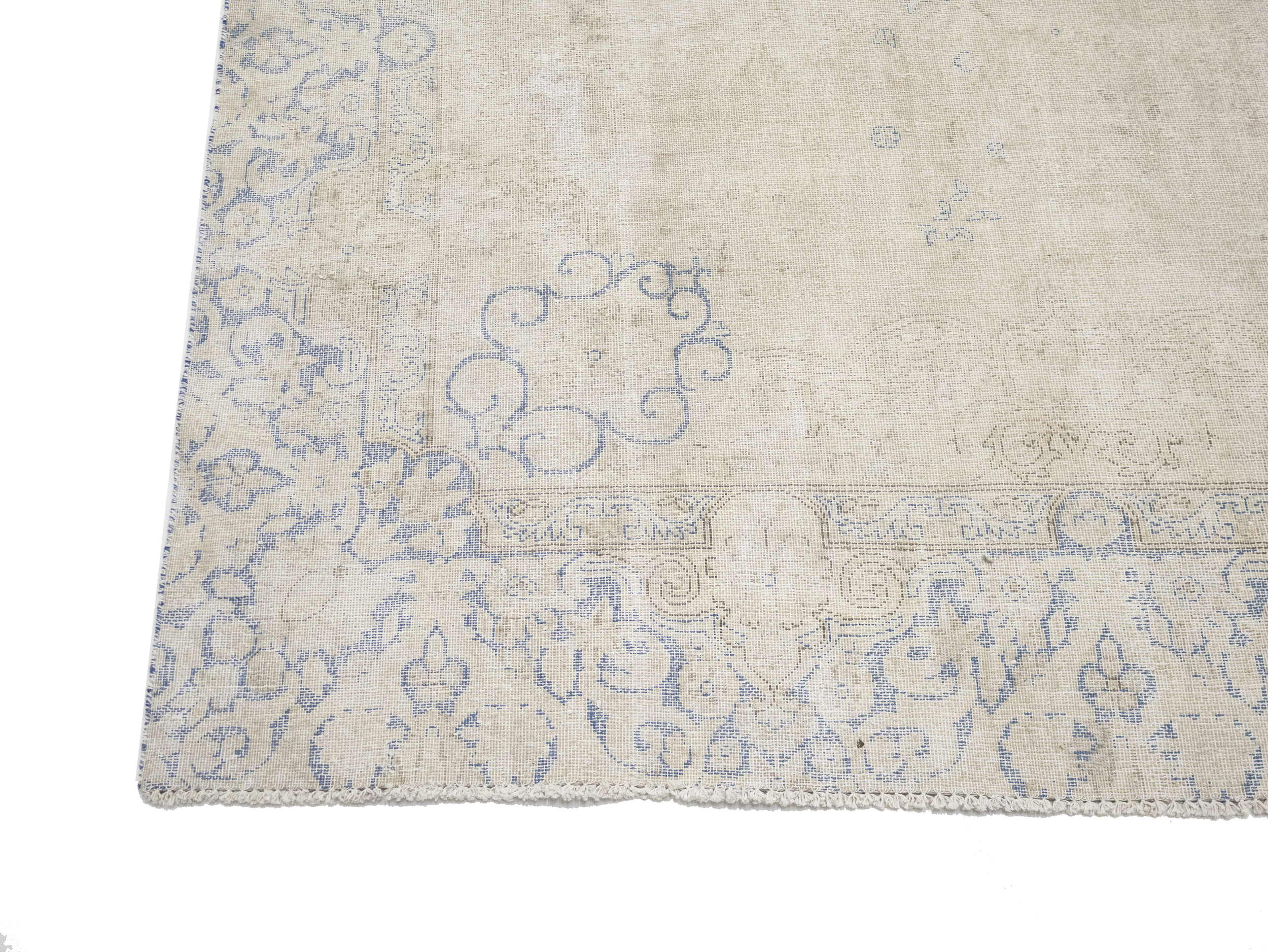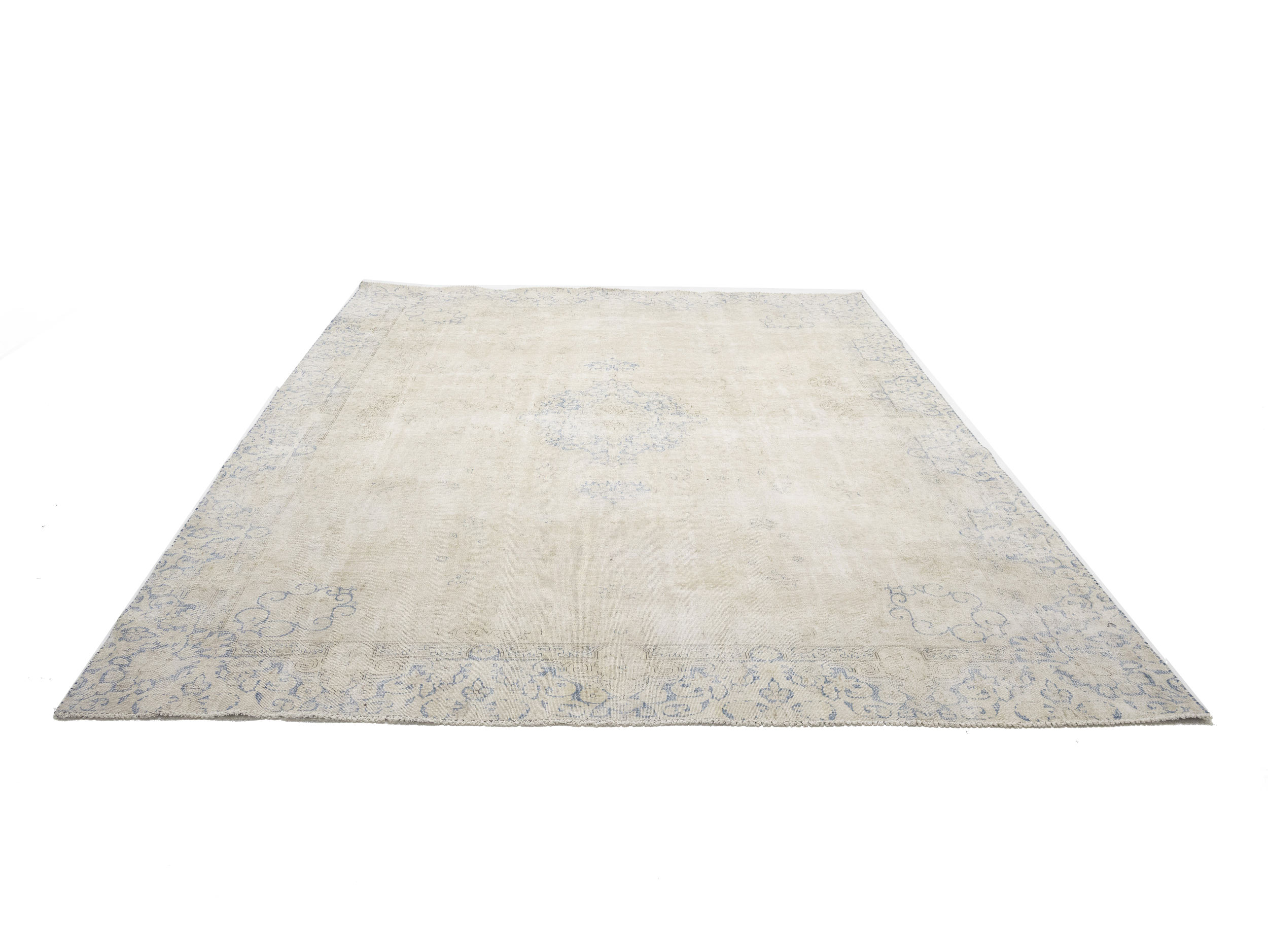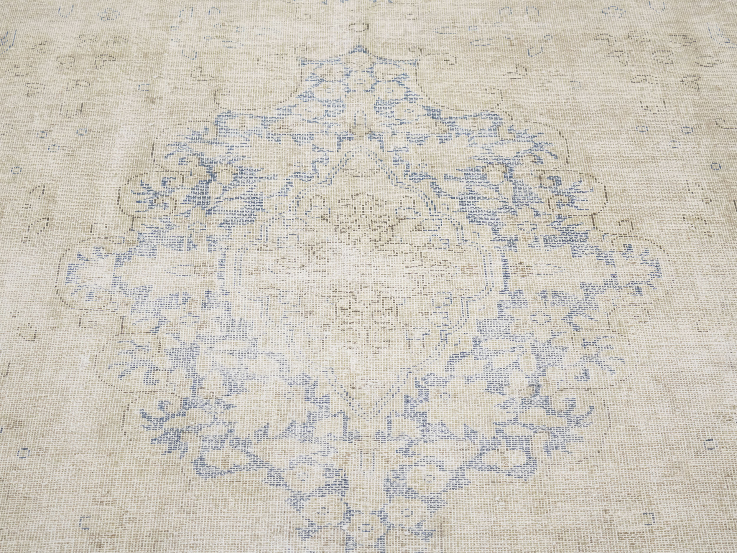 Antique Muted Beige Floral 9X12 Distressed Vintage Oriental Rug