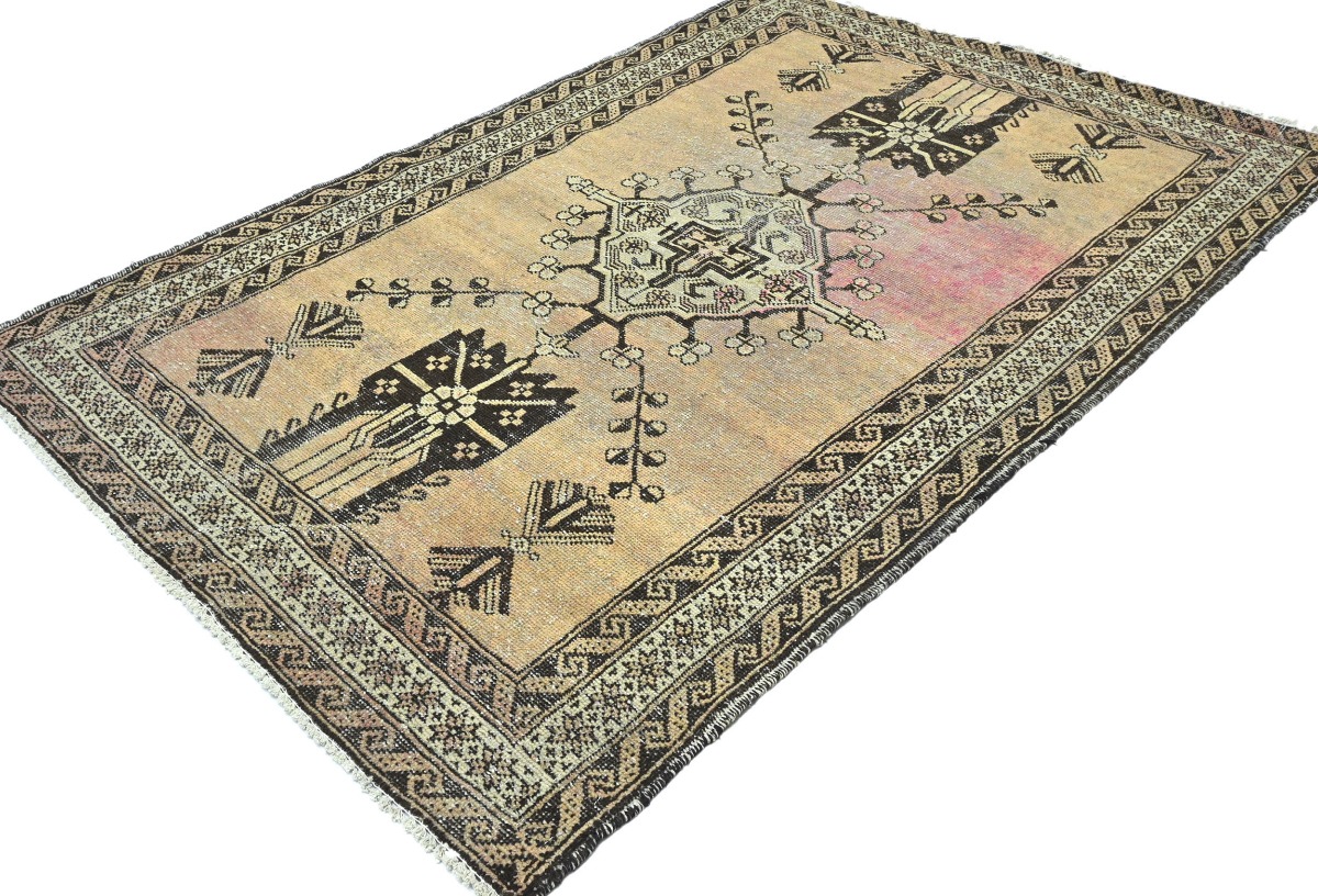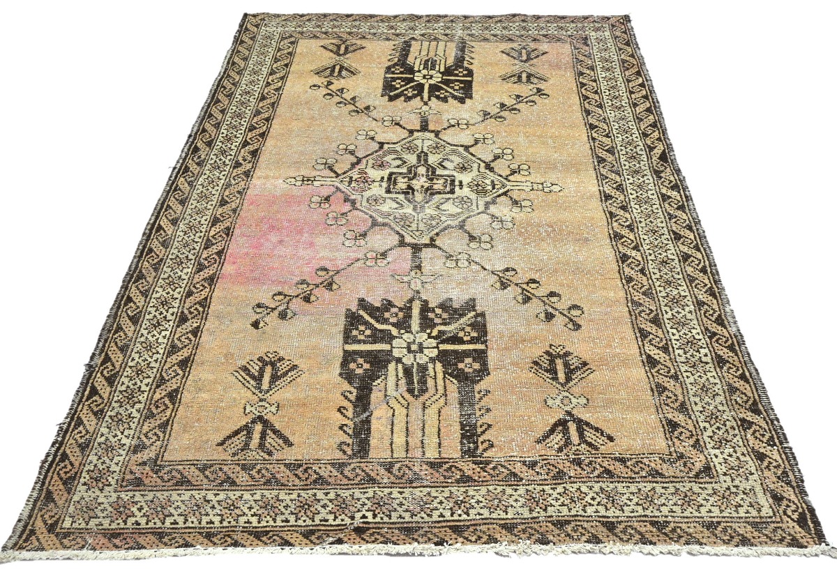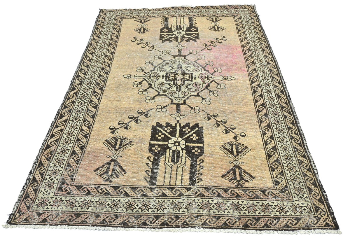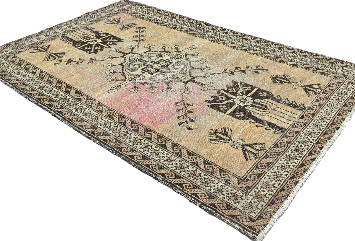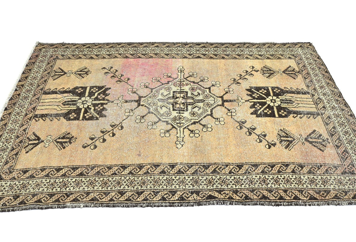 Antique Muted Beige Tribal 4'2X6'5 Distressed Vintage Oriental Rug