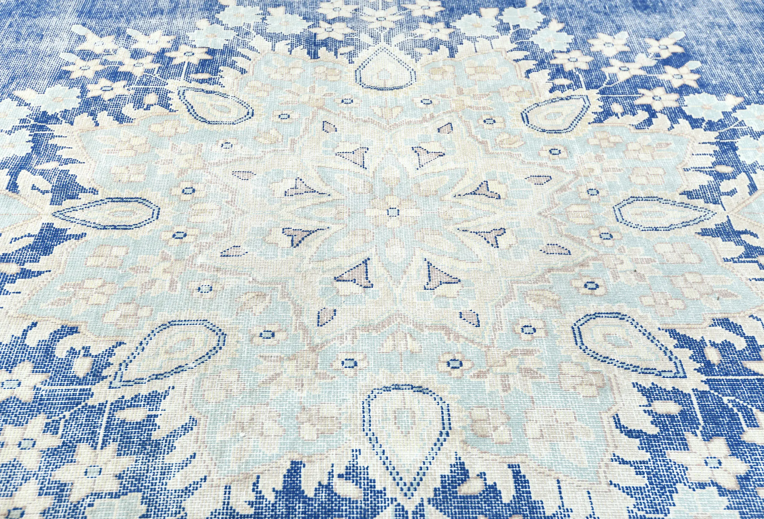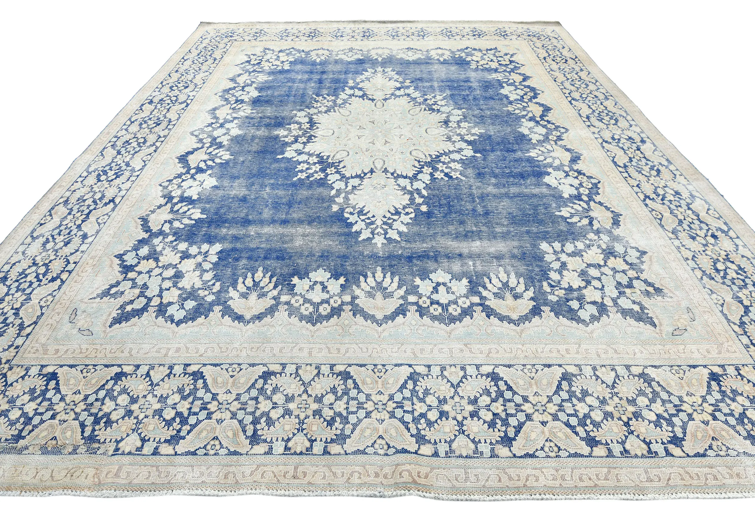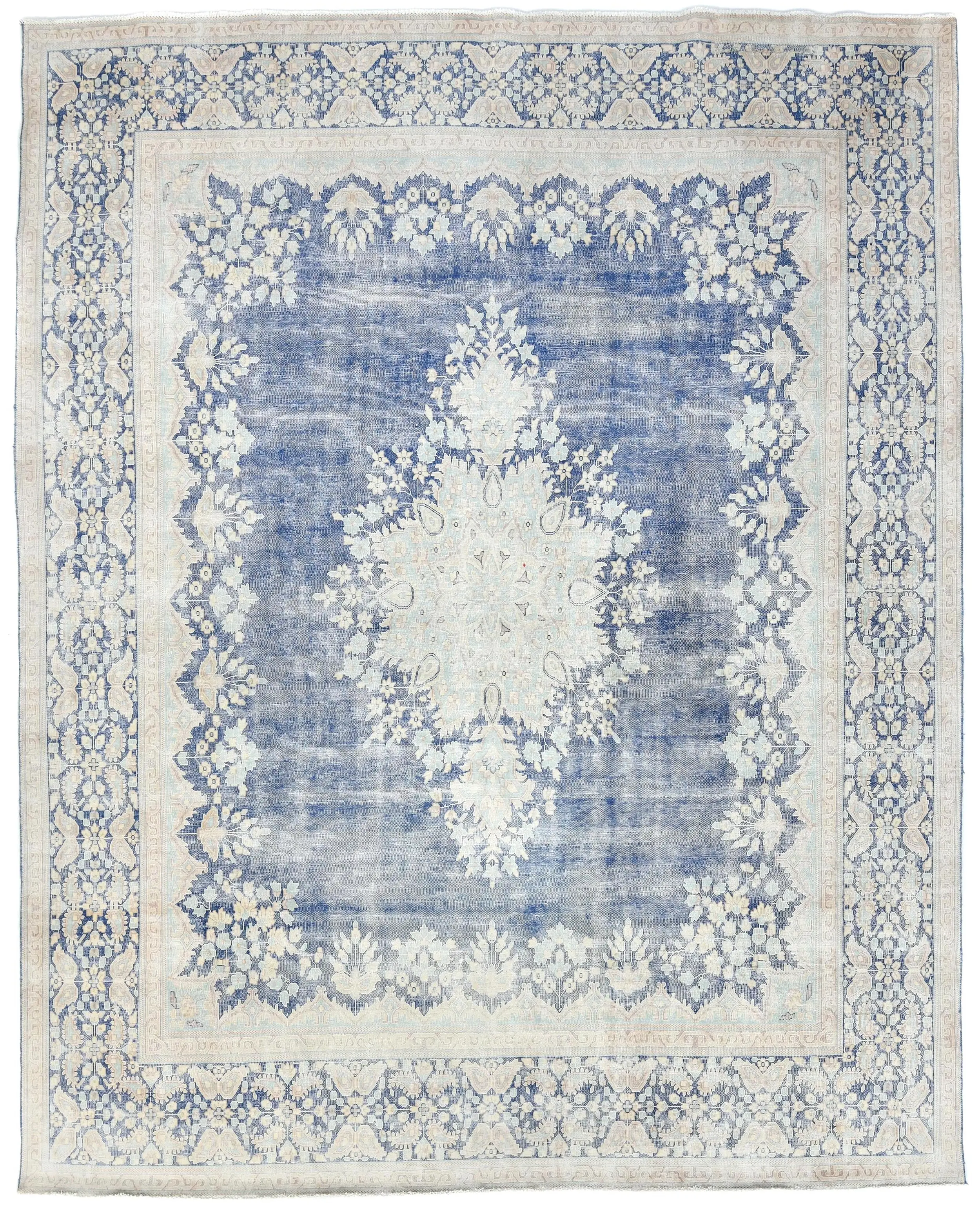 Antique Muted Blue Floral 10X12 Distressed Vintage Oriental Rug