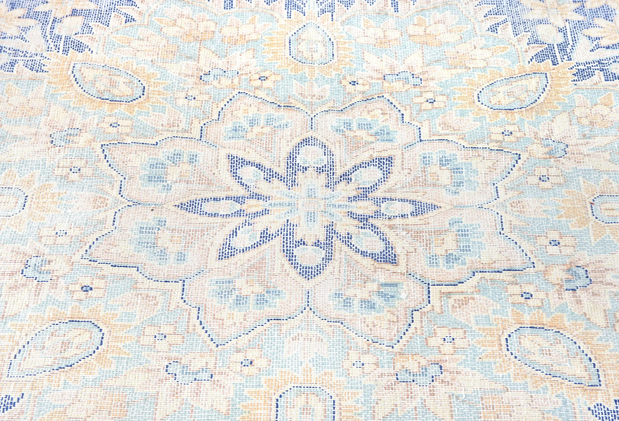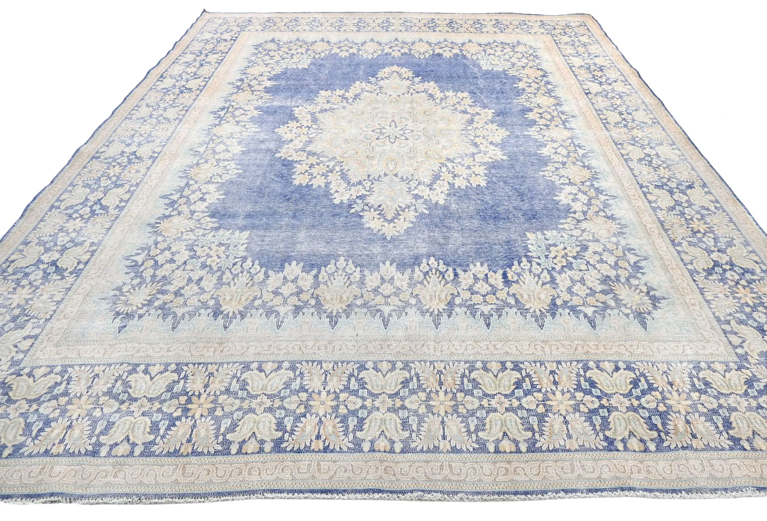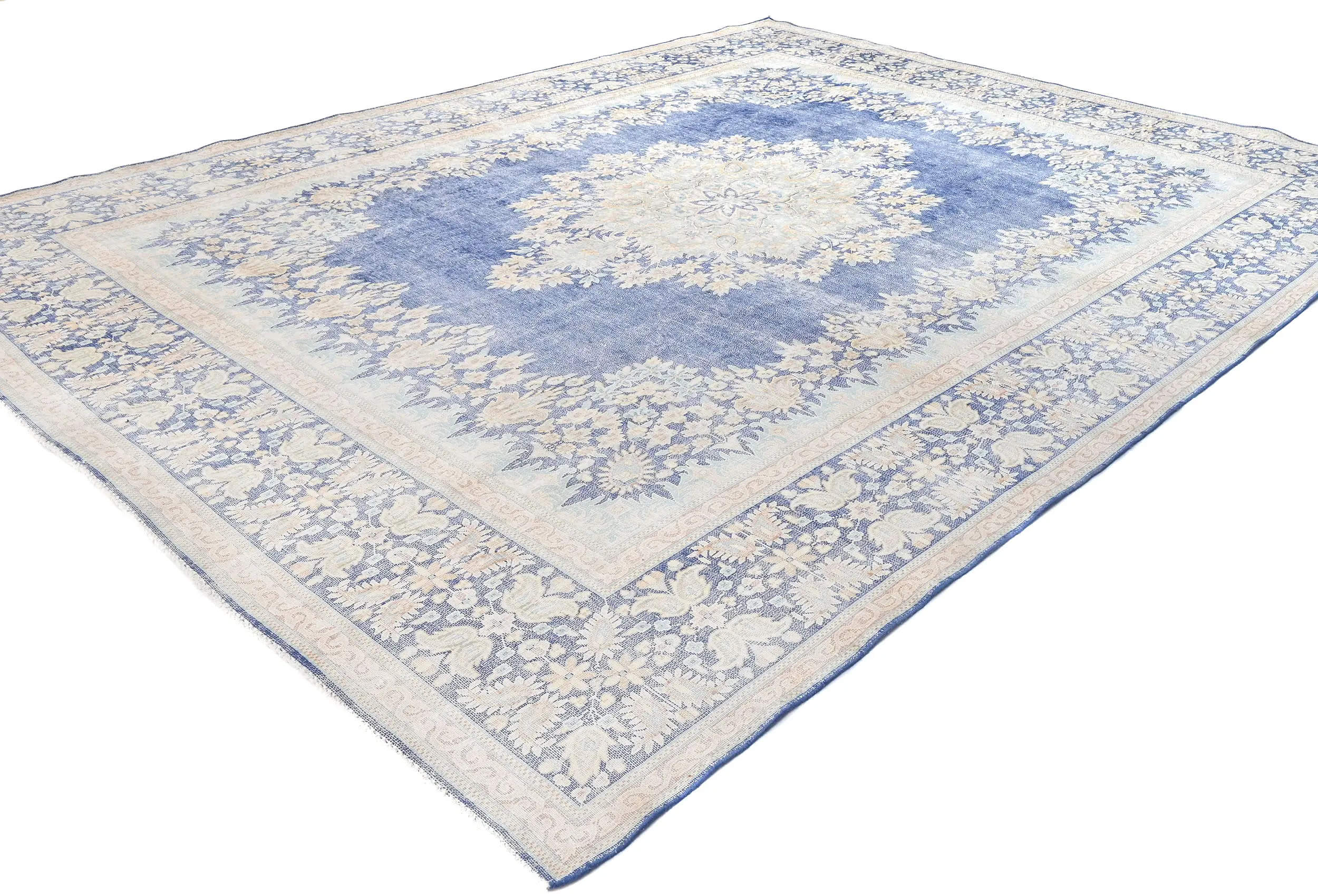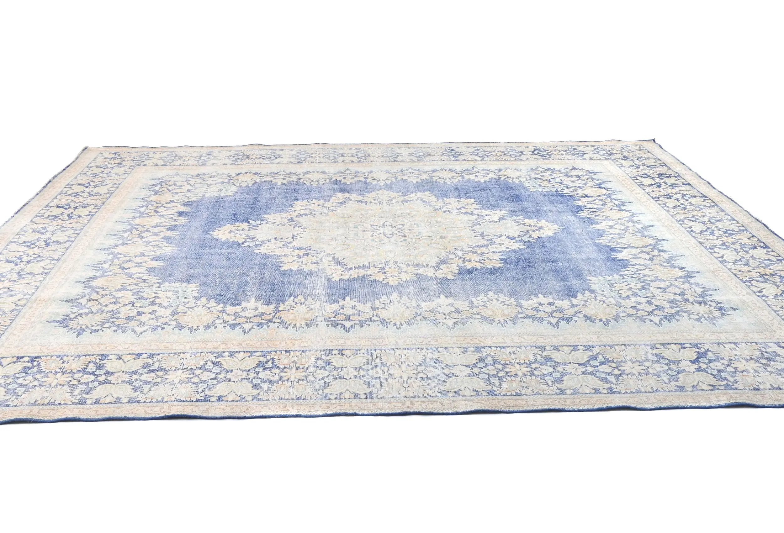 This authentic 10X13 Blue vintage Oriental rug was finely knotted by the hands of weavers influenced by a variety of amazing artistic designs, to recreate the aged look of the exceptional piece with a richness of color and embellished floral background field. What set this traditional Oriental area rug from the others are the material and dye used (wool pile and cotton foundation), knot count, antique designs, fantastic grades, and its regional historical connection: it has deep roots, from the story of the people who produced it to the meaning of the symbols and colors displayed across its canvas that have been praised for centuries. This classic home décor carpet will be completely cozy and inviting that never will go out of style! Also, this Oriental rug would be among your most valuable treasures, it is a great investment that increase in value over time, and it will last a lifetime because was woven with high-quality, all-natural wool; it won’t rip, tear, or shed. Eco-friendly, opulent yet affordable; this Persian rug will give you an extra pop of character to help define your home environment with luxury and warmth that will capture the eyes and attention of your audience (homeowners, designers, decorators, family and friends).