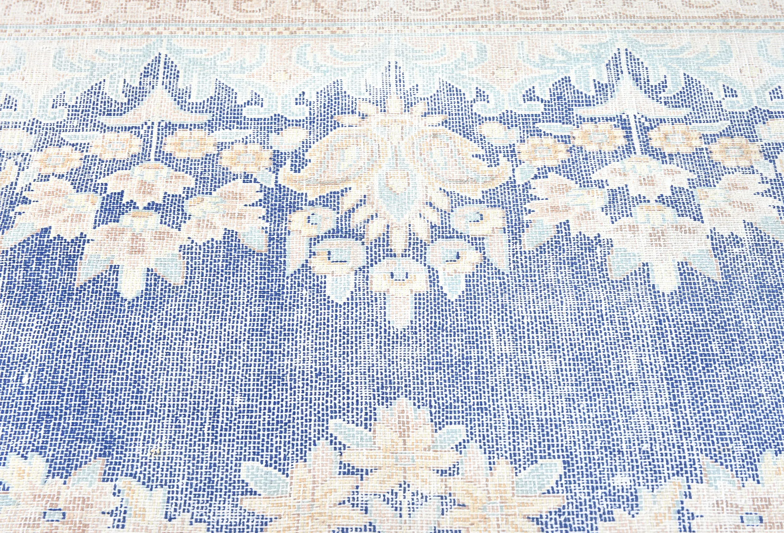 Antique Muted Blue Floral 10X13 Distressed Vintage Oriental Rug
