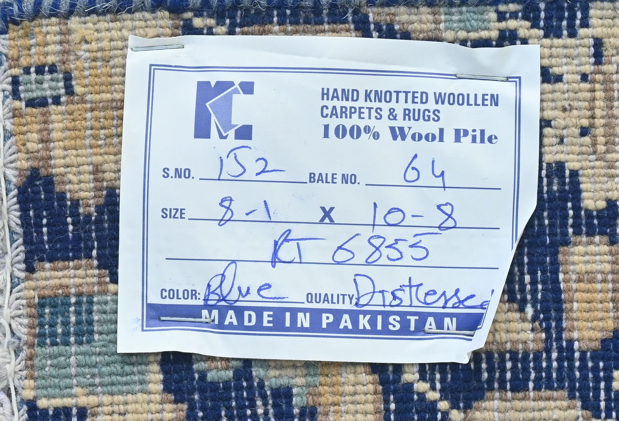 Handmade 8X11 Blue Oriental rug made with vegetable dyes (fine wool pile and cotton foundation), superior knot count, and alluring ancient designs. This Oriental rug never will go out of style and would be among your most valuable treasures.