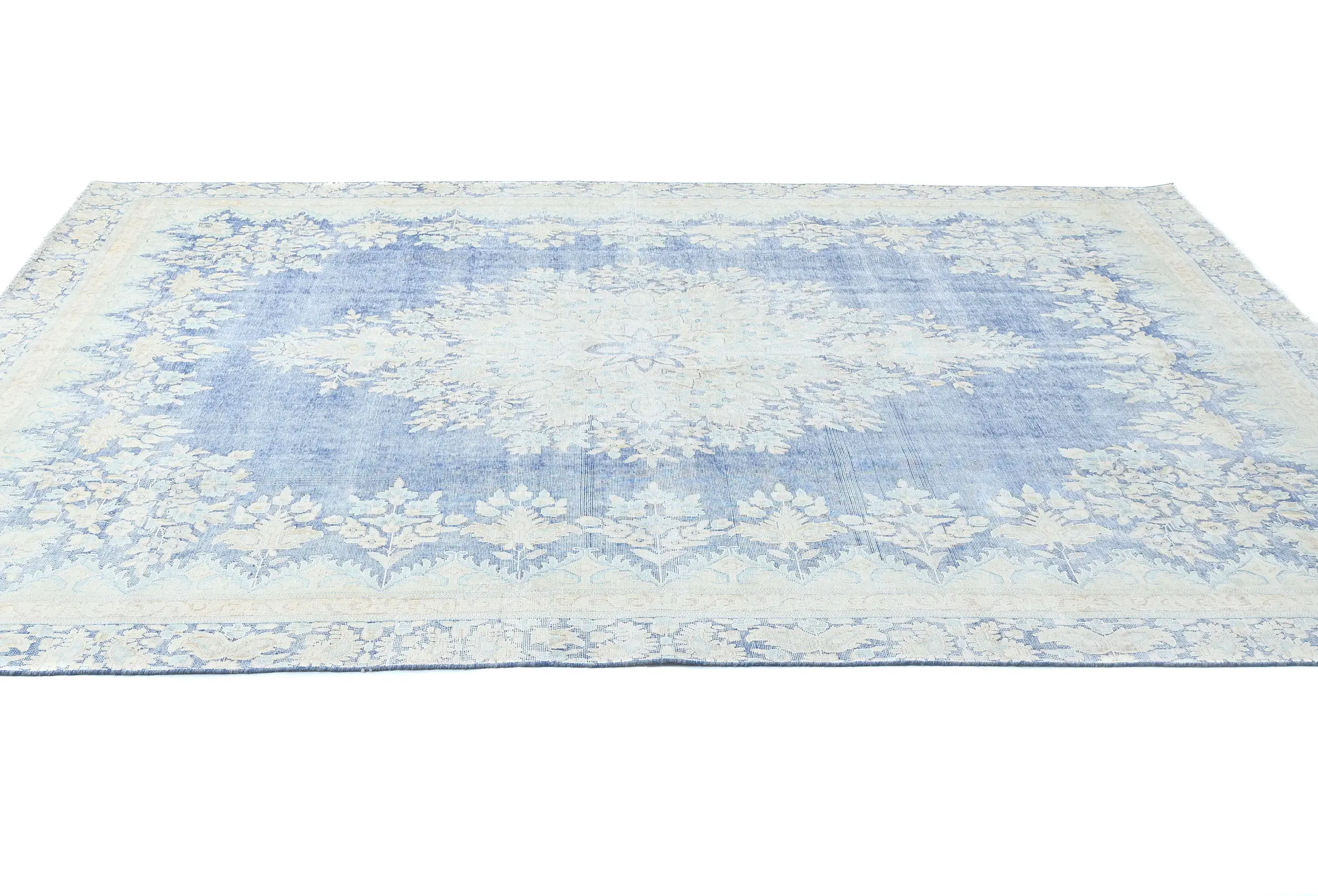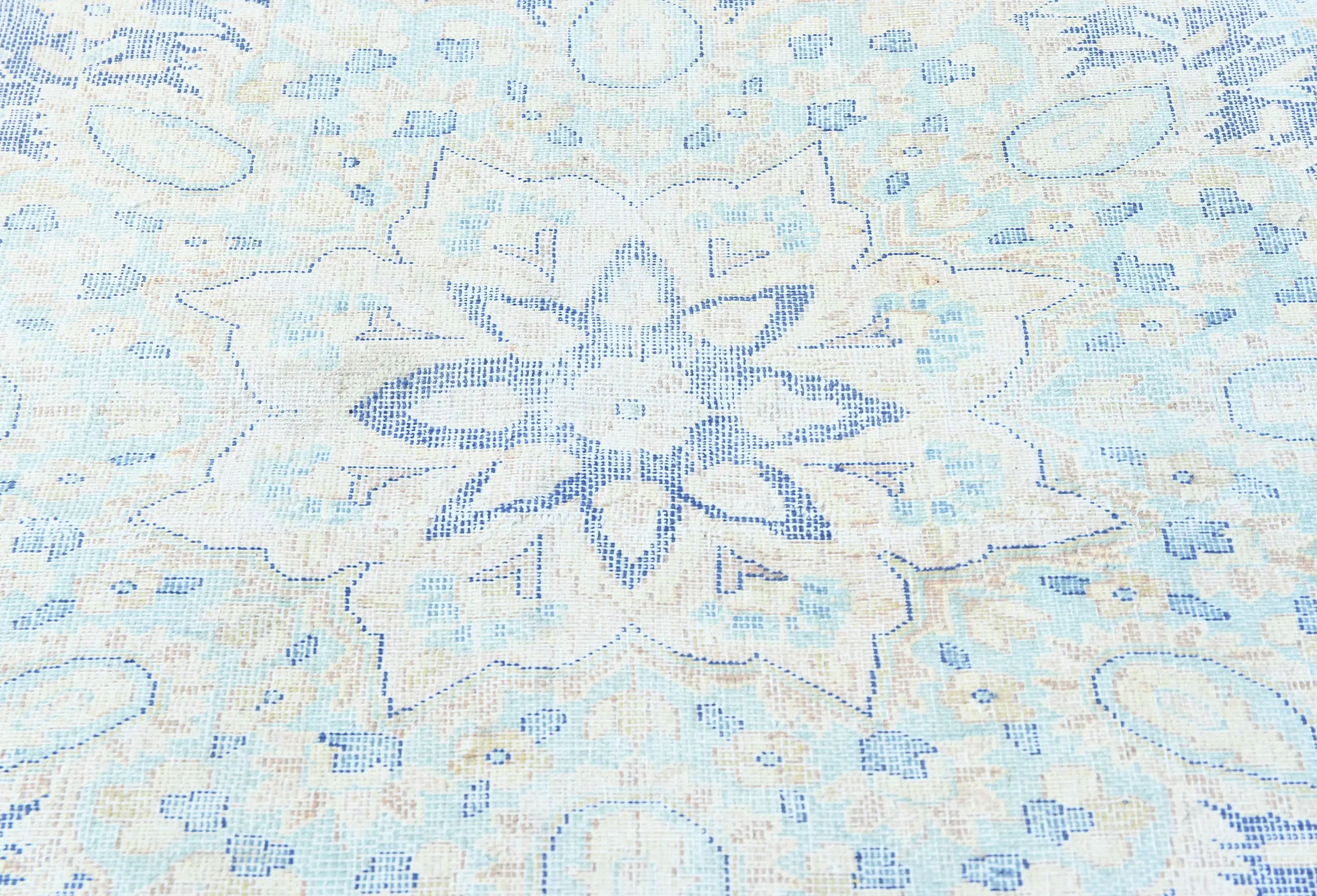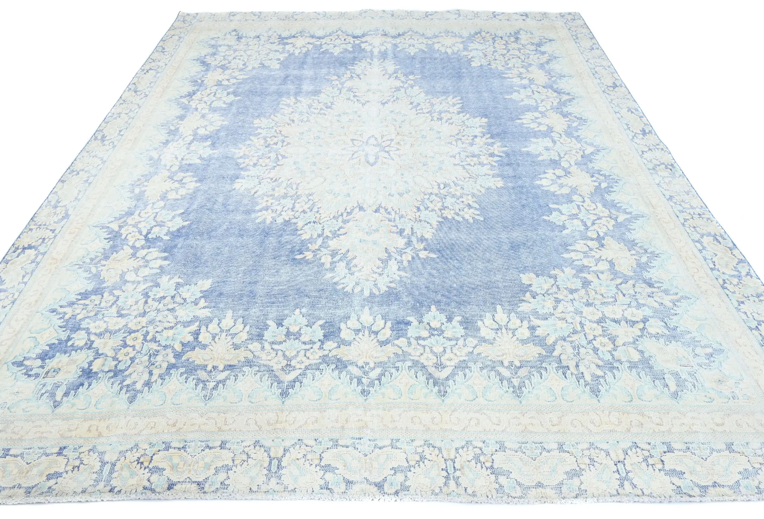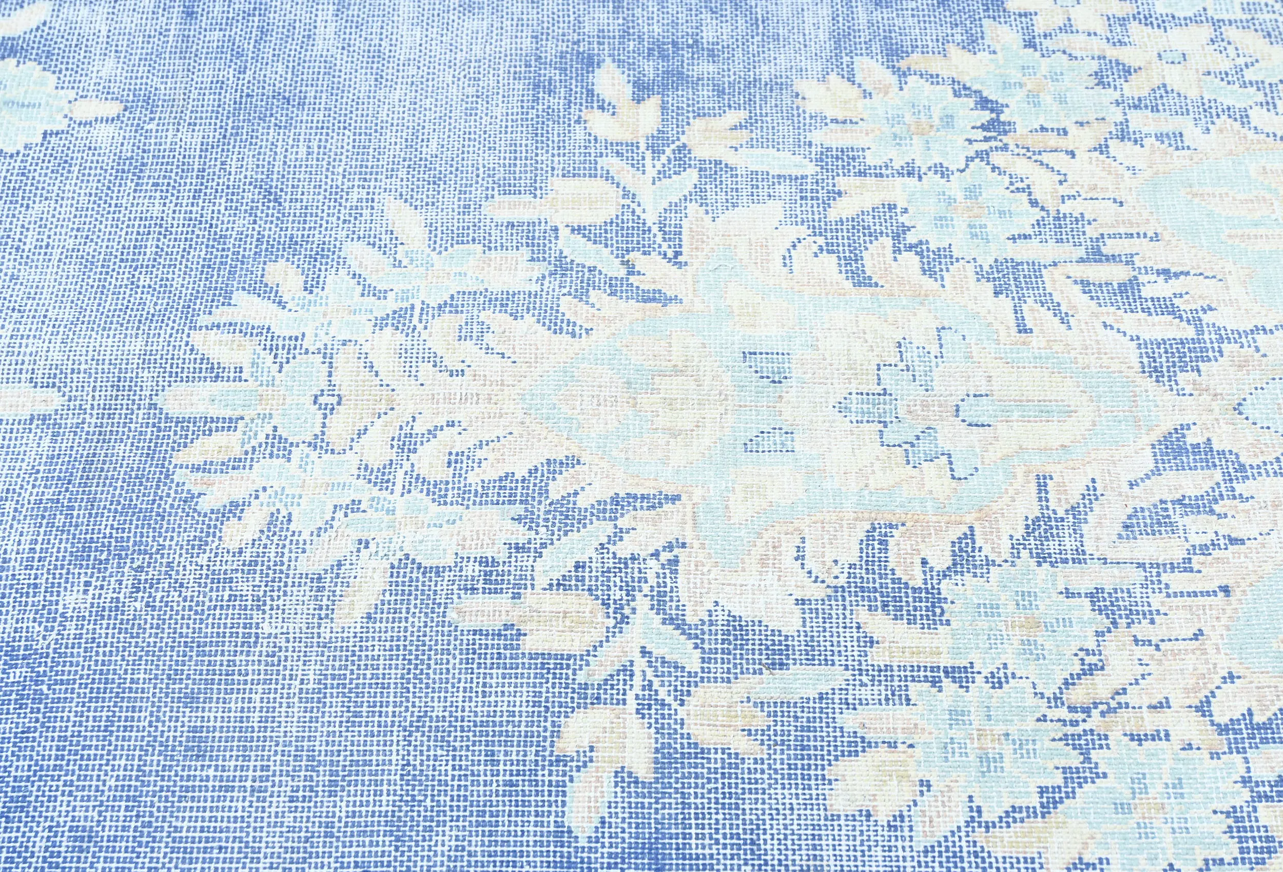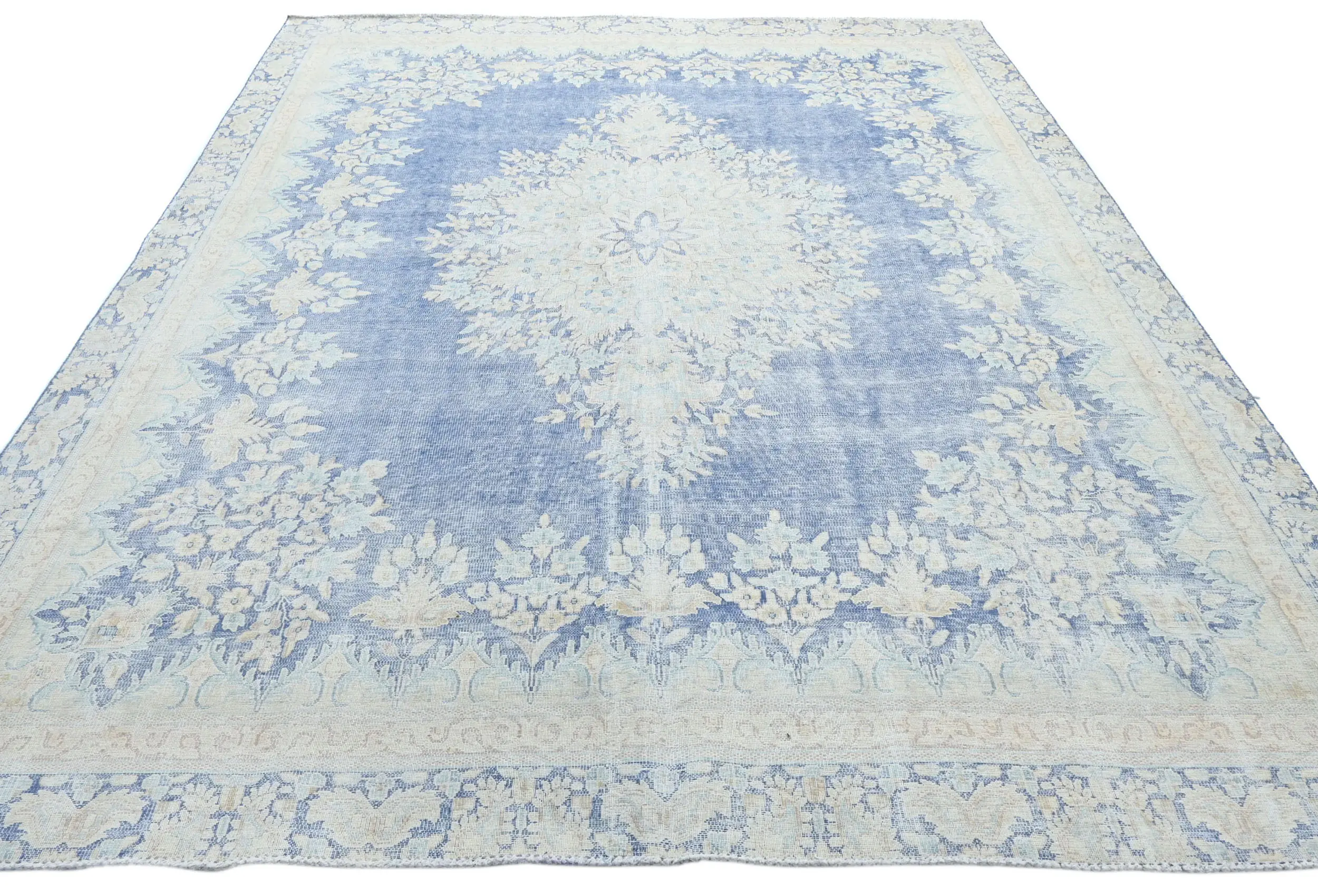 Antique Muted Blue Floral 8X11 Distressed Vintage Oriental Rug