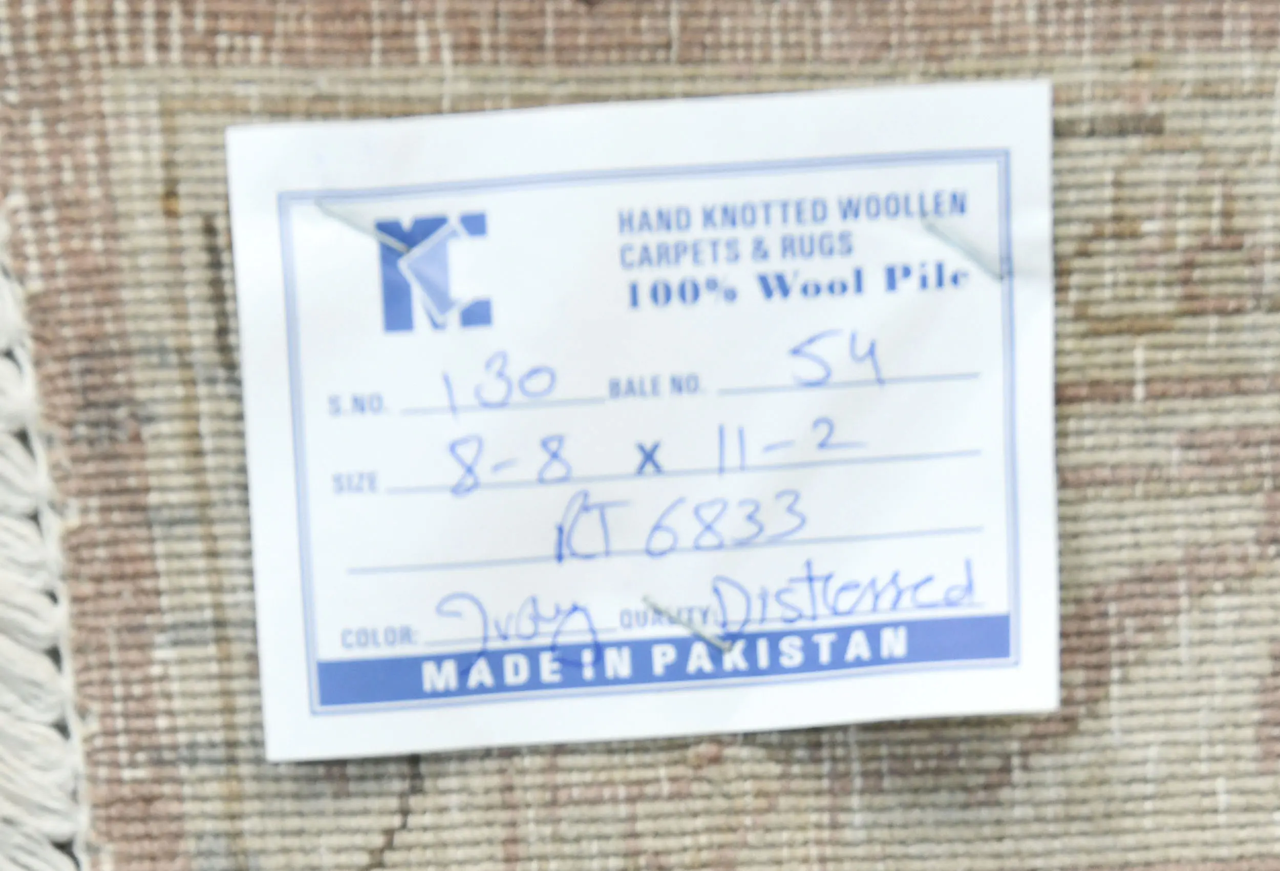 Antique Muted Brown Floral 8X11 Distressed Vintage Oriental Rug