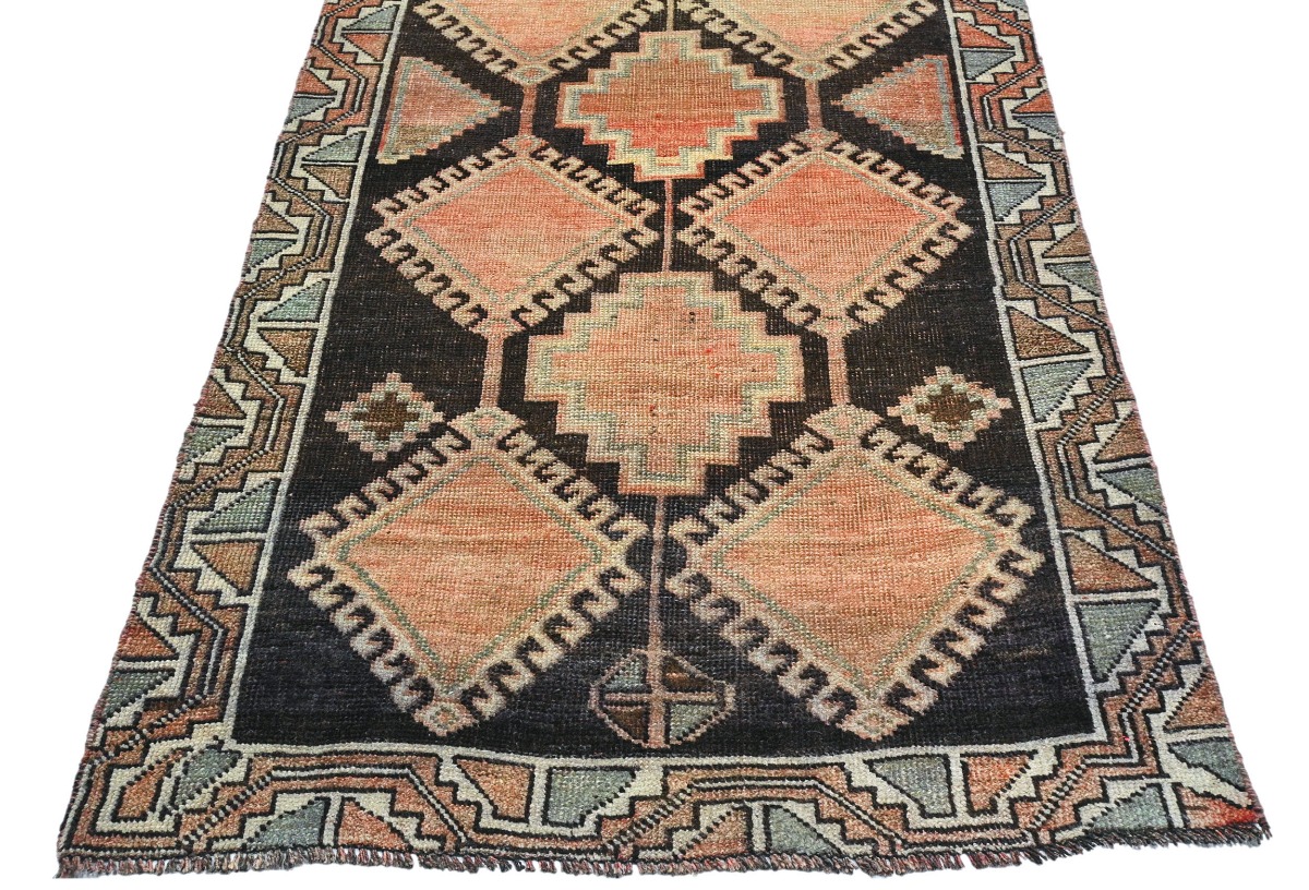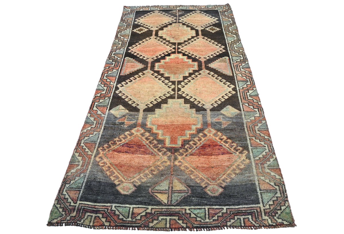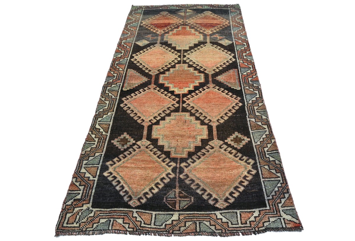 Antique Muted Brown Tribal 3'6X7'8 Distressed Vintage Oriental Runner Rug
