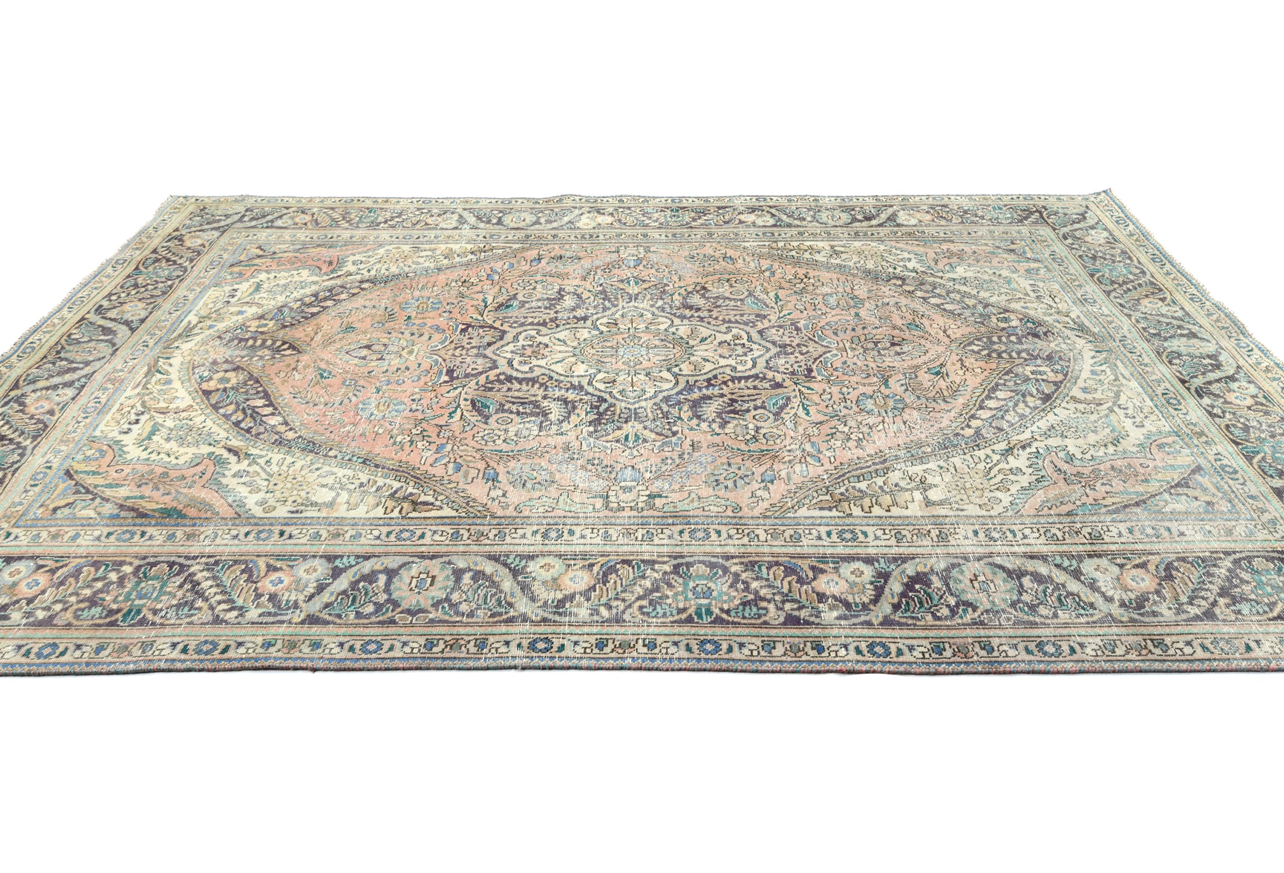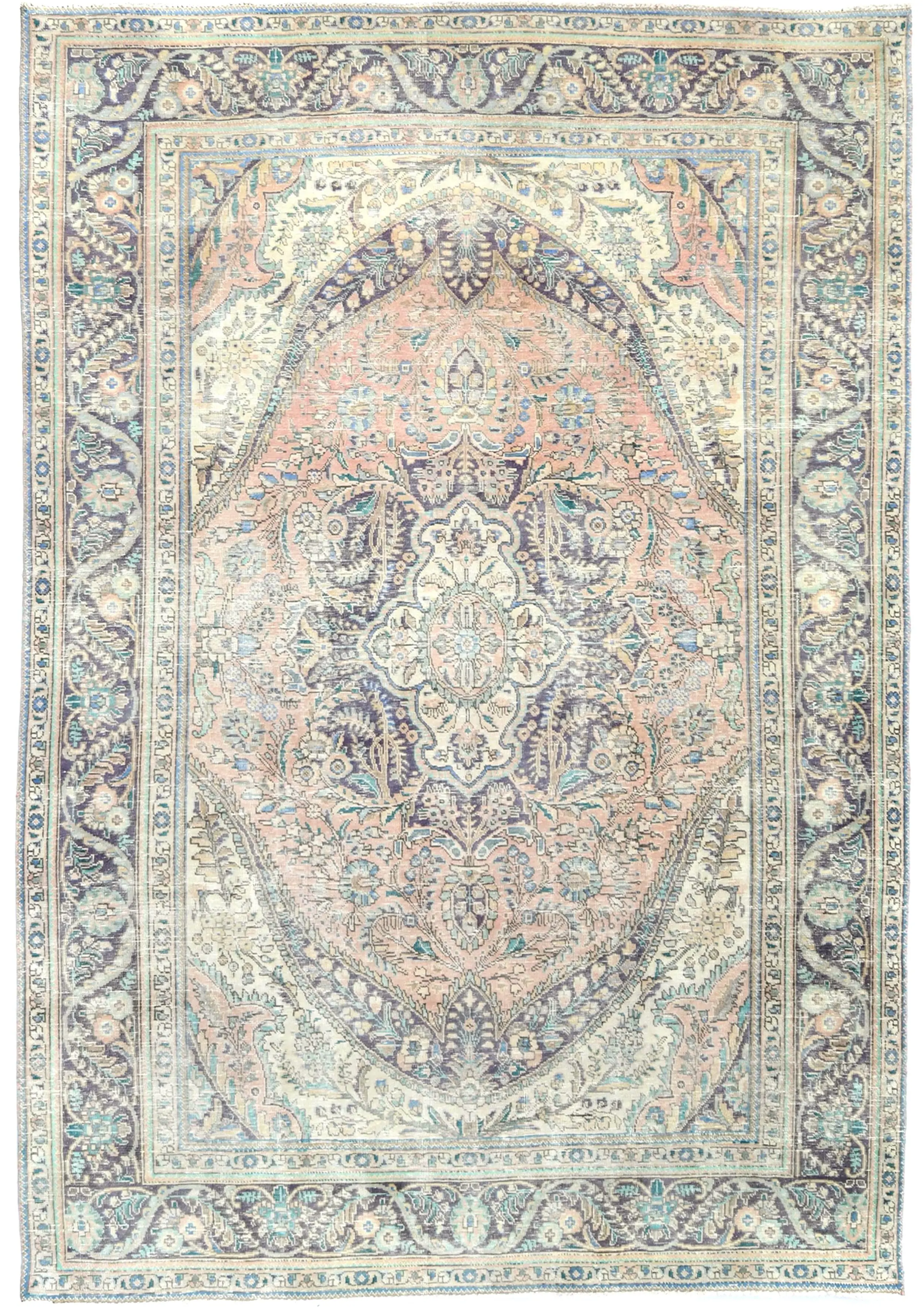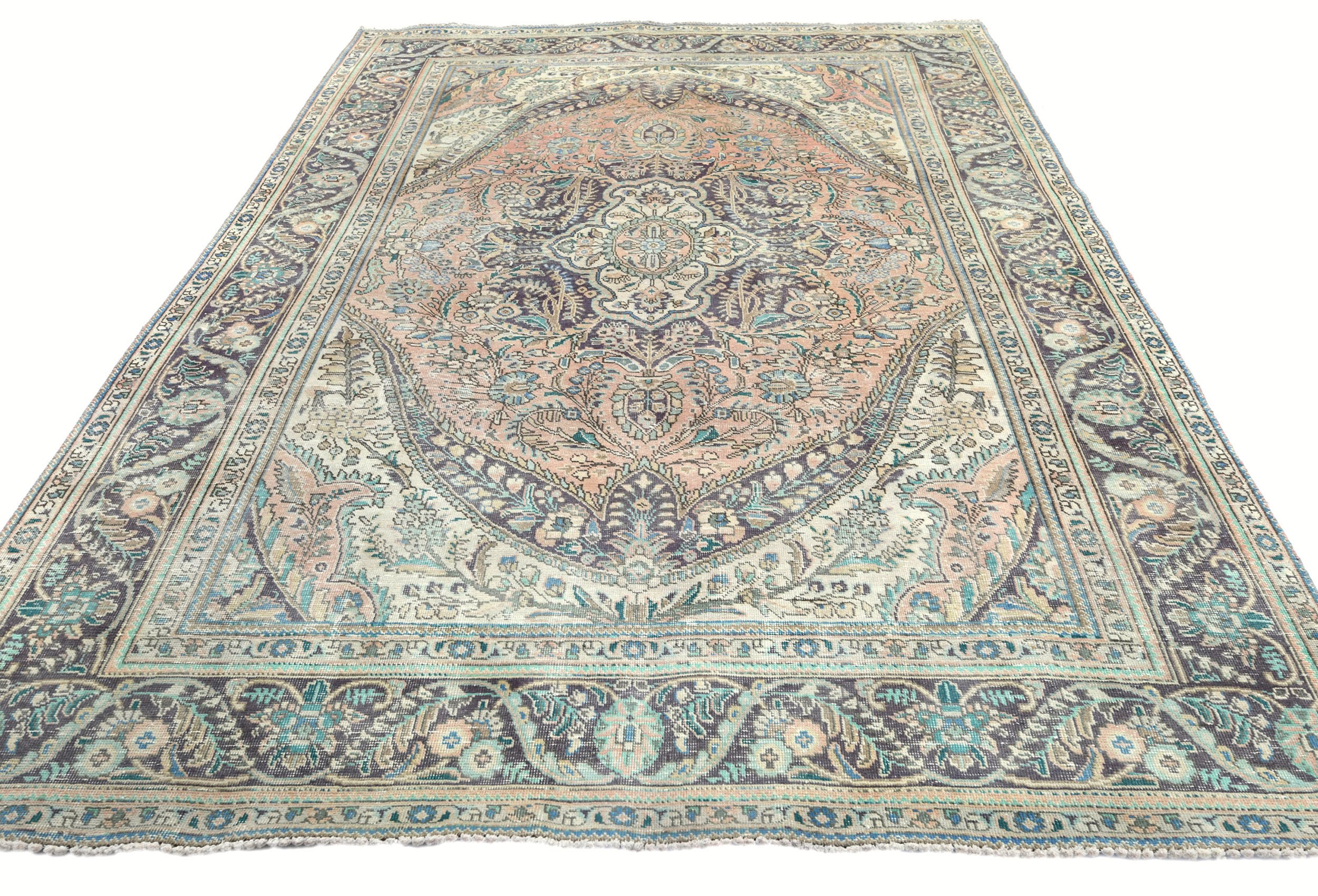 Antique Muted Classic Floral 6'7X9'4 Distressed Vintage Oriental Rug