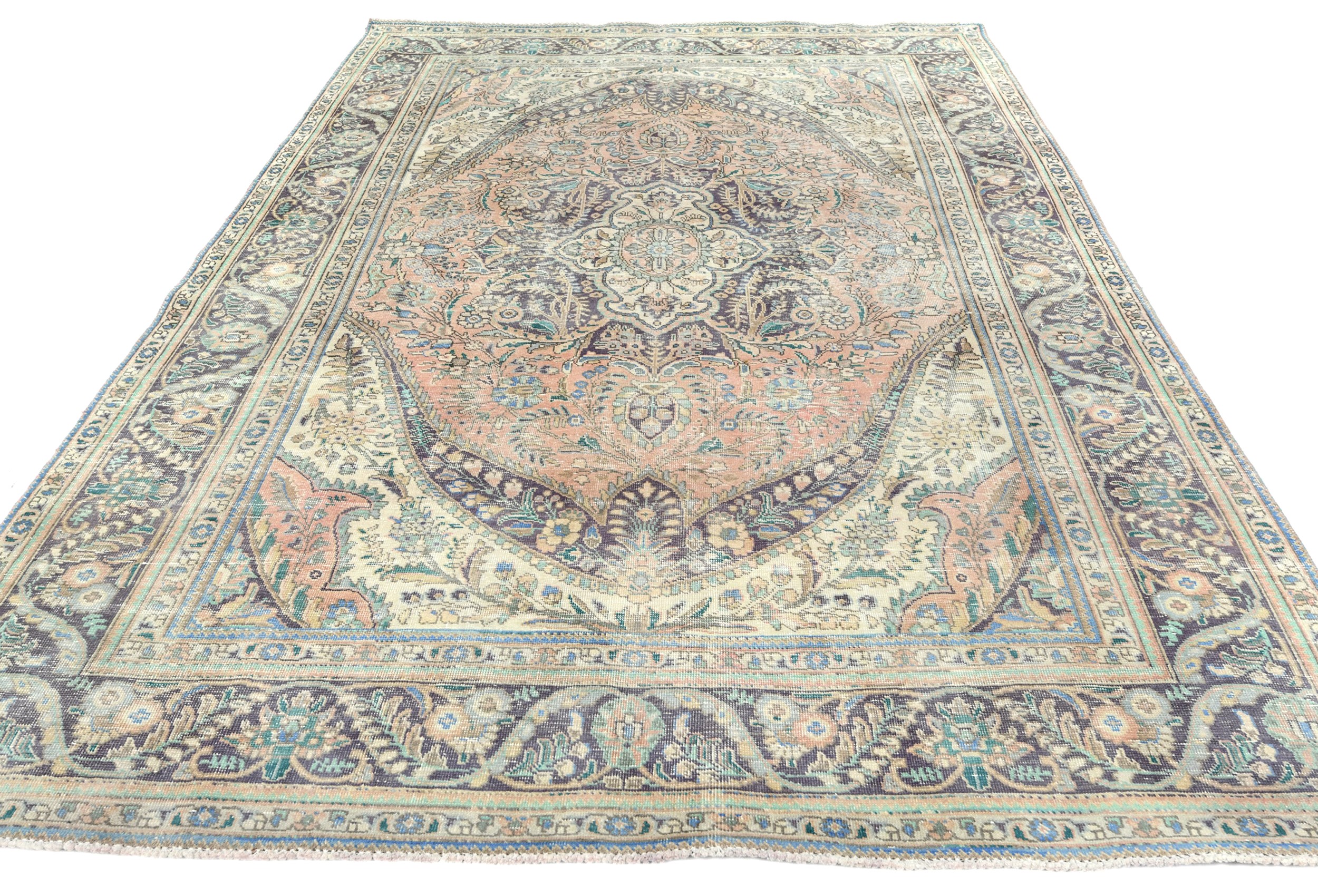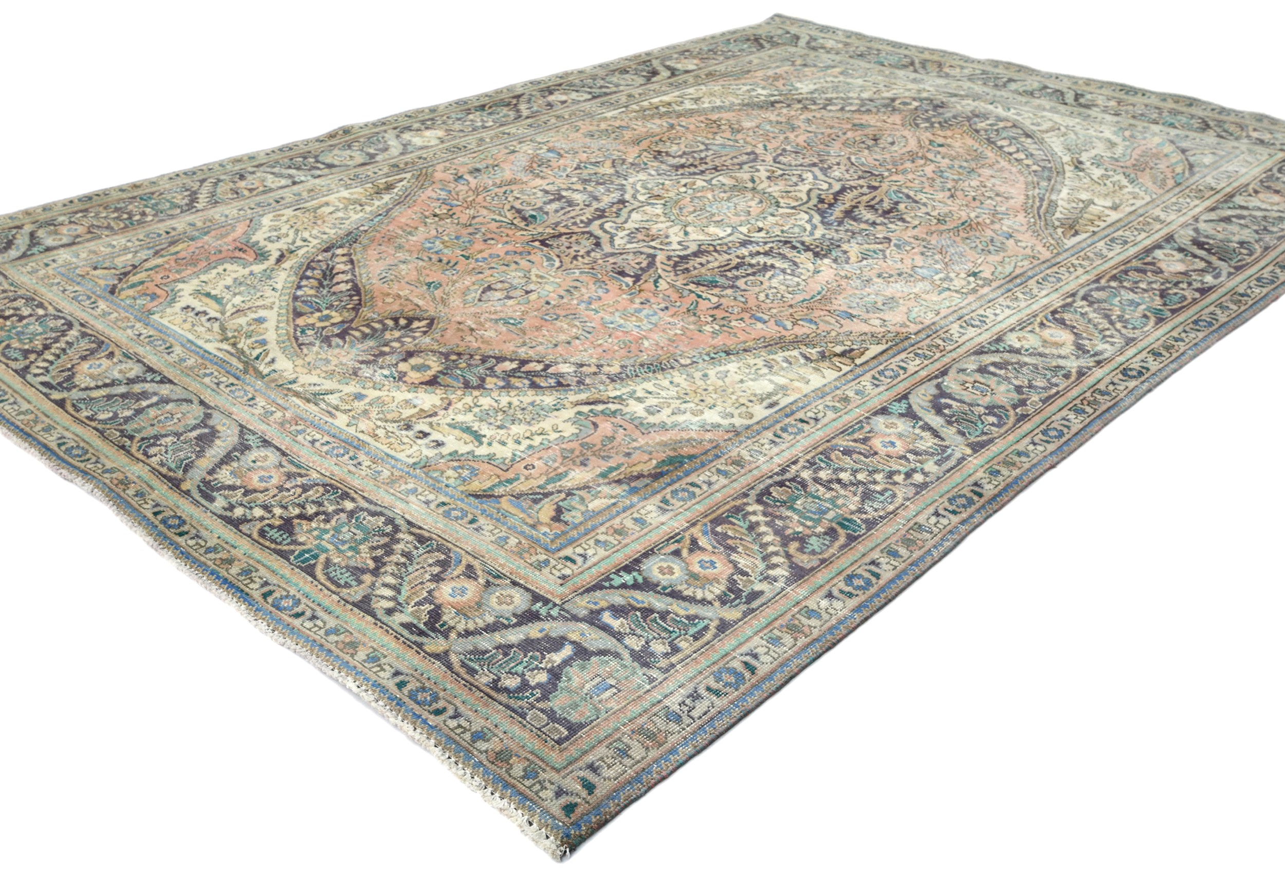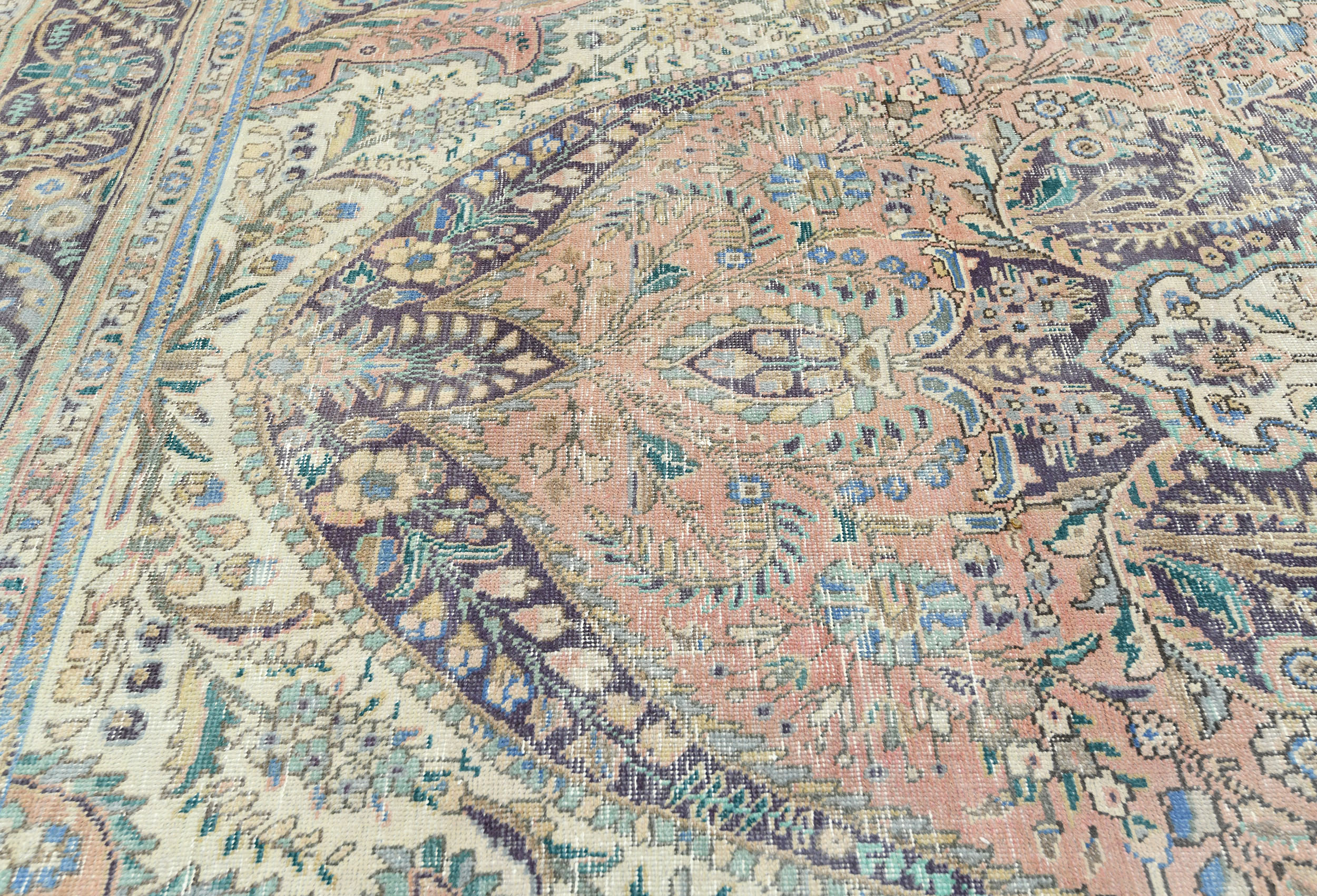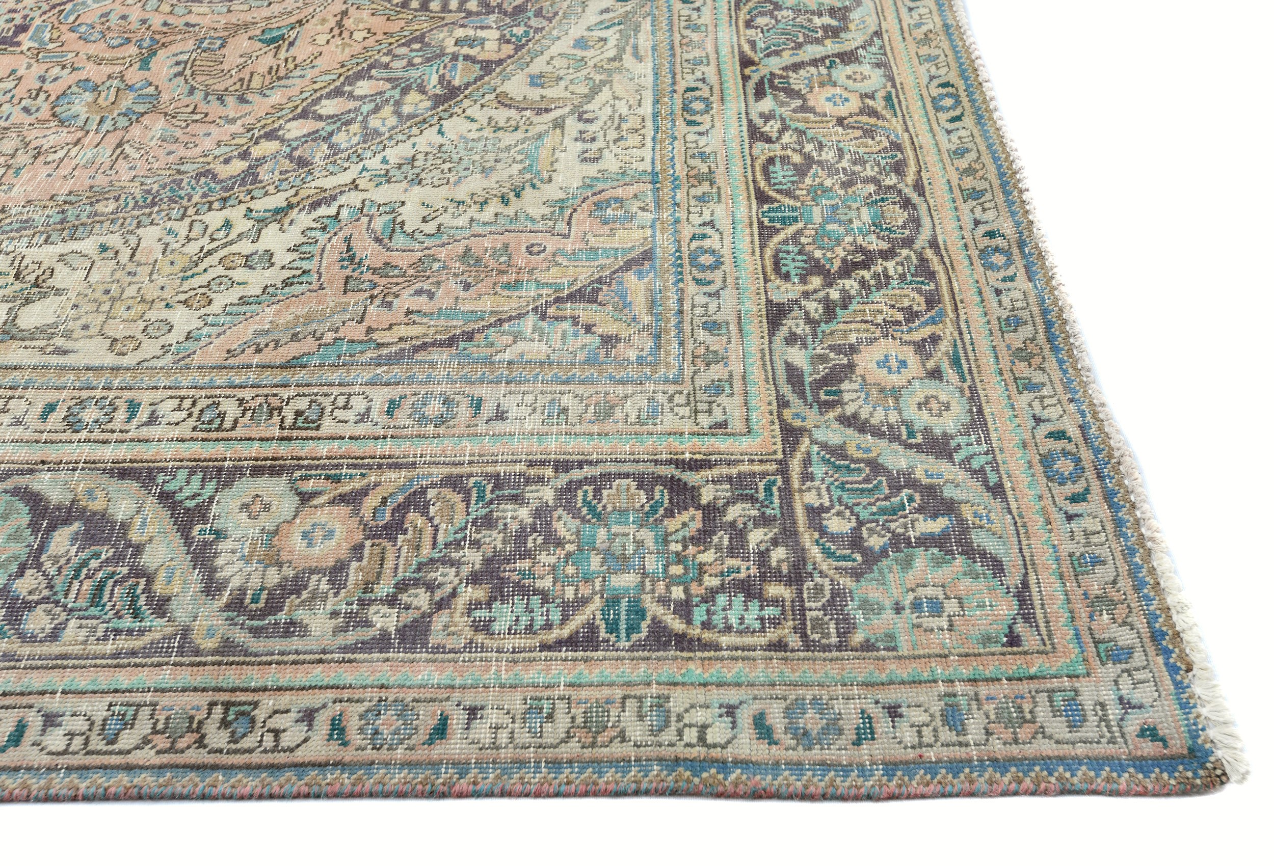 Antique Muted Classic Floral 6'7X9'4 Distressed Vintage Oriental Rug