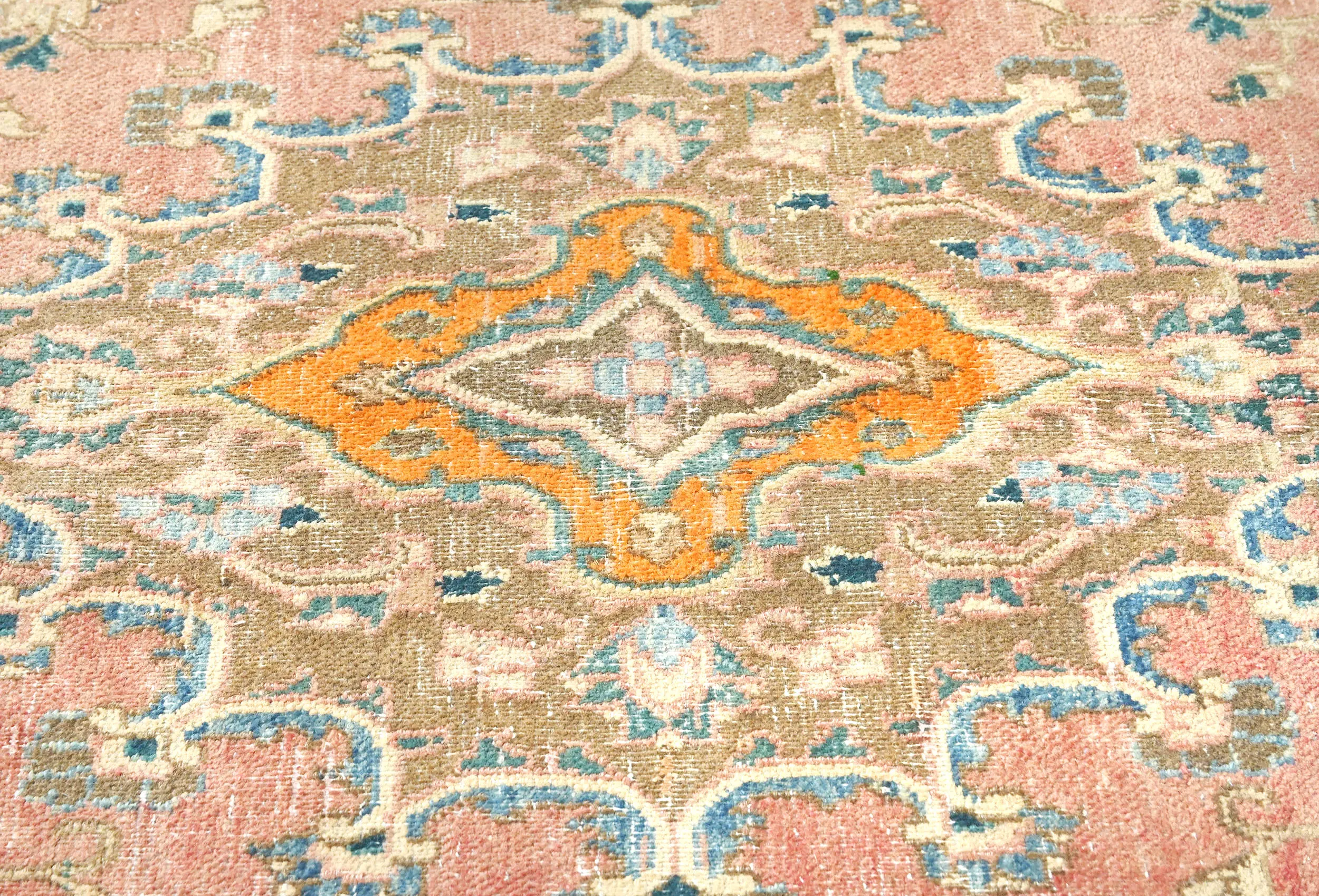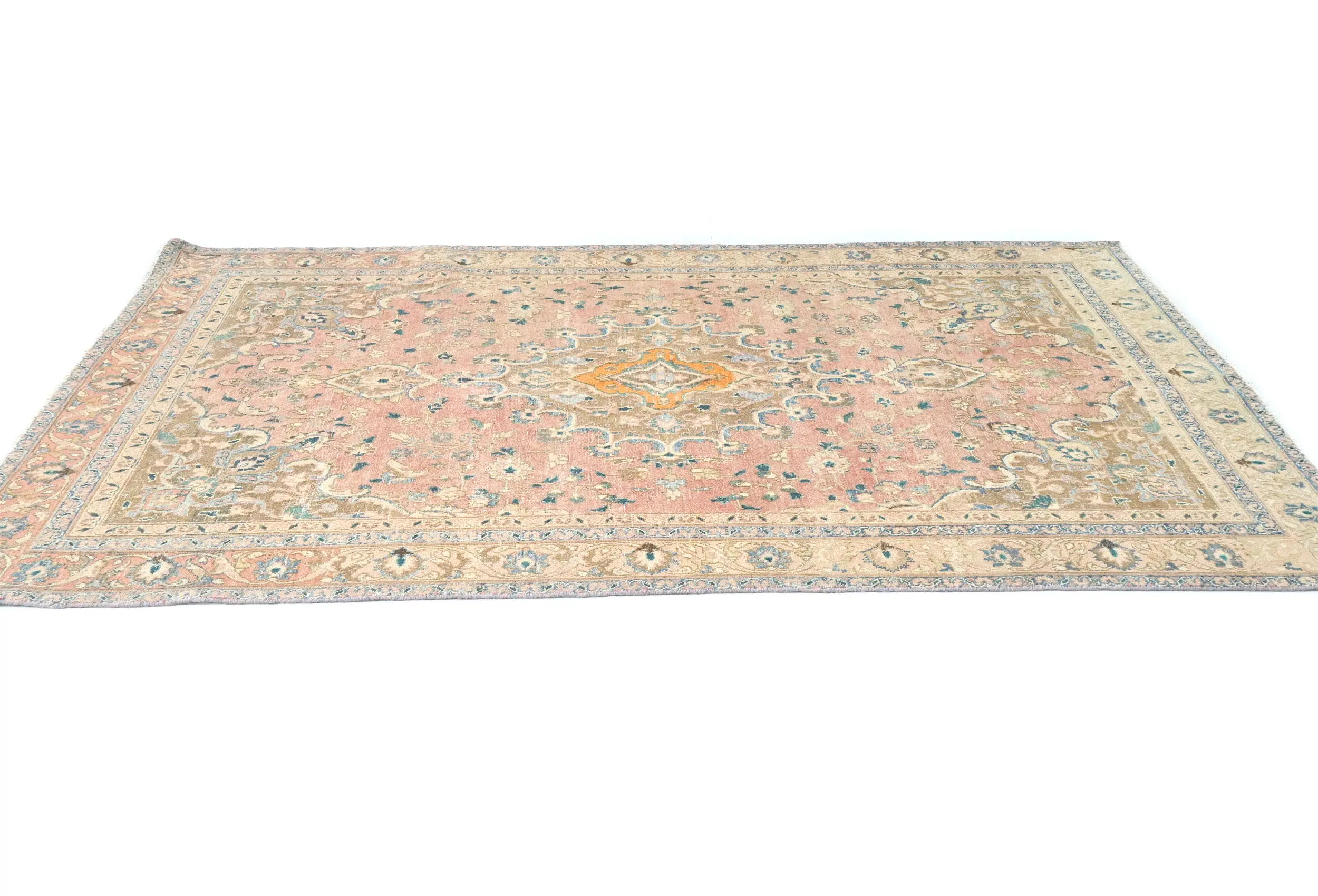 This authentic 5X8 muted coral red vintage Oriental rug was finely knotted by the hands of weavers influenced by a variety of amazing artistic designs, to recreate the aged look of the exceptional piece with a richness of color and embellished background field. What set this tribal Oriental area rug from the others are the material and dye used (wool pile and cotton foundation), knot count, antique designs, fantastic grades, and its regional historical connection: it has deep roots, from the story of the people who produced it to the meaning of the symbols and colors displayed across its canvas that have been praised for centuries. This home décor carpet will be completely cozy and inviting that never will go out of style! Also, this Oriental rug would be among your most valuable treasures, it is a great investment that increase in value over time, and it will last a lifetime because was woven with high-quality, all-natural wool; it won’t rip, tear, or shed. Eco-friendly, opulent yet affordable; this Persian rug will give you an extra pop of character to help define your home environment with luxury and warmth that will capture the eyes and attention of your audience (homeowners, designers, decorators, family and friends). RT-6913