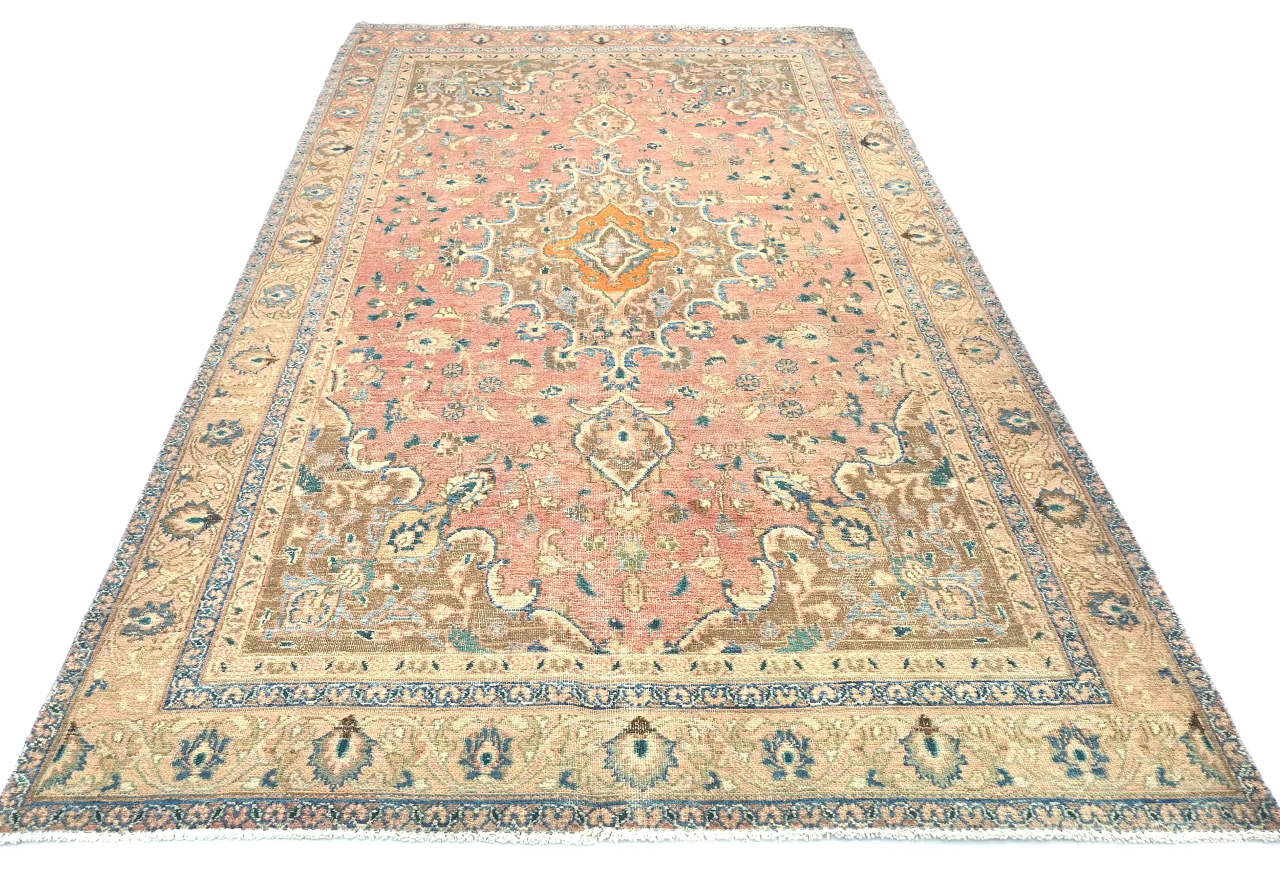 - Hand-knotted antique rug from Vintage Oriental weaving tradition