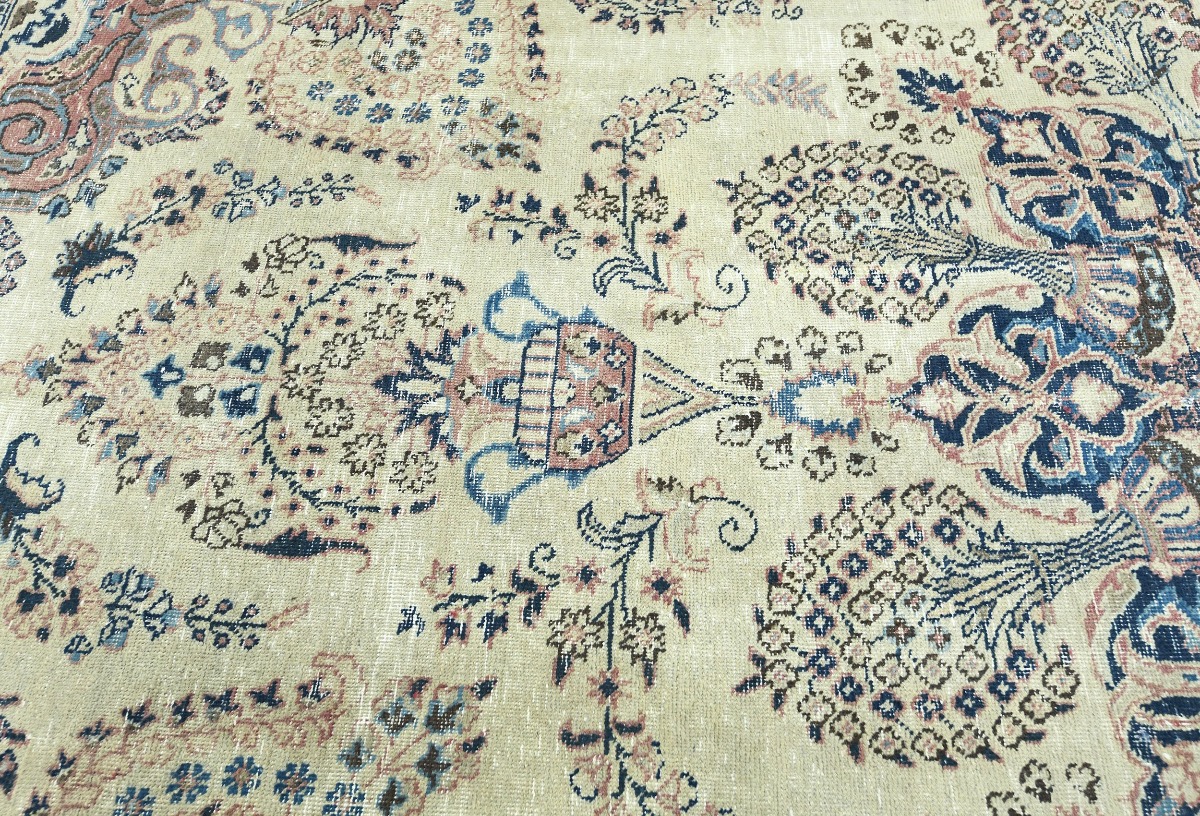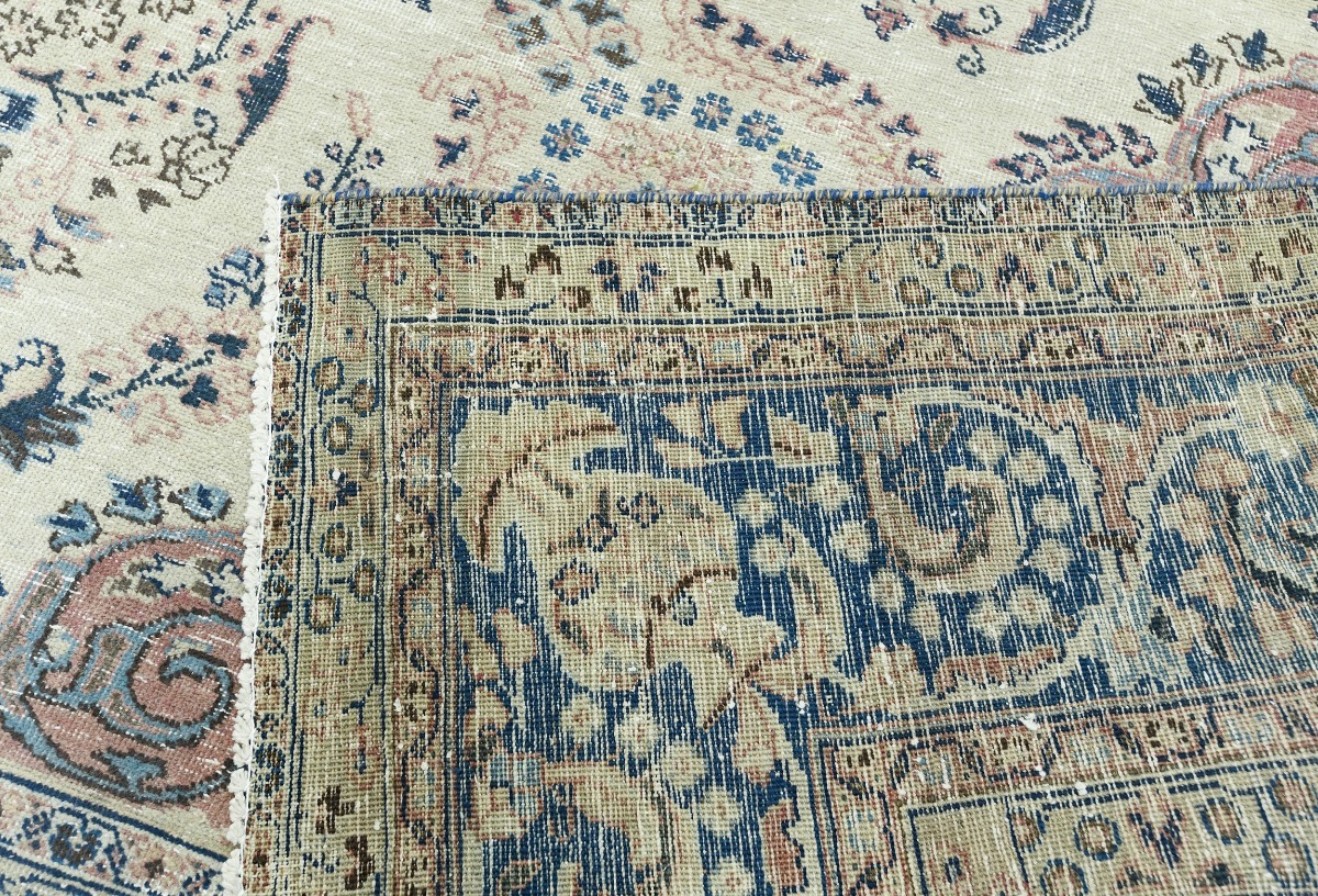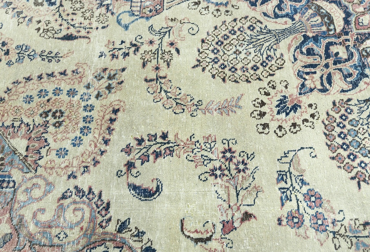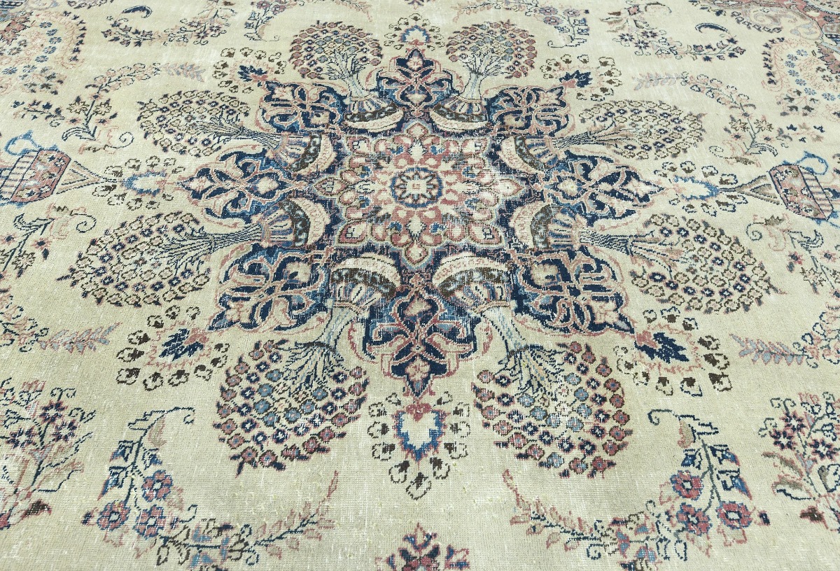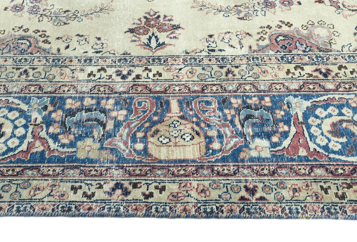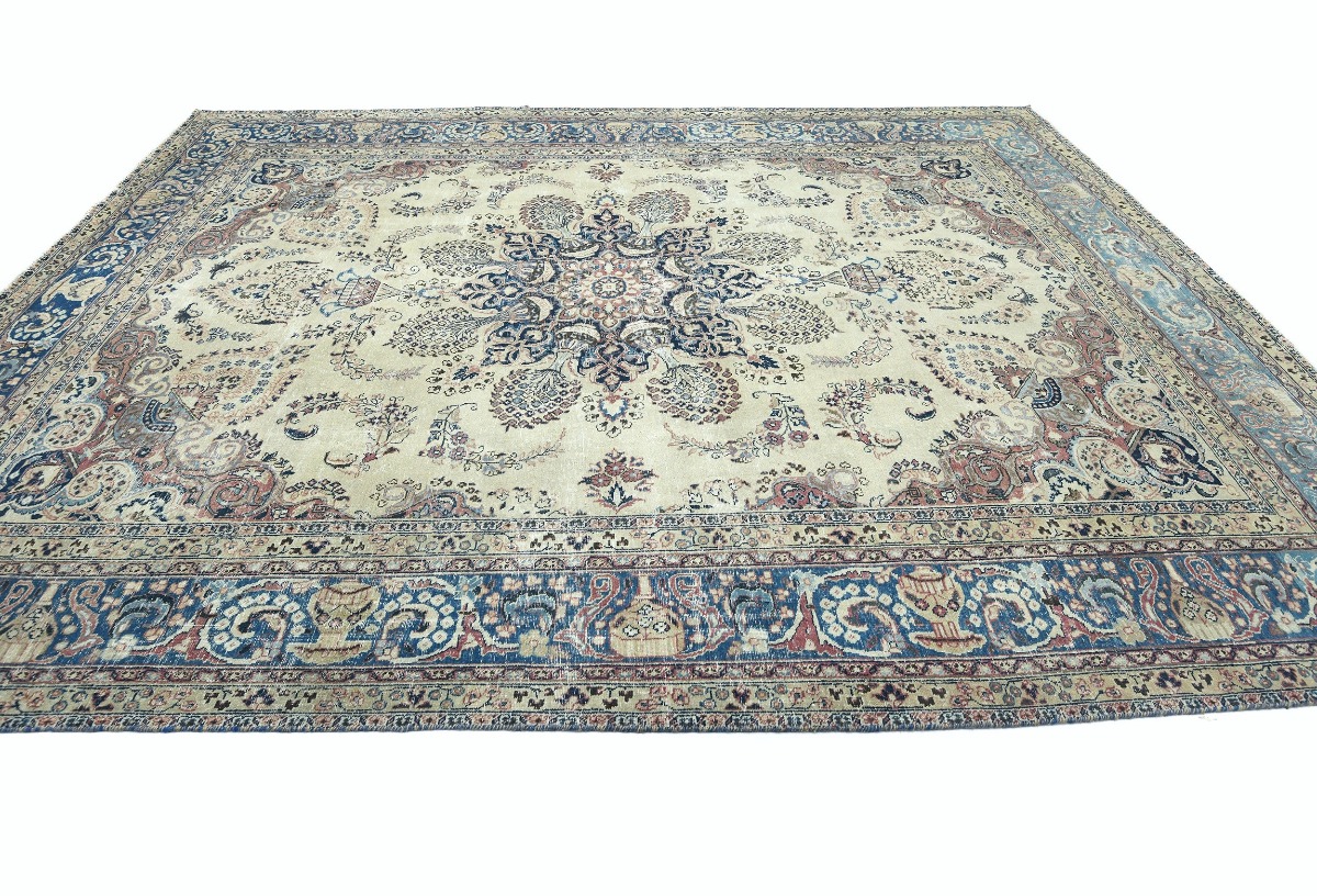 Antique Muted Cream Floral 10X13 Distressed Vintage Oriental Rug