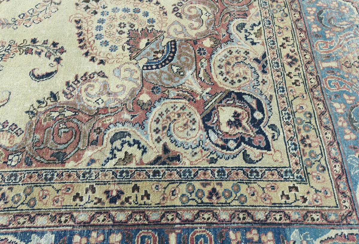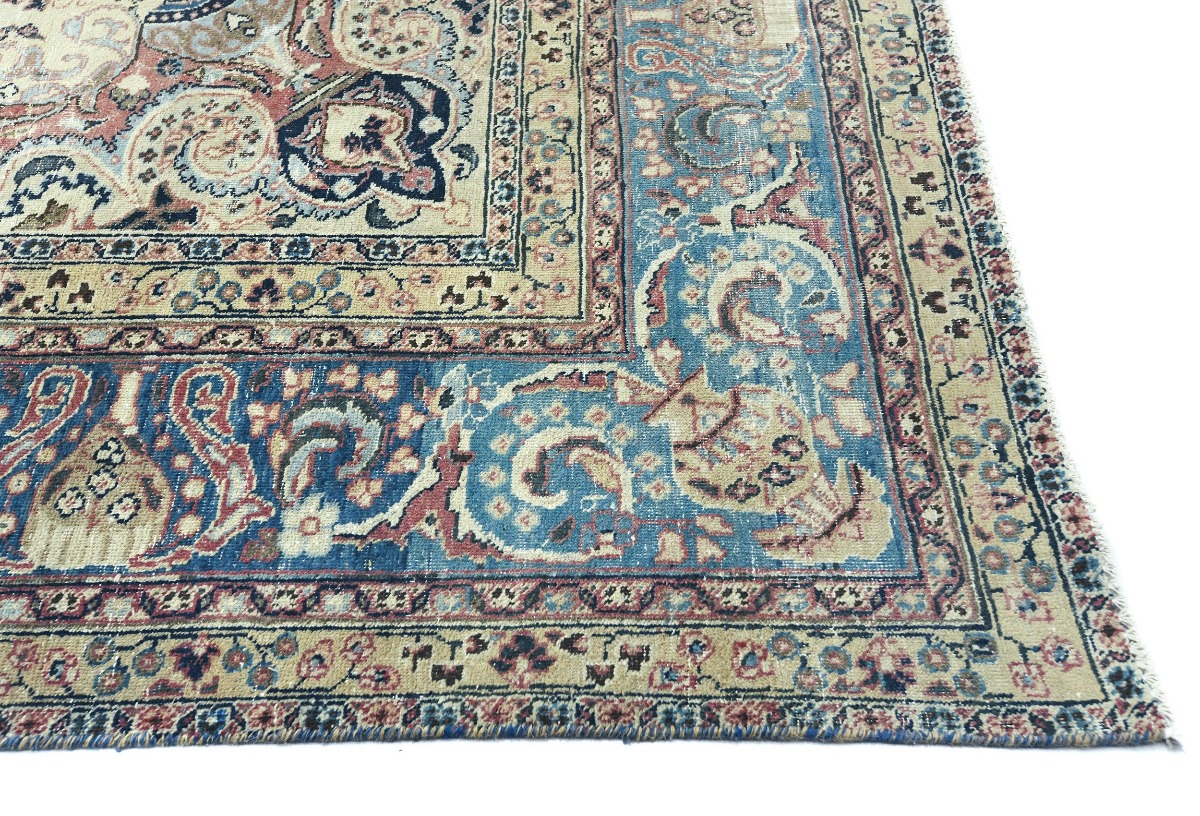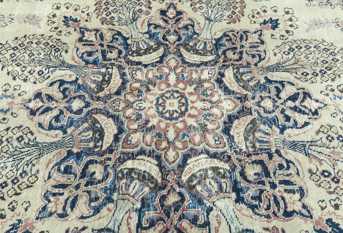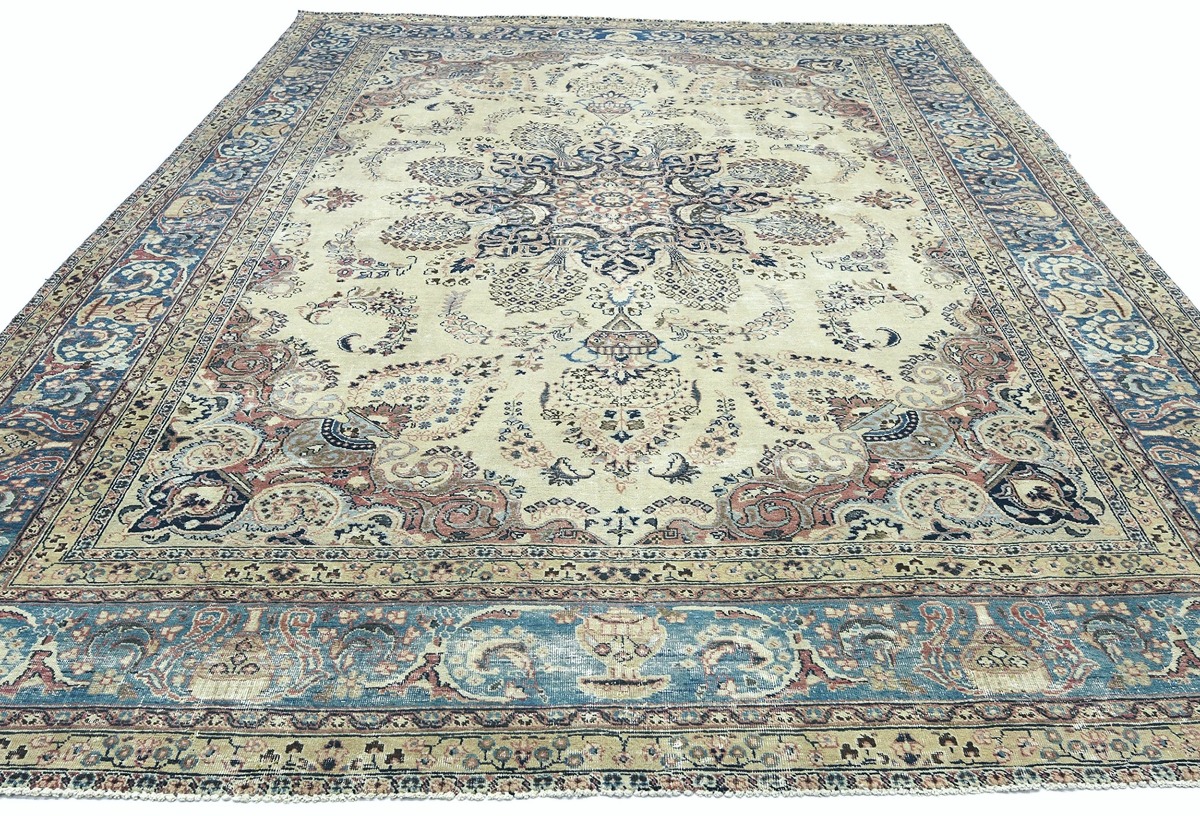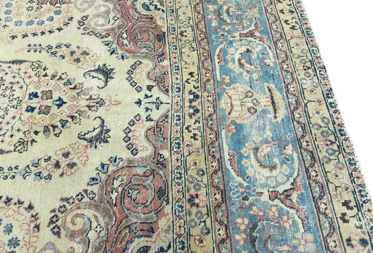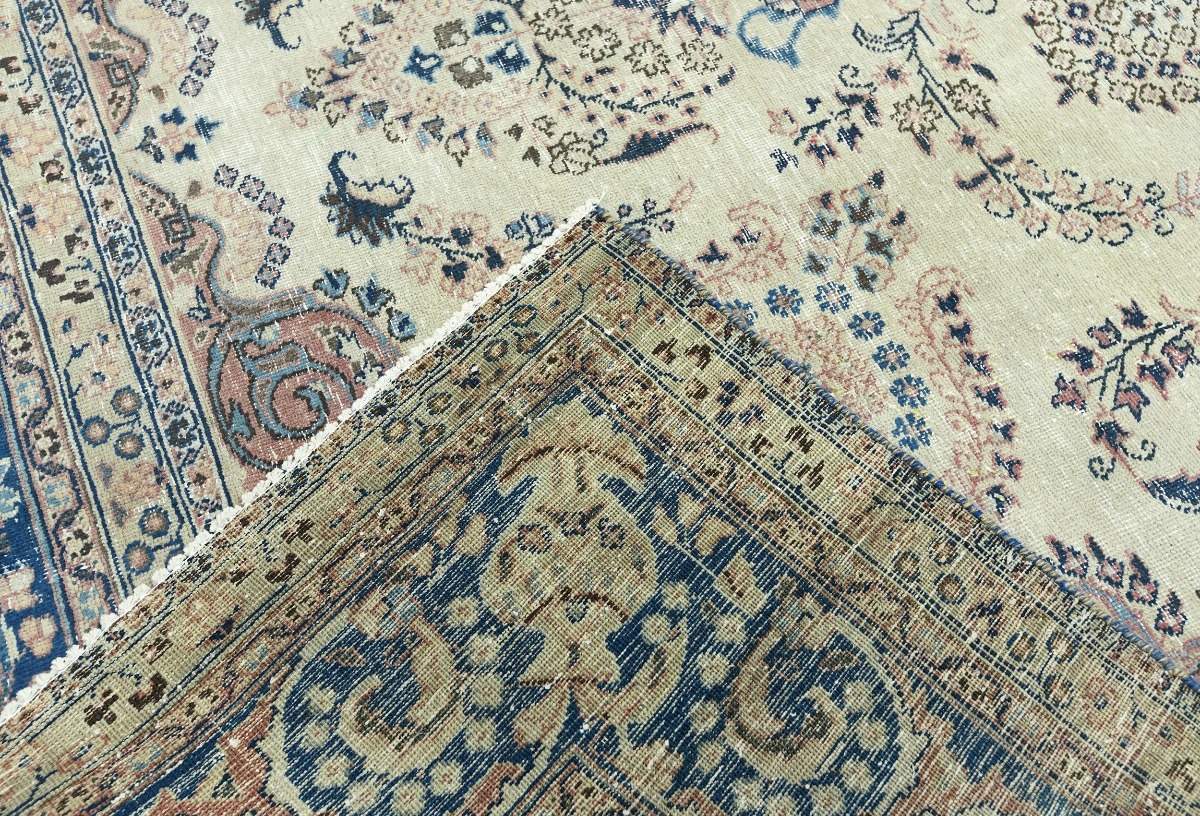 Antique Muted Cream Floral 10X13 Distressed Vintage Oriental Rug