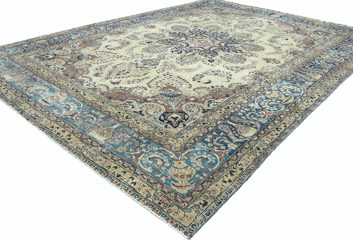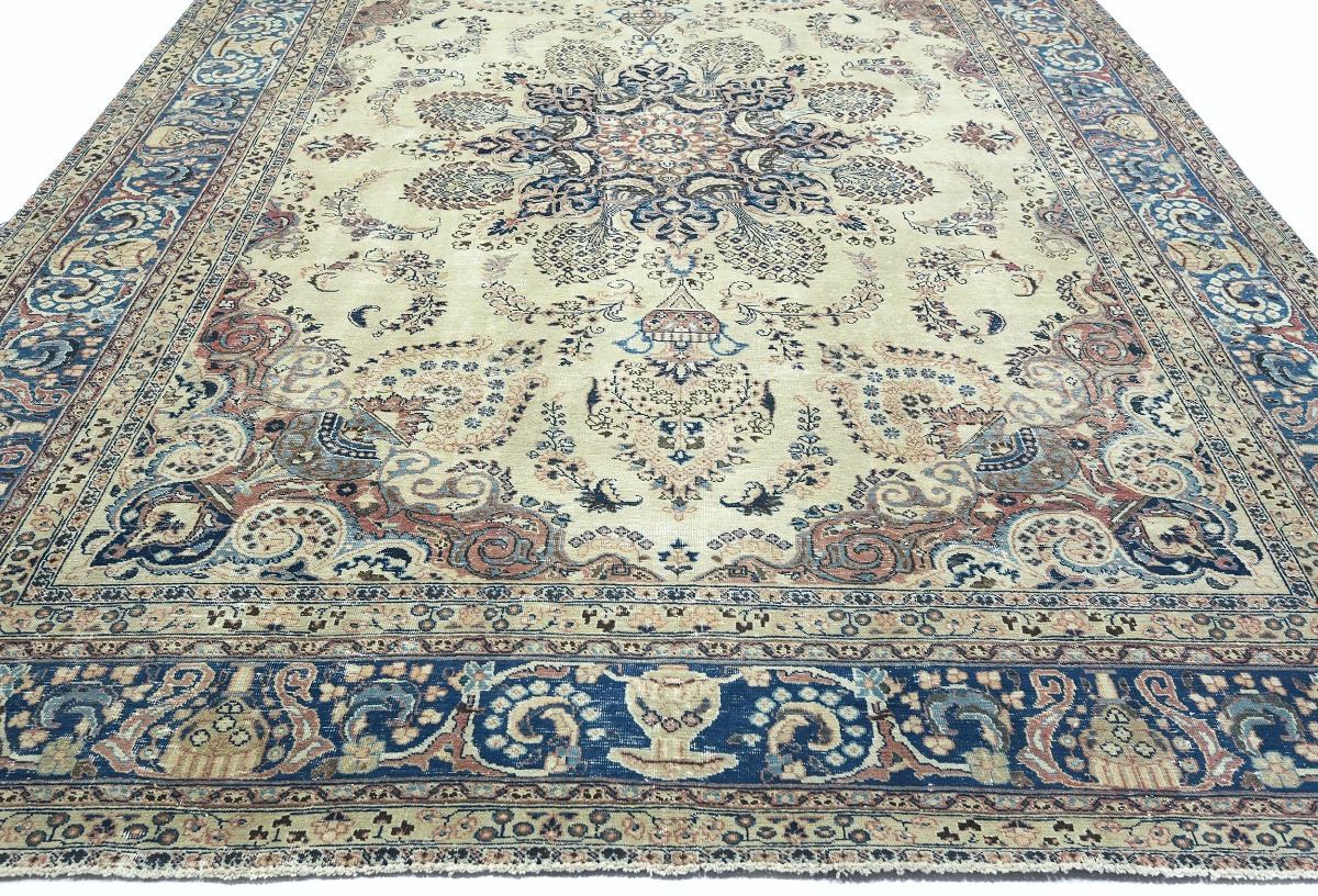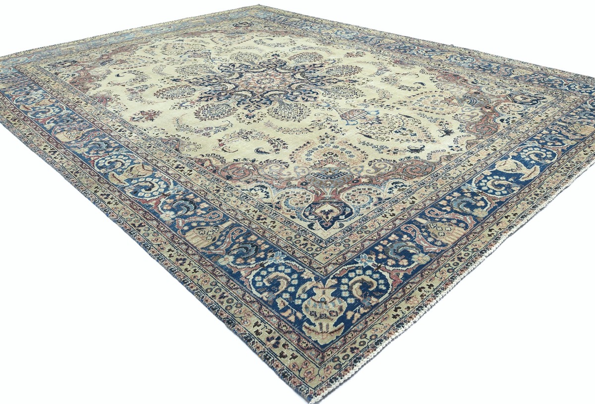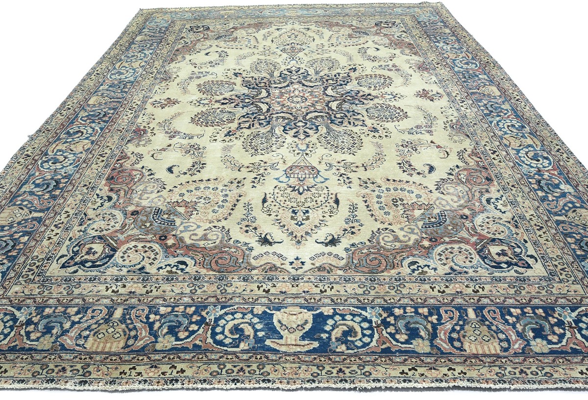This authentic 10X13 cream new Oriental rug was crafted by the hands of skilled weavers enthused by a variety of lovely artistic designs, to recreate the aged look of the unique piece with a richness of color and beautifully elaborated background field. What set this vintage style Oriental area rug from the others are the material and dye used (wool pile and cotton foundation), knot count, ancient designs, fantastic grades, and its regional historical connection: it has deep roots, from the story of the people who produced it to the meaning of the symbols and colors displayed across its canvas that have been praised for centuries. This Indian home décor carpet will be completely cozy and inviting that never will go out of style! Also, this Oriental rug would be among your most valuable treasures, it is a great investment that increase in value over time, and it will last for generations because was woven with high-quality, all-natural wool. Environmentally friendly, opulent yet affordable; this rug will give you a thorough amount of character to help define your living space with sophistication and warmth that will capture the eyes and attention of your audience (homeowners, designers, decorators, family and friends). RT-5025