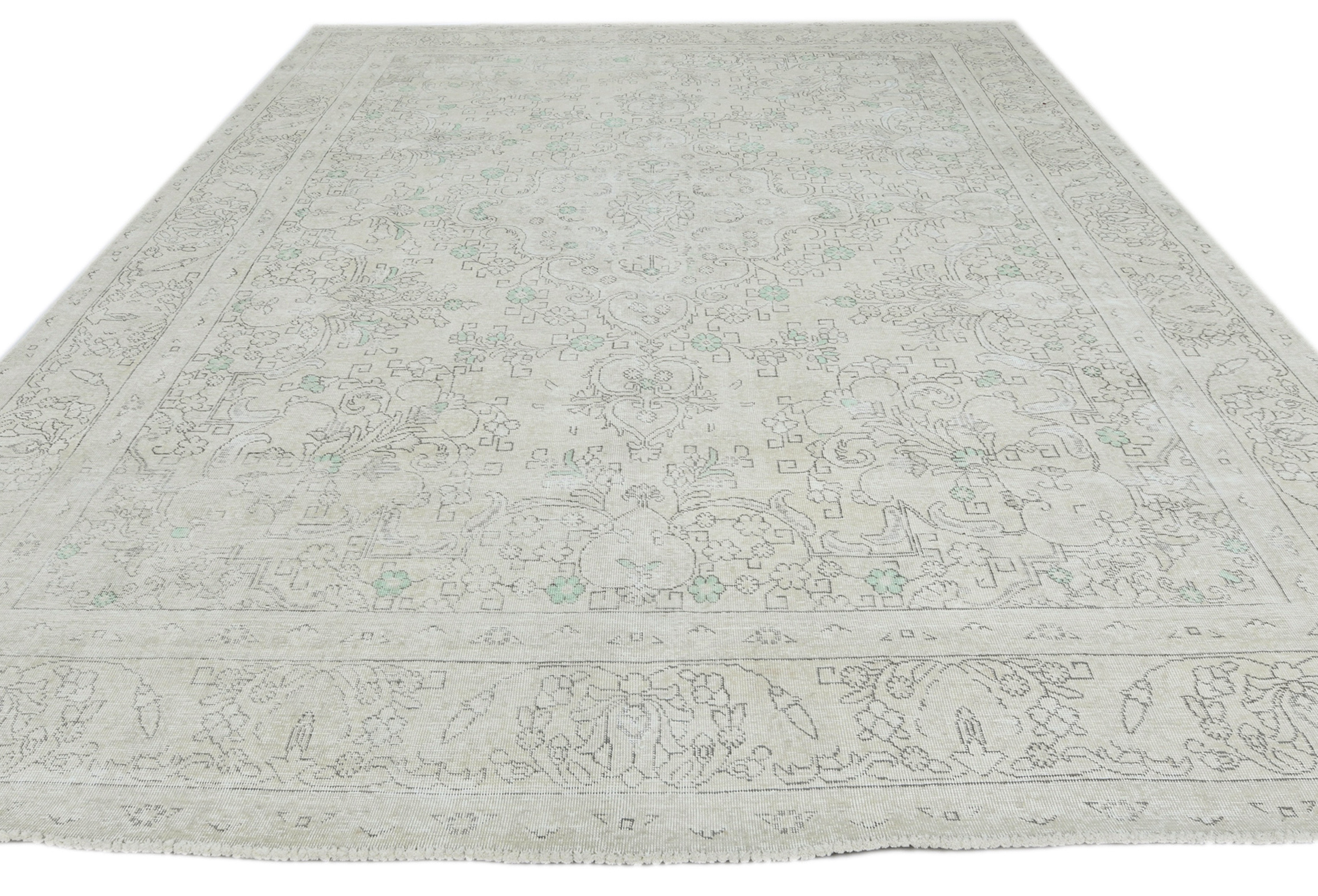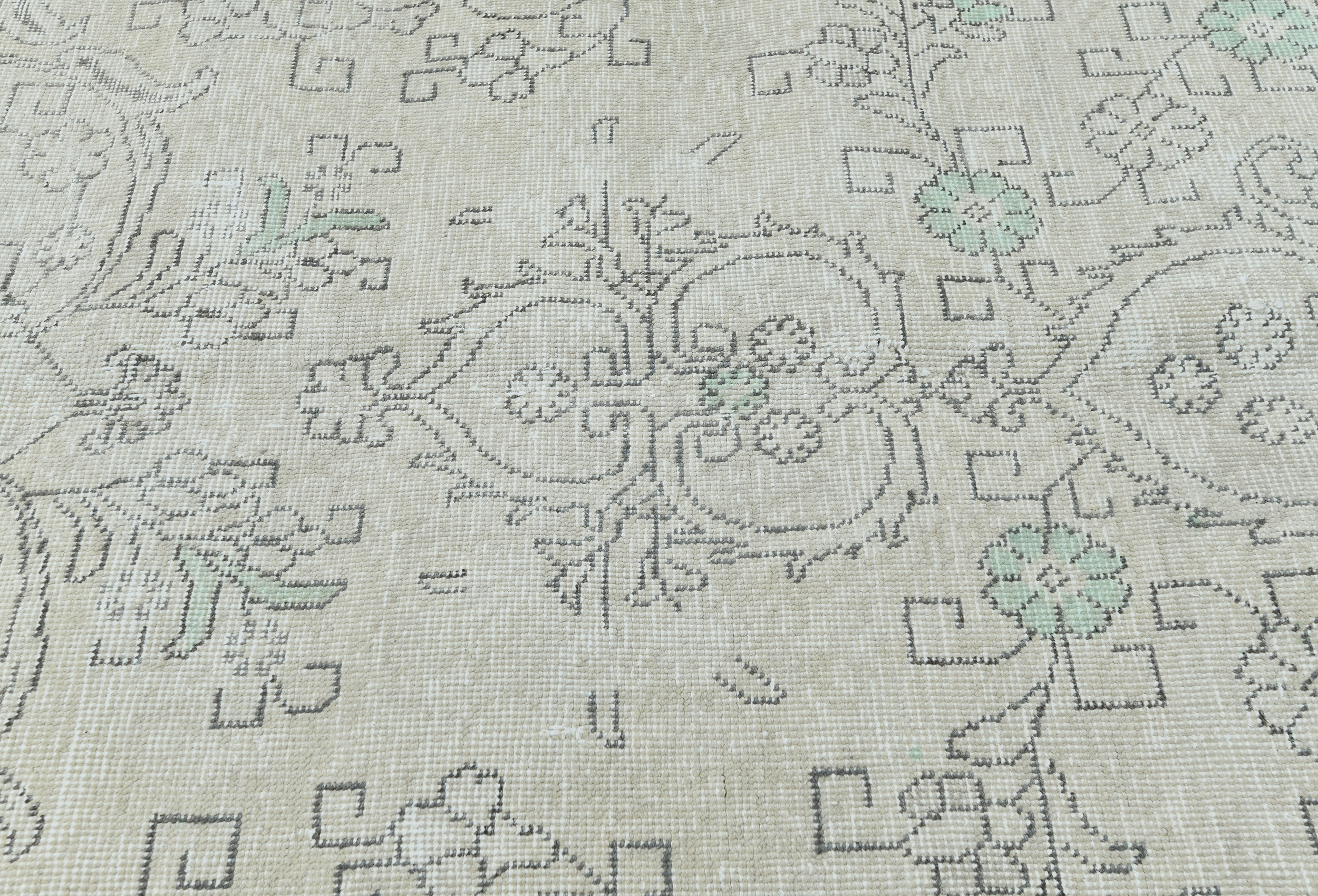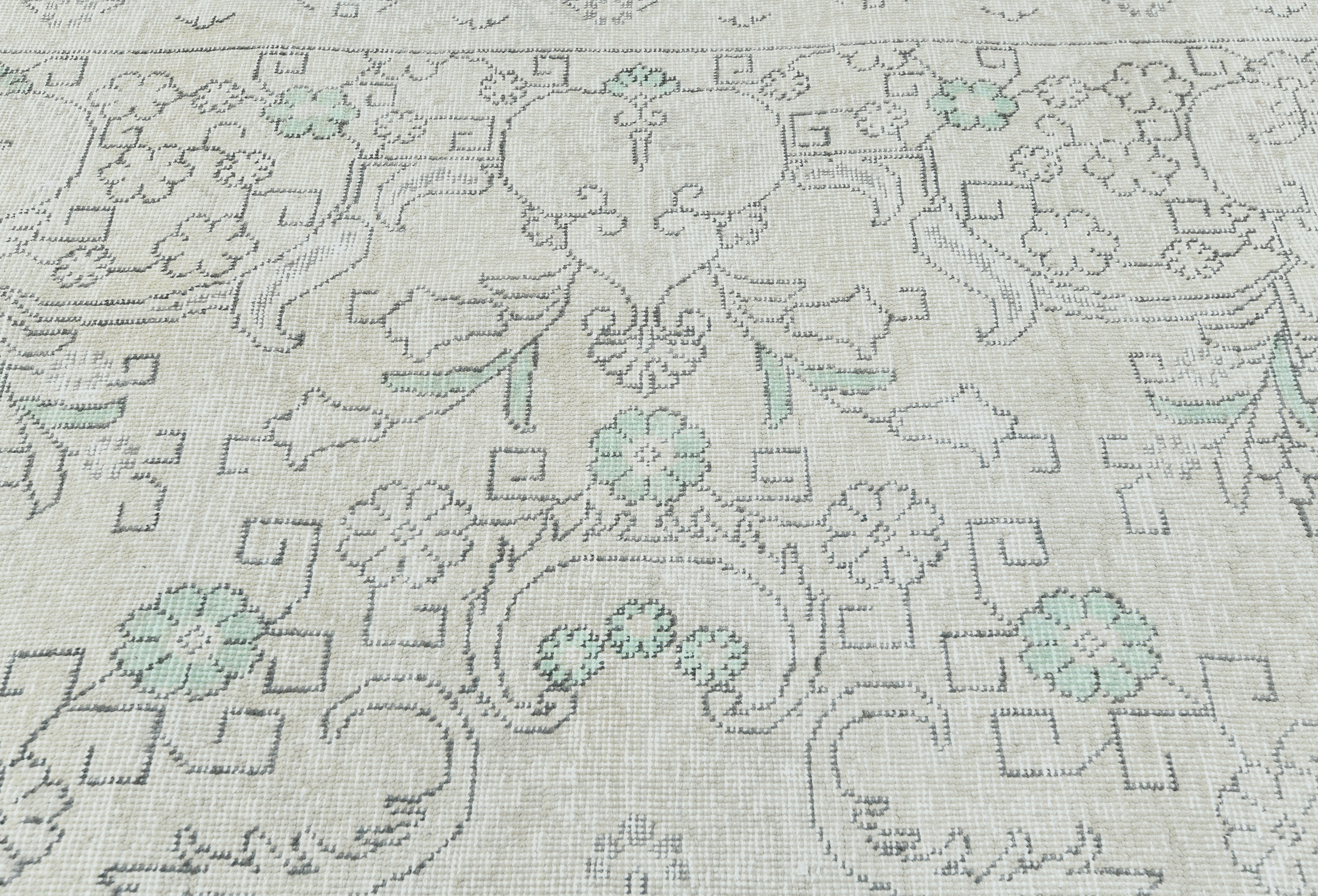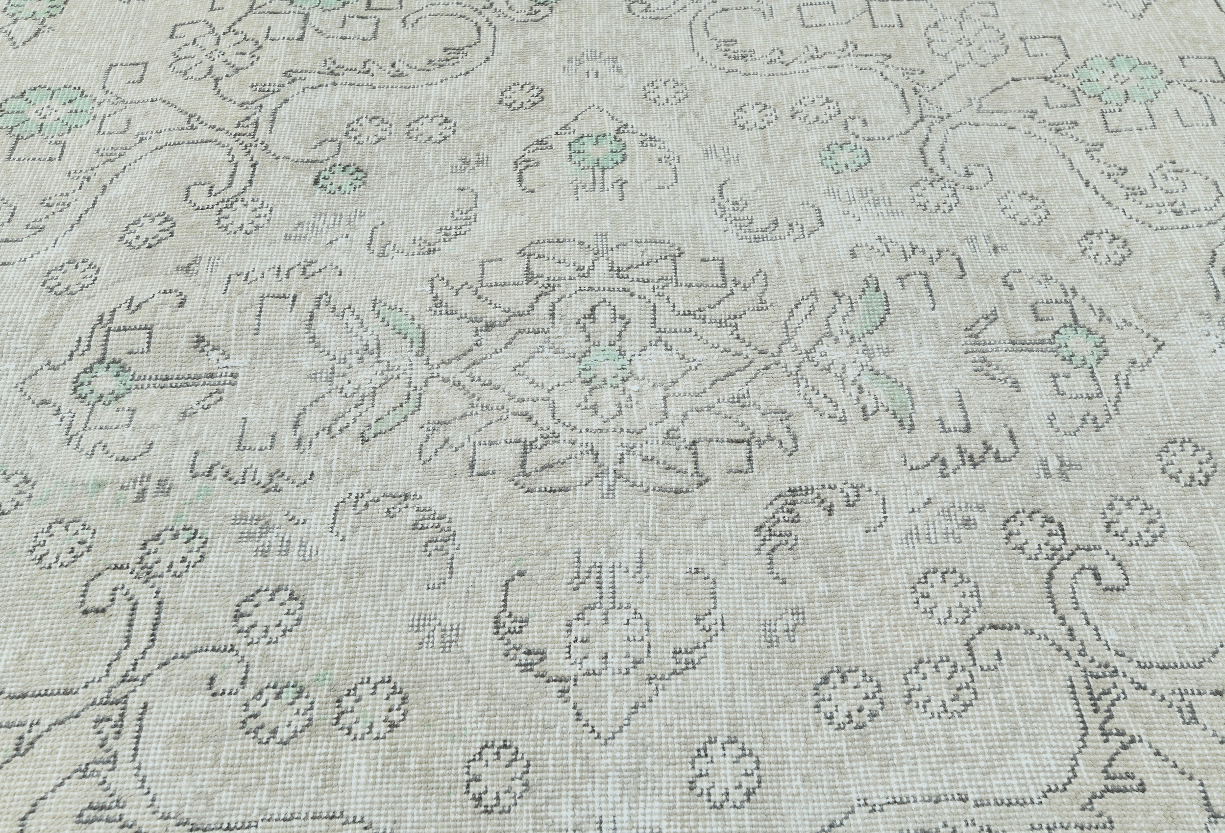 Antique Muted Cream Floral 10X13 Distressed Vintage Oriental Rug
