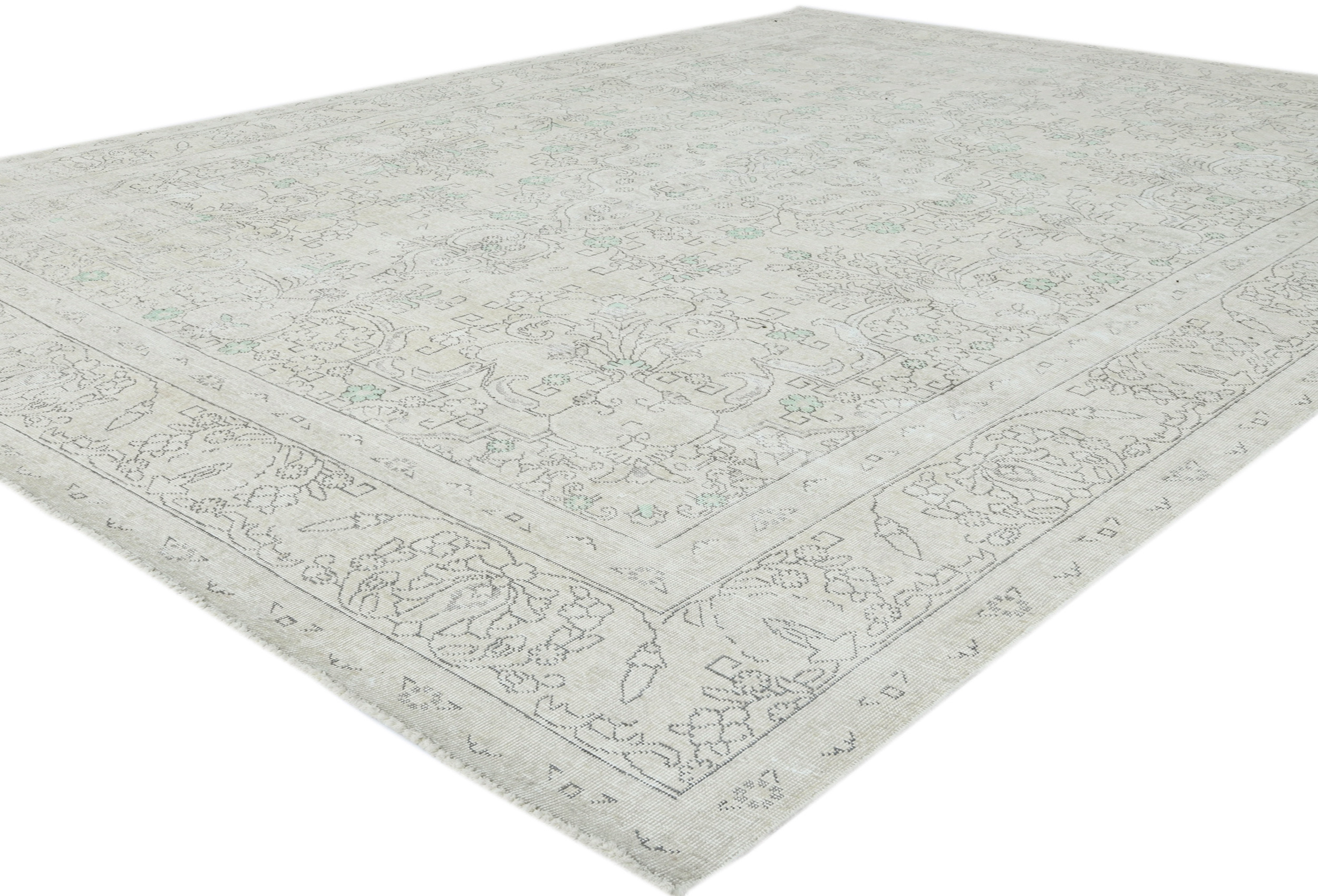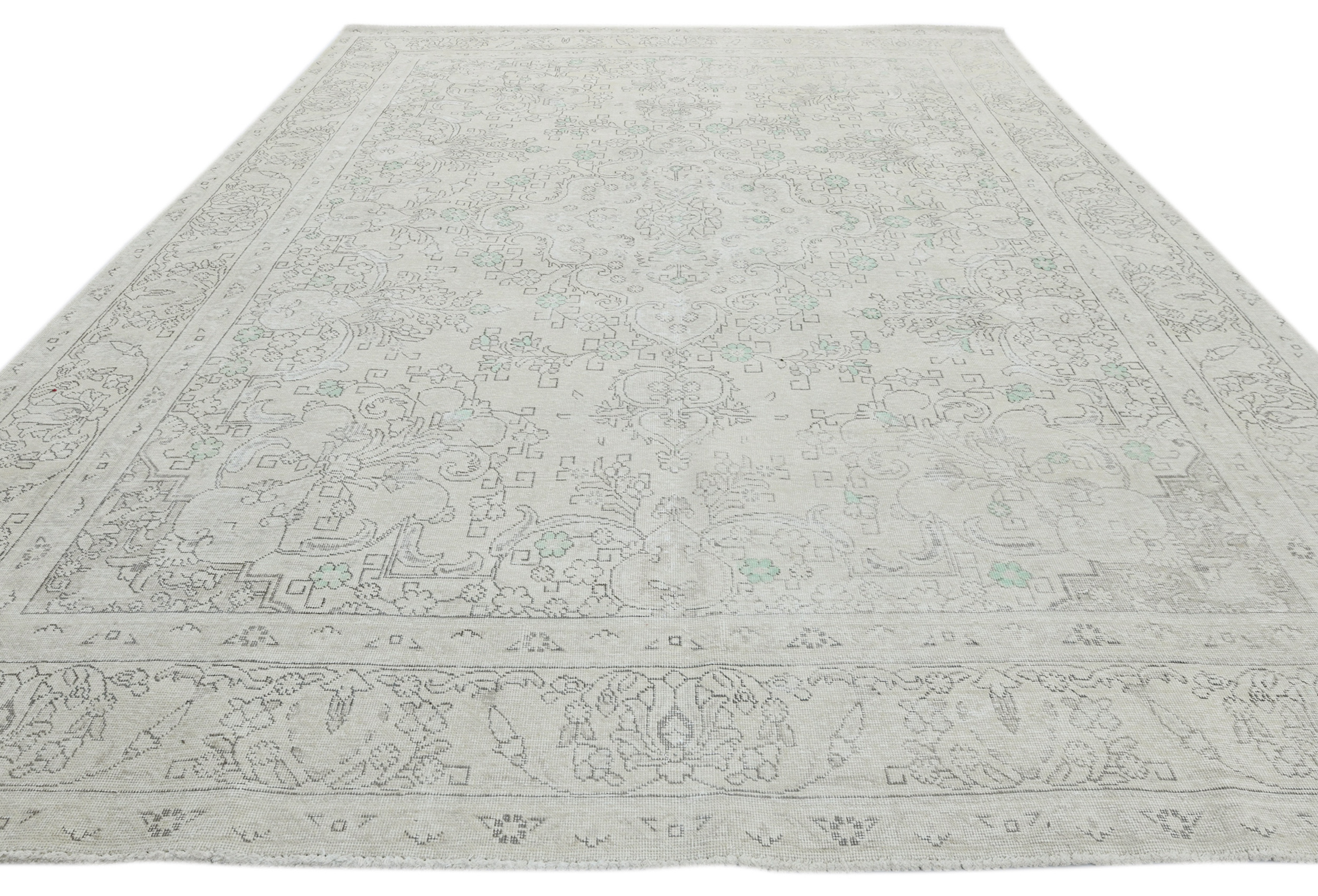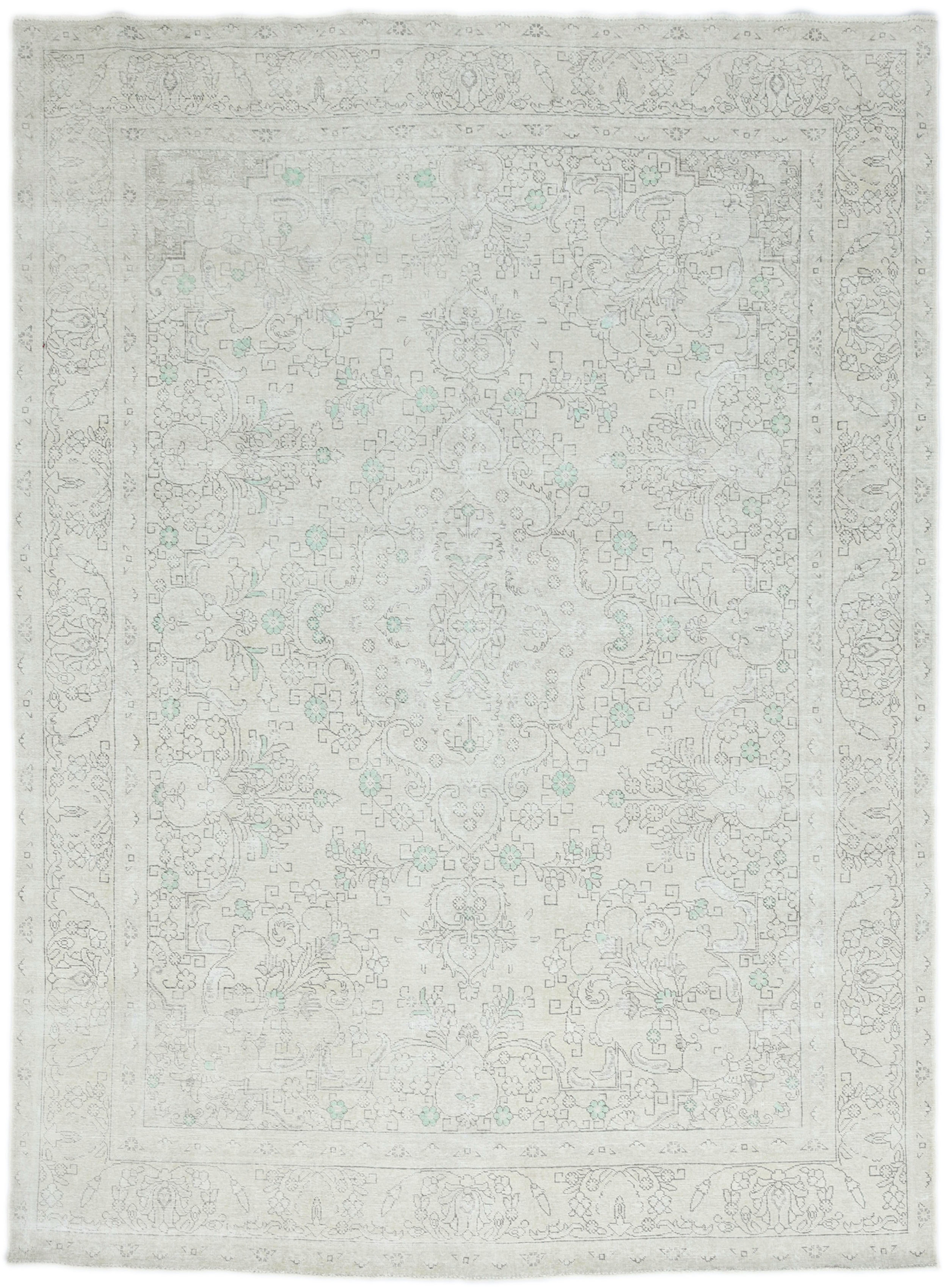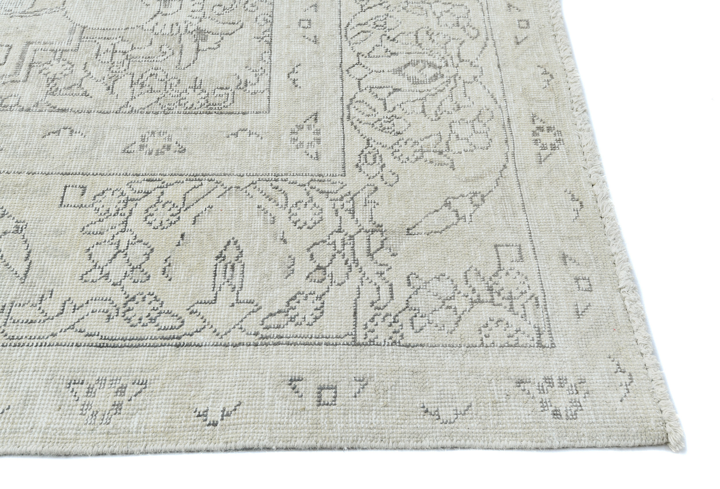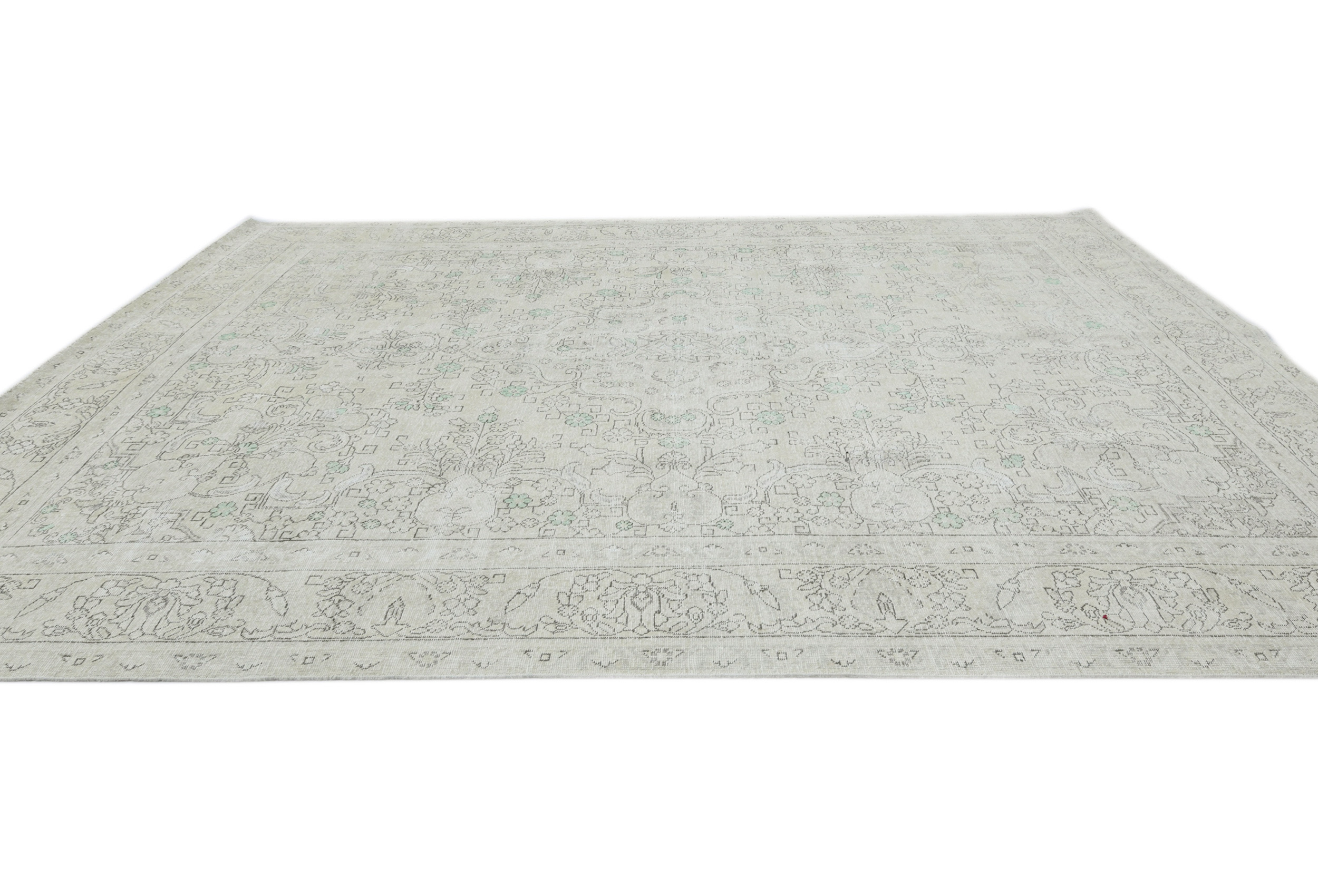 Antique Muted Cream Floral 10X13 Distressed Vintage Oriental Rug