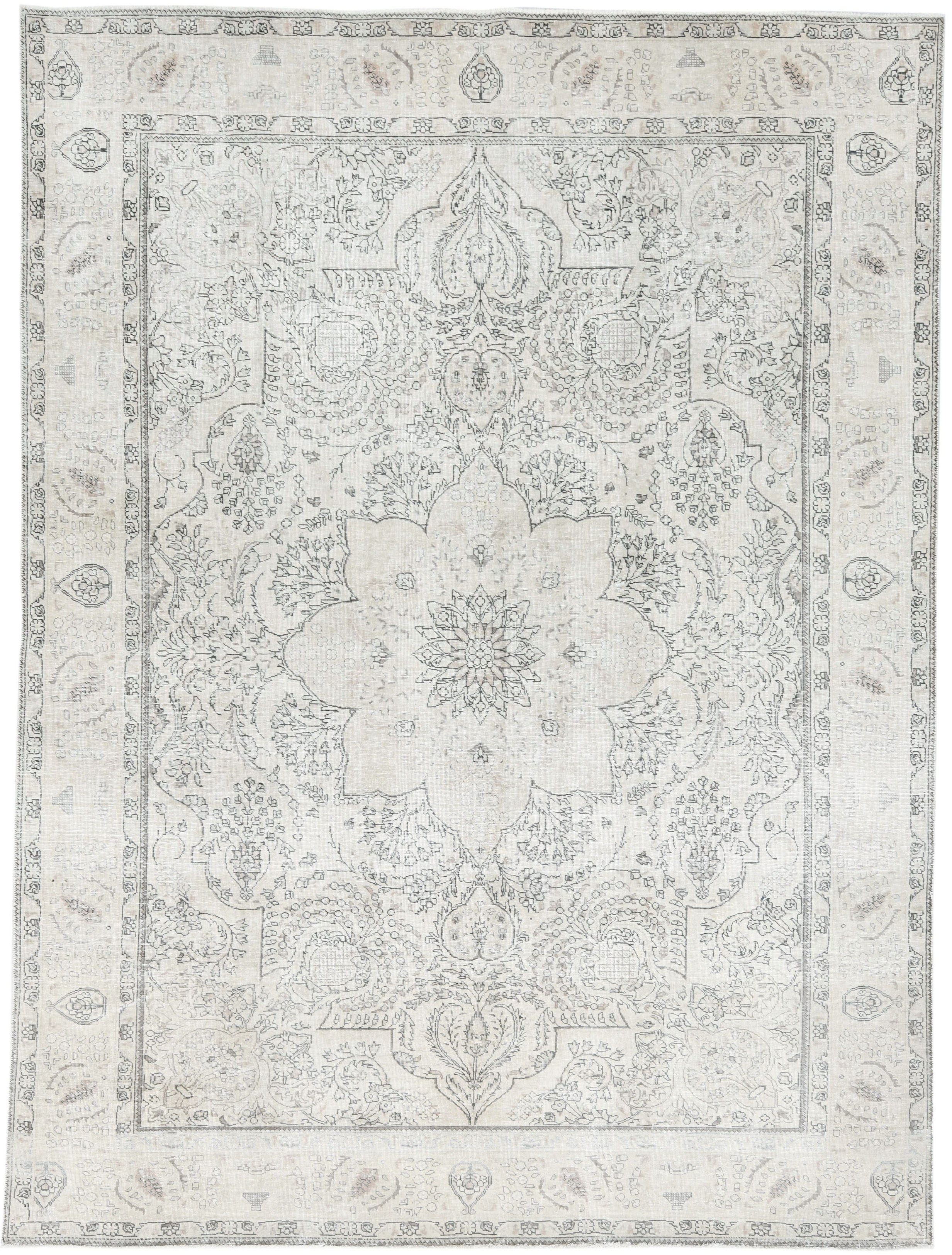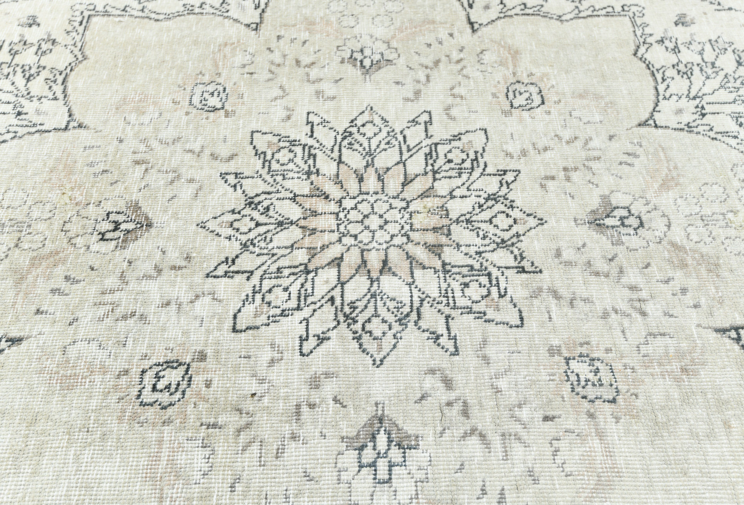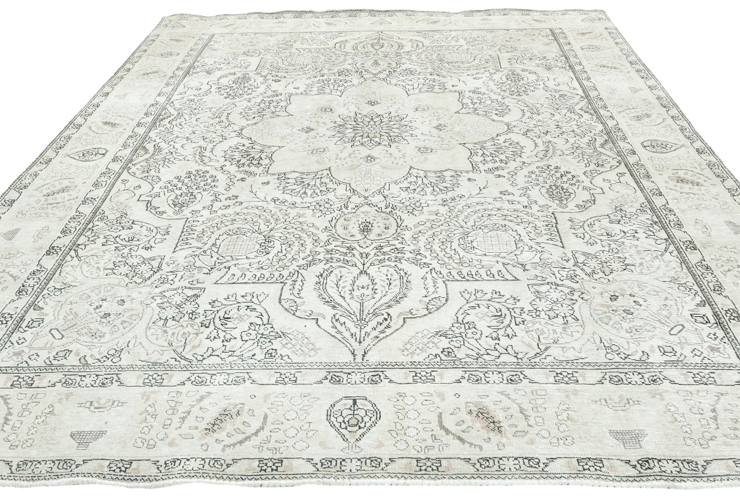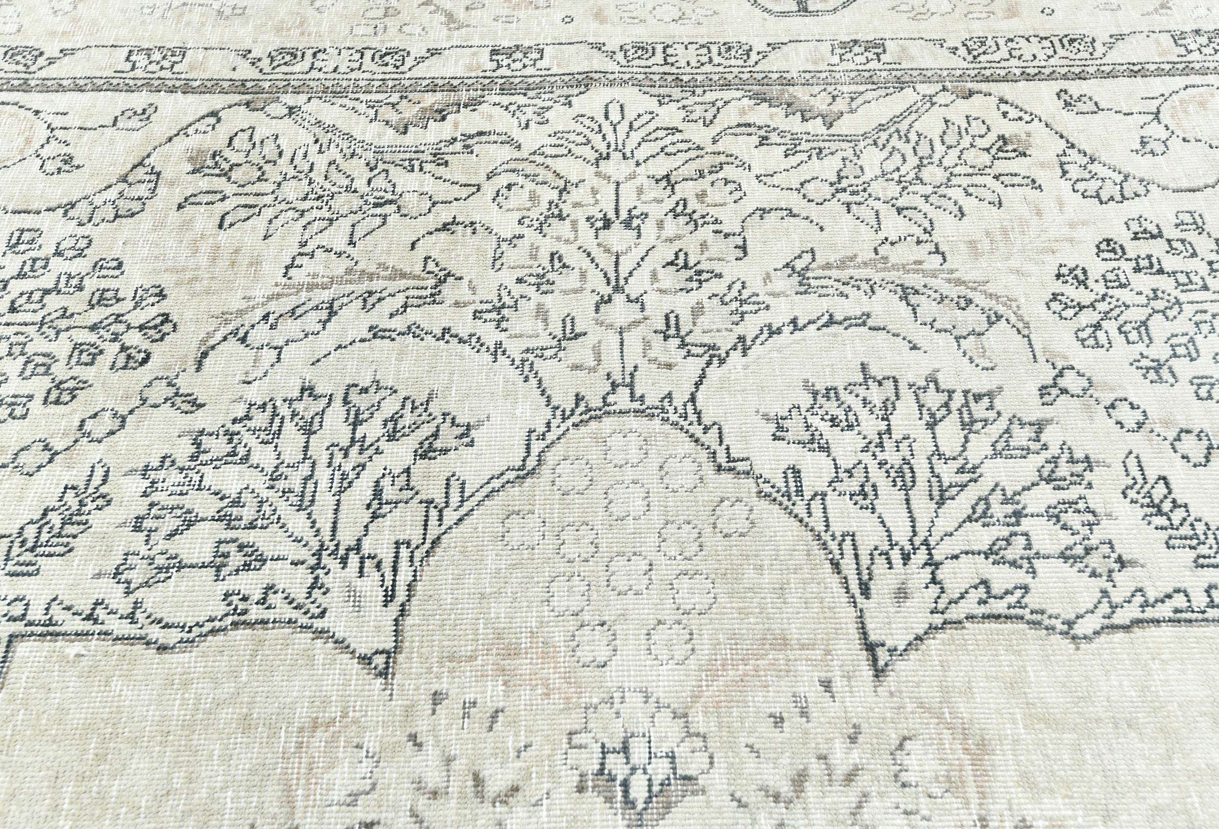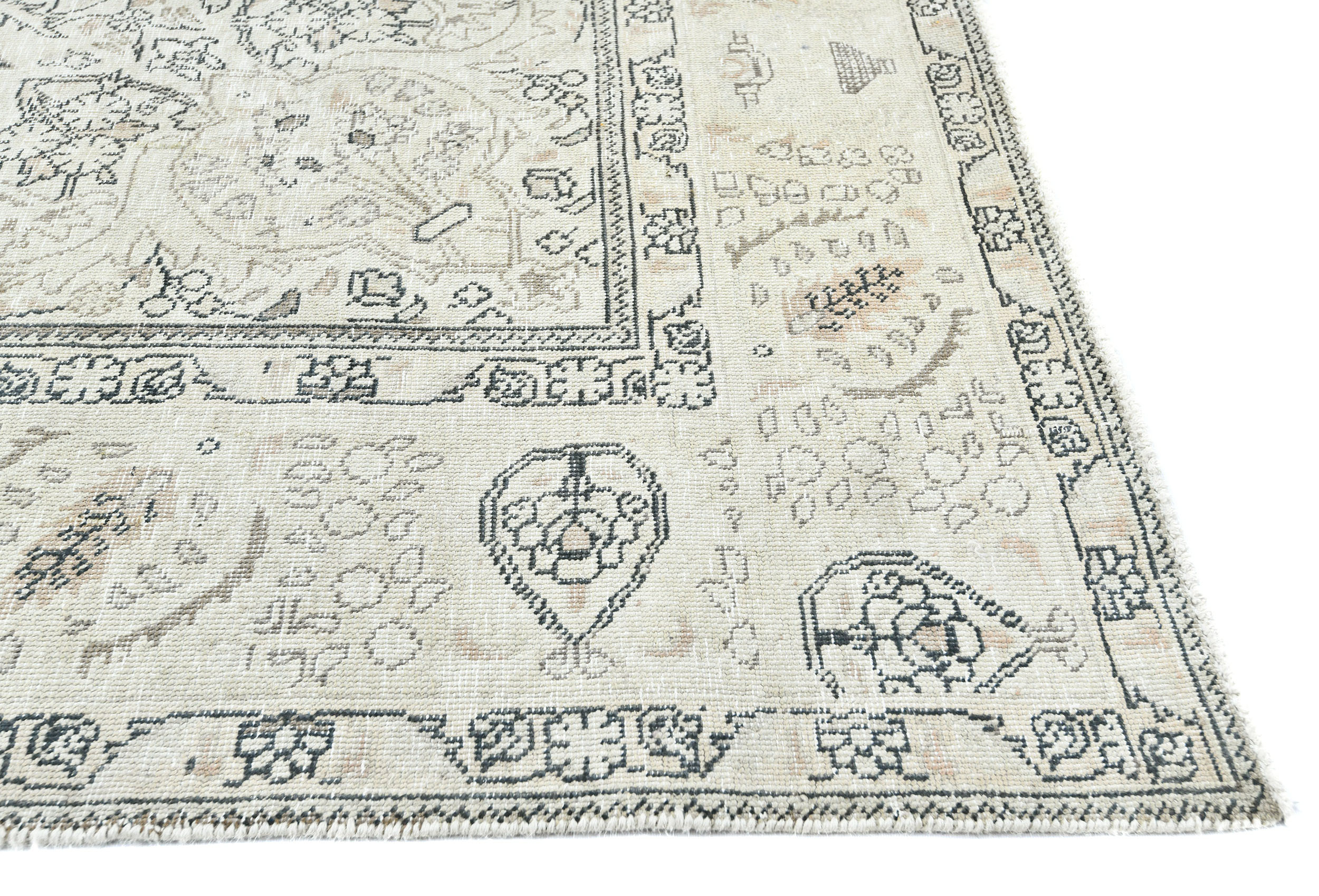 Antique Muted Cream Floral 8X11 Distressed Vintage Oriental Rug