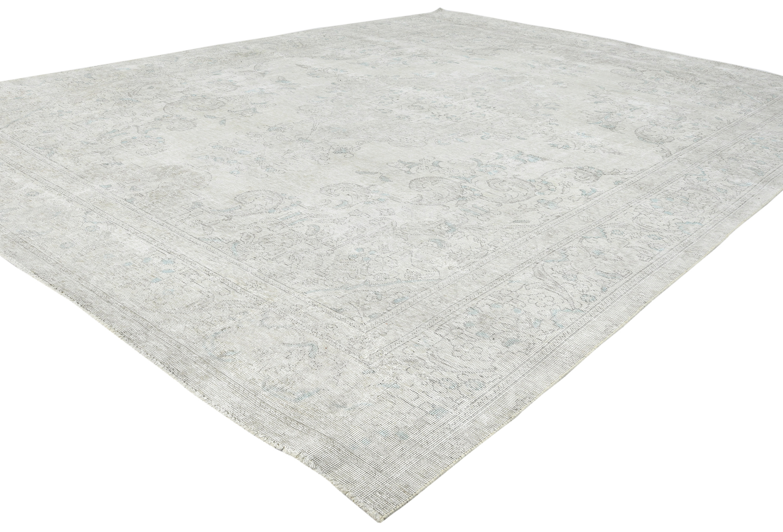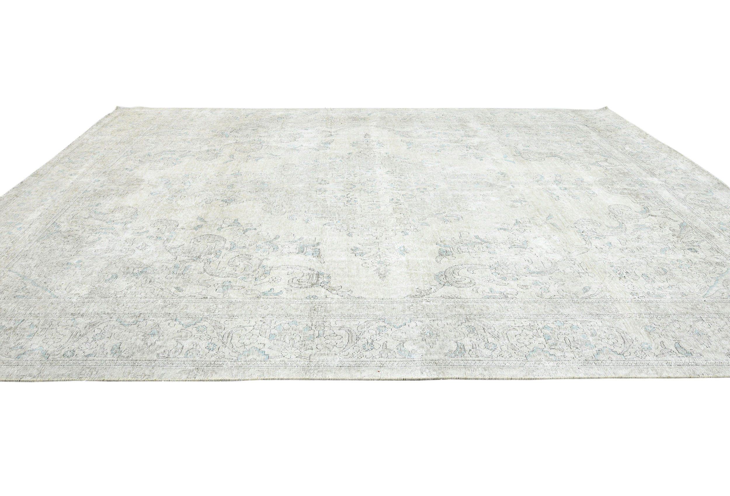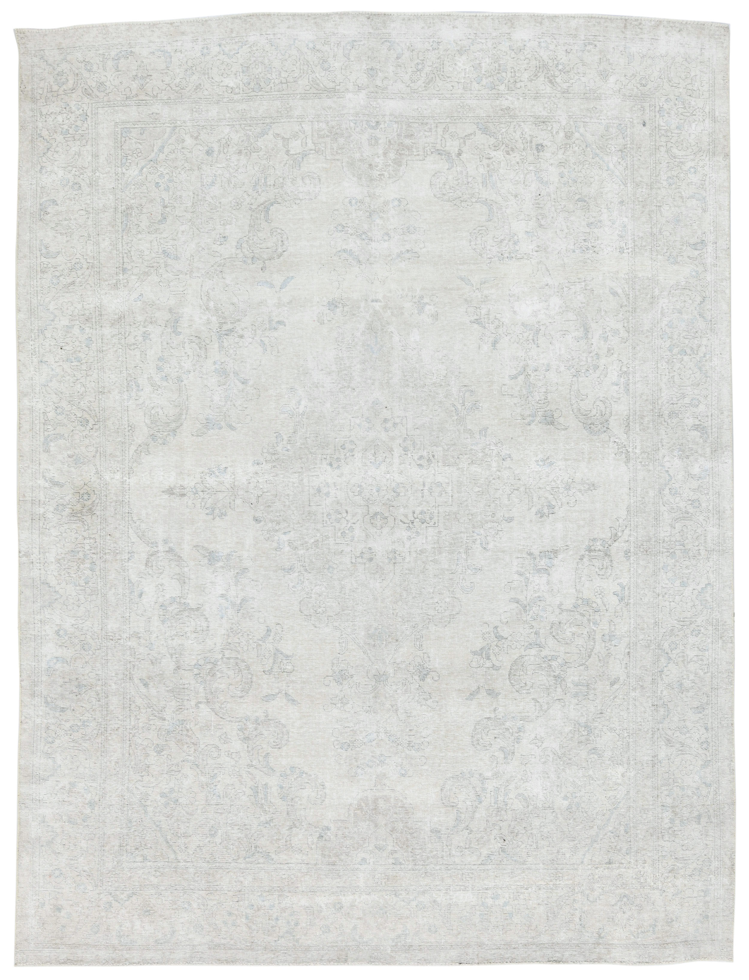Antique Muted Cream Floral 9'4X12'3 Distressed Vintage Oriental Rug