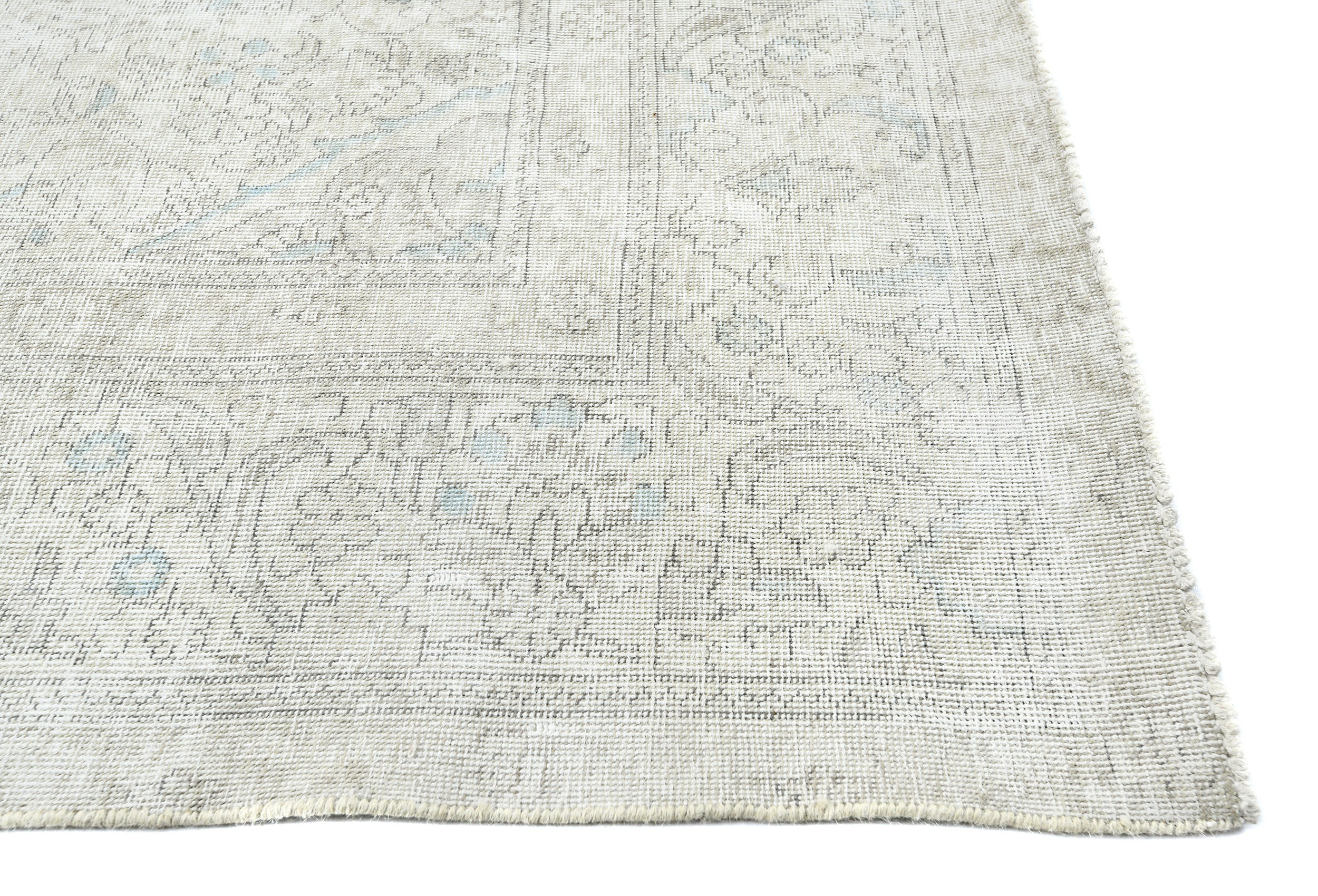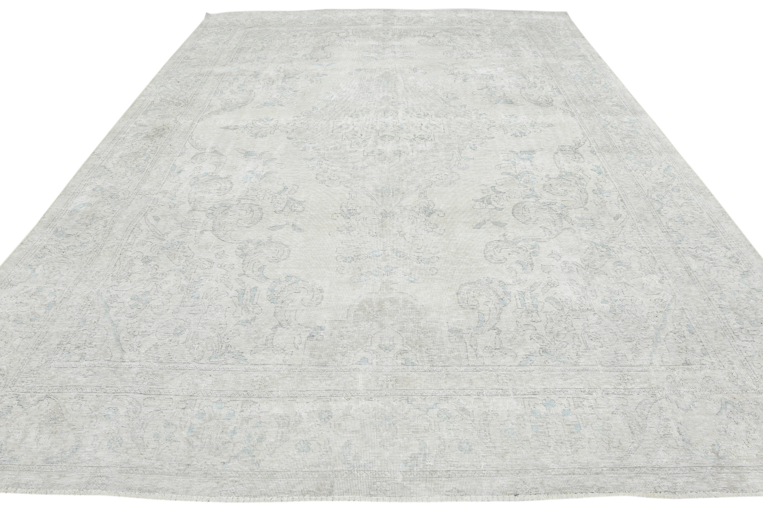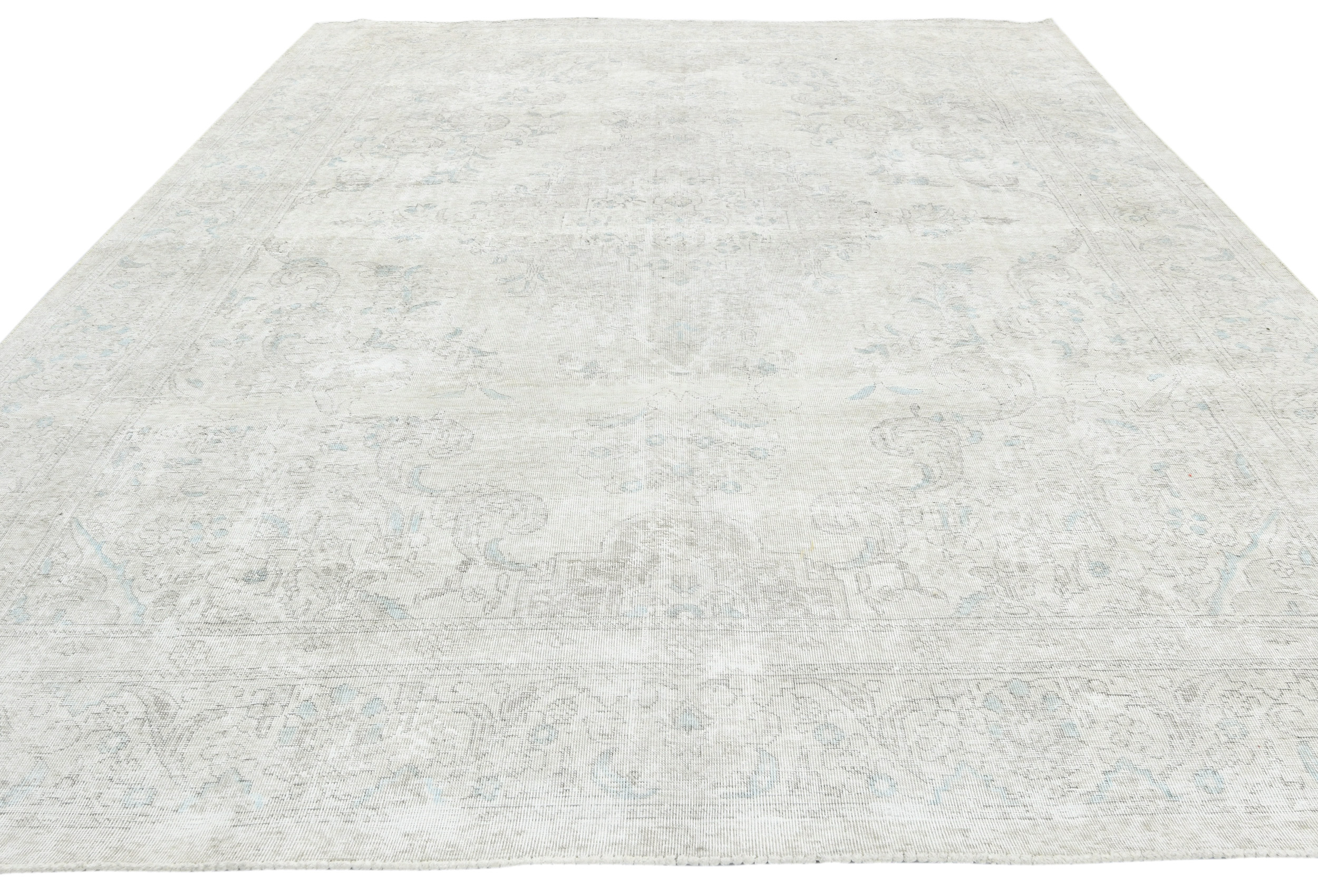 Antique Muted Cream Floral 9'4X12'3 Distressed Vintage Oriental Rug