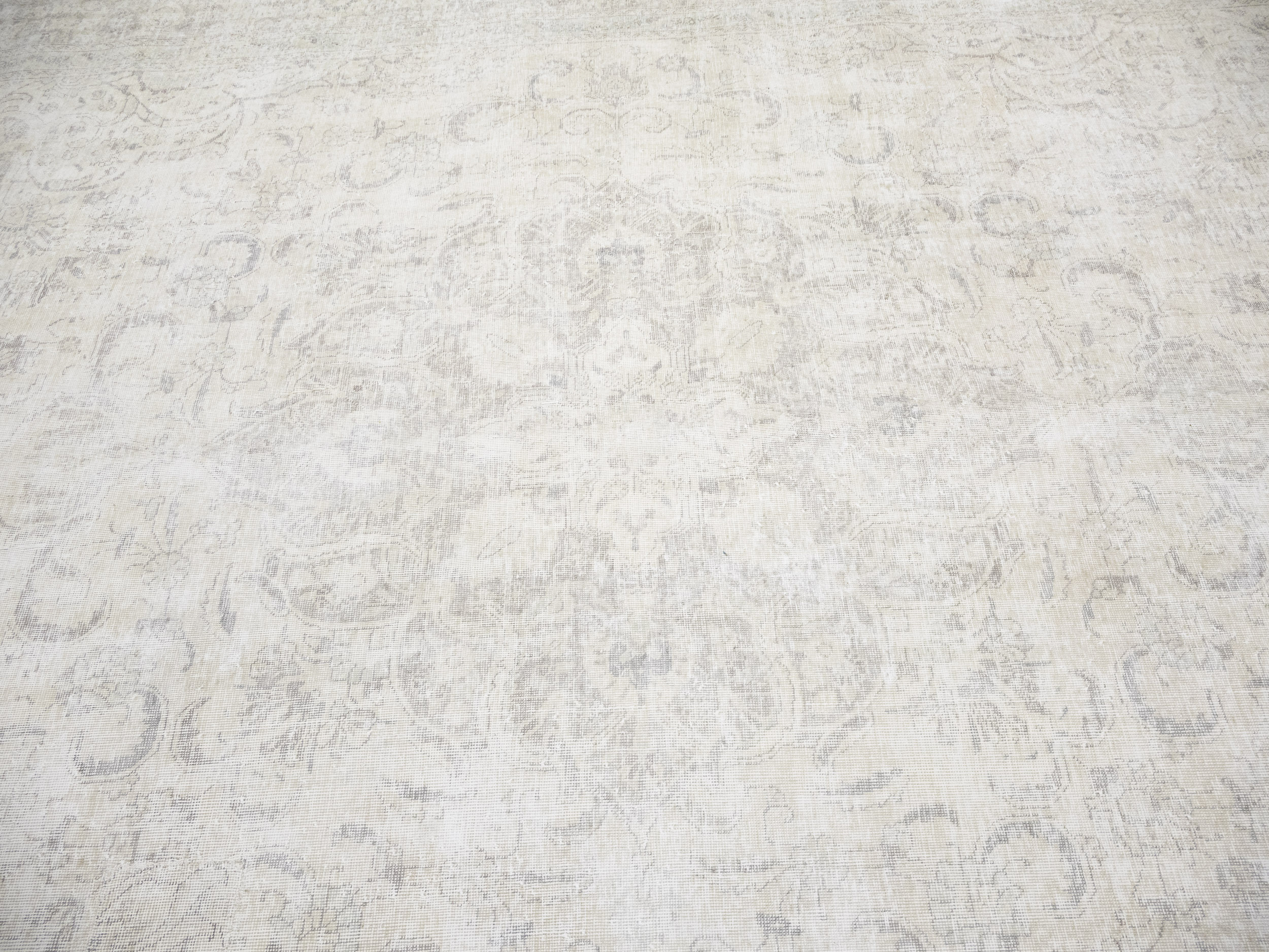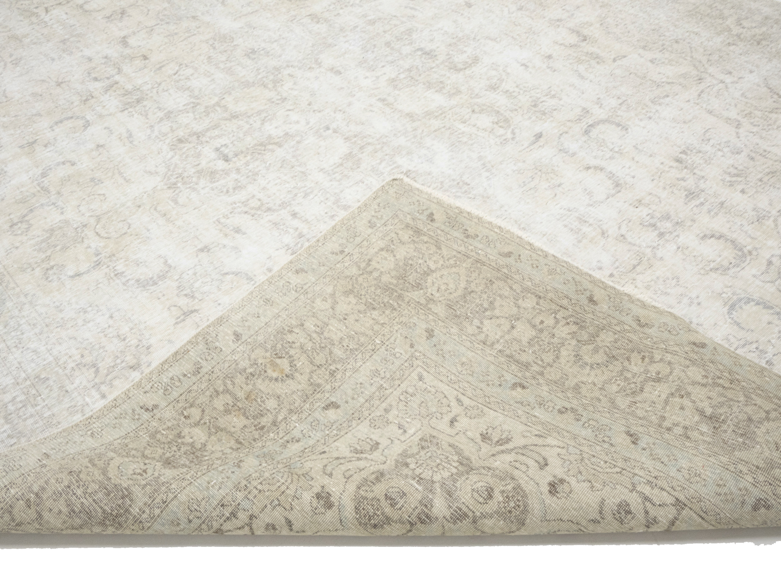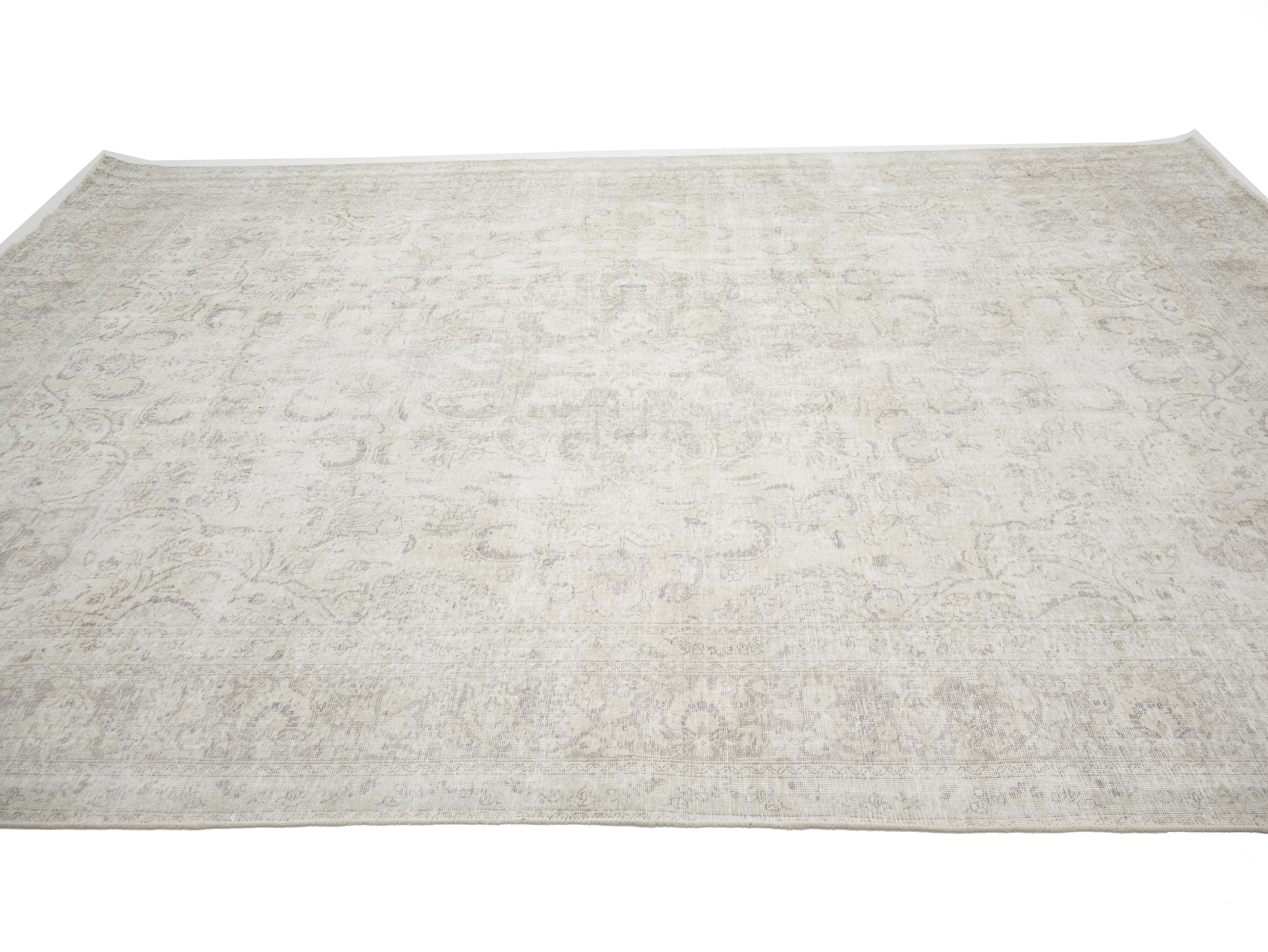 Antique Muted Cream Floral 9'5X12'8 Distressed Vintage Oriental Rug
