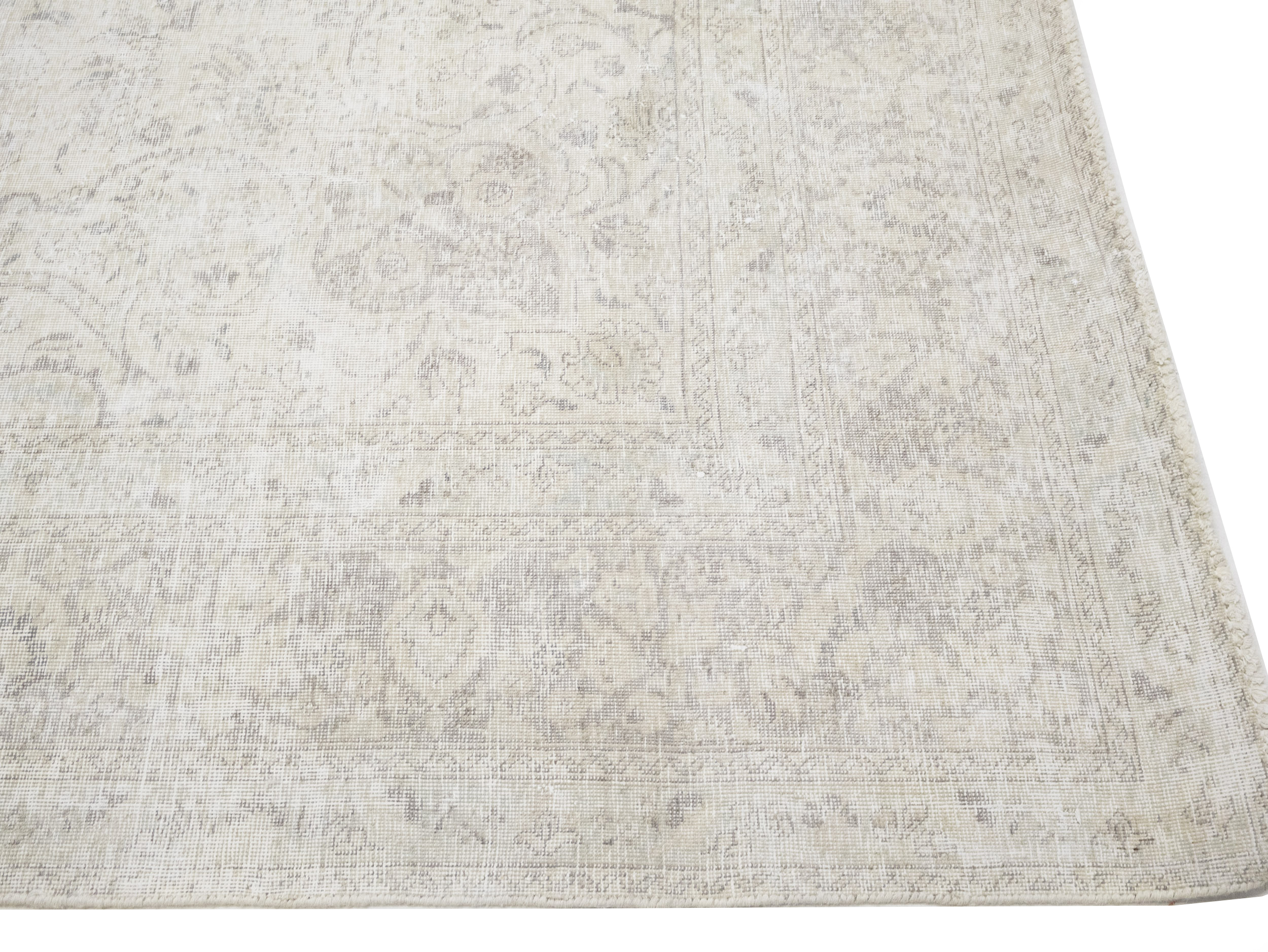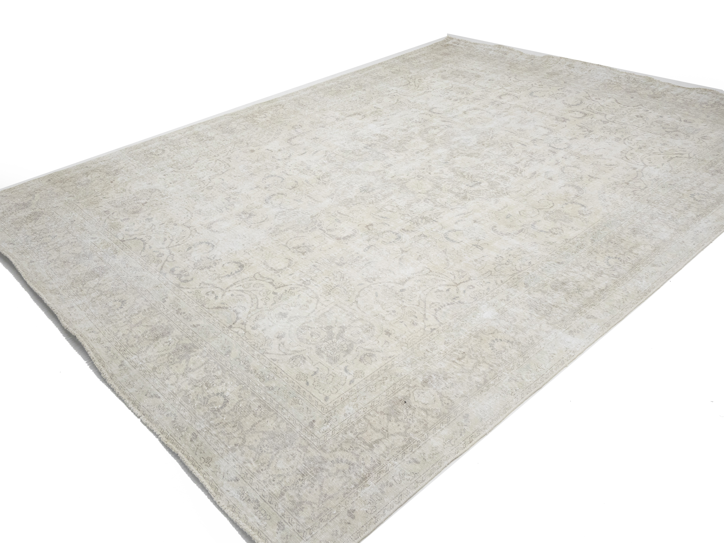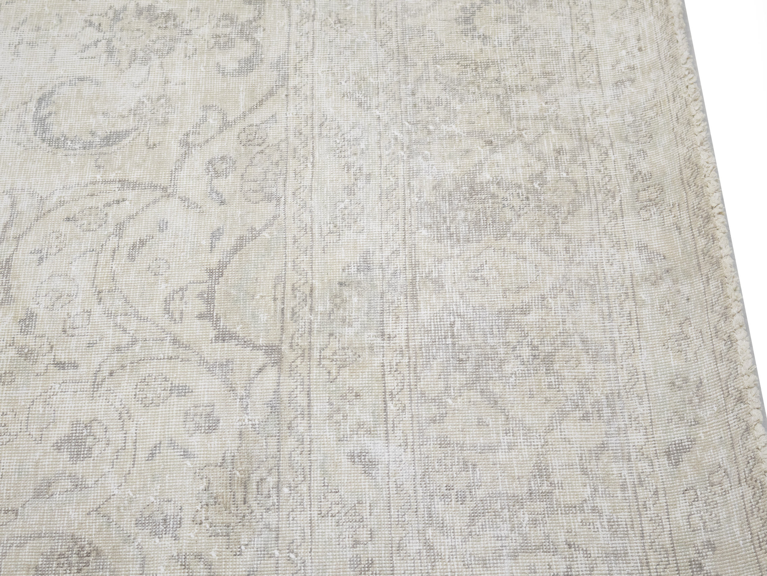 Antique Muted Cream Floral 9'5X12'8 Distressed Vintage Oriental Rug