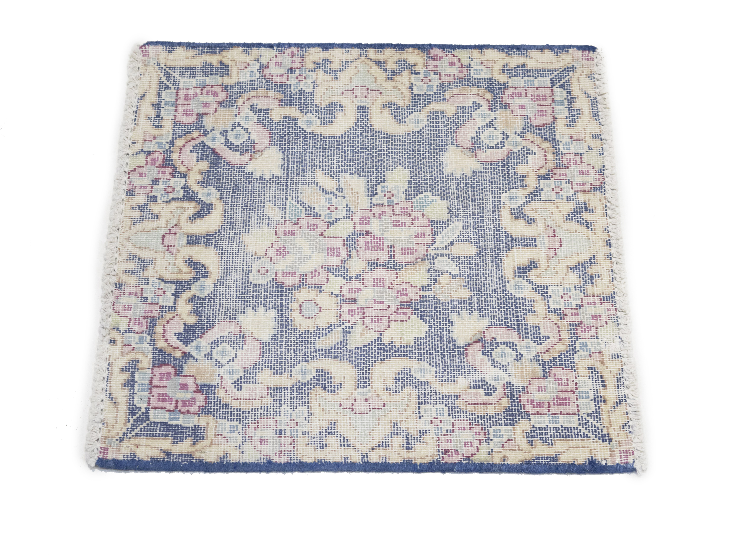 Antique Muted Floral 1'6X1'7 Distressed Vintage Oriental Square Rug