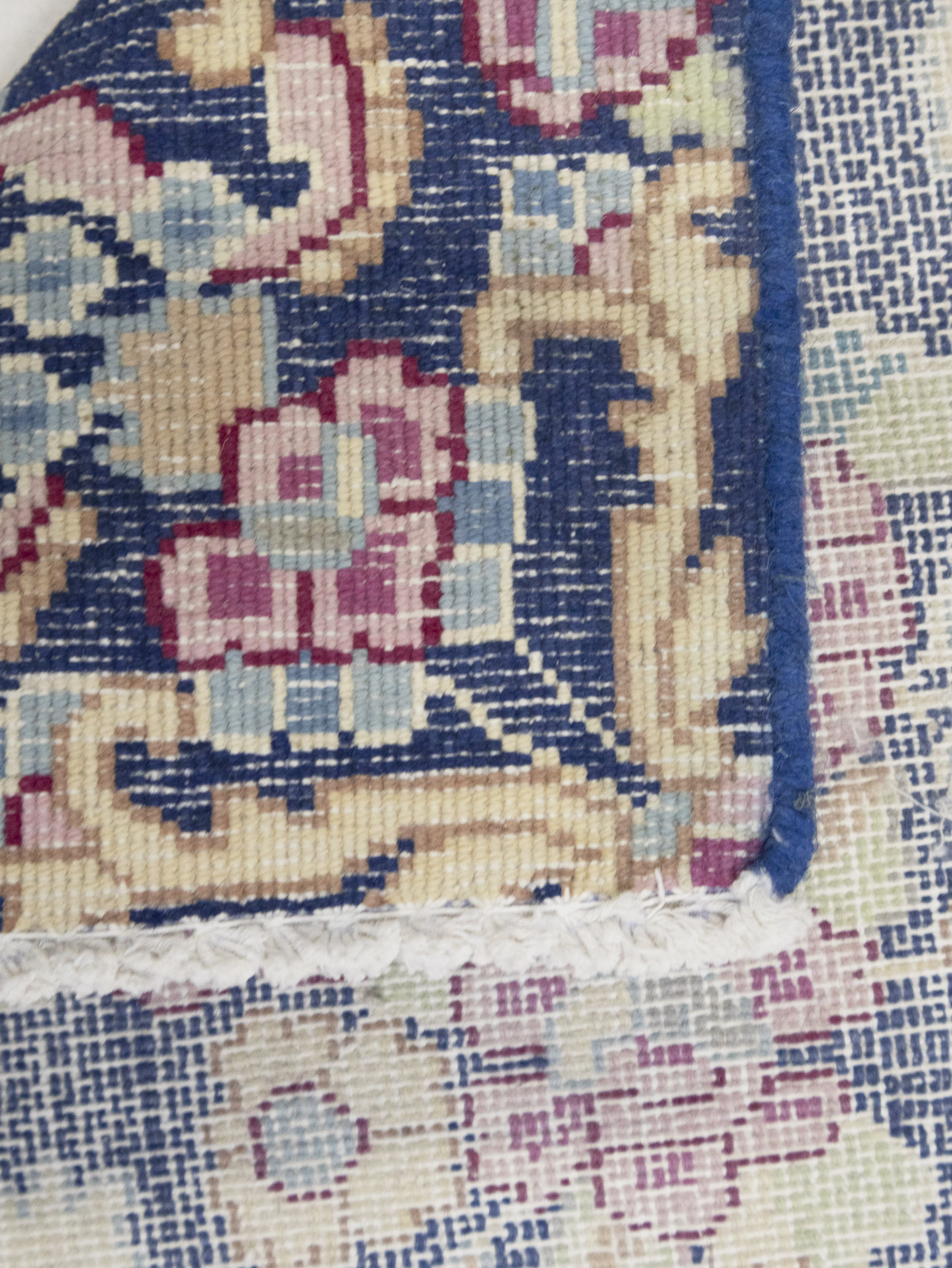 This authentic 1'6X1'7 blue new Oriental rug was crafted by the hands of skilled weavers enthused by a variety of lovely artistic designs, to recreate the aged look of the unique piece with a richness of color and beautifully elaborated background field. What set this vintage style Oriental area rug from the others are the material and dye used (wool pile and cotton foundation), knot count, ancient designs, fantastic grades, and its regional historical connection: it has deep roots, from the story of the people who produced it to the meaning of the symbols and colors displayed across its canvas that have been praised for centuries. This Indian home décor carpet will be completely cozy and inviting that never will go out of style! Also, this Oriental rug would be among your most valuable treasures, it is a great investment that increase in value over time, and it will last for generations because was woven with high-quality, all-natural wool. Environmentally friendly, opulent yet affordable; this rug will give you a thorough amount of character to help define your living space with sophistication and warmth that will capture the eyes and attention of your audience (homeowners, designers, decorators, family and friends). RT-5269