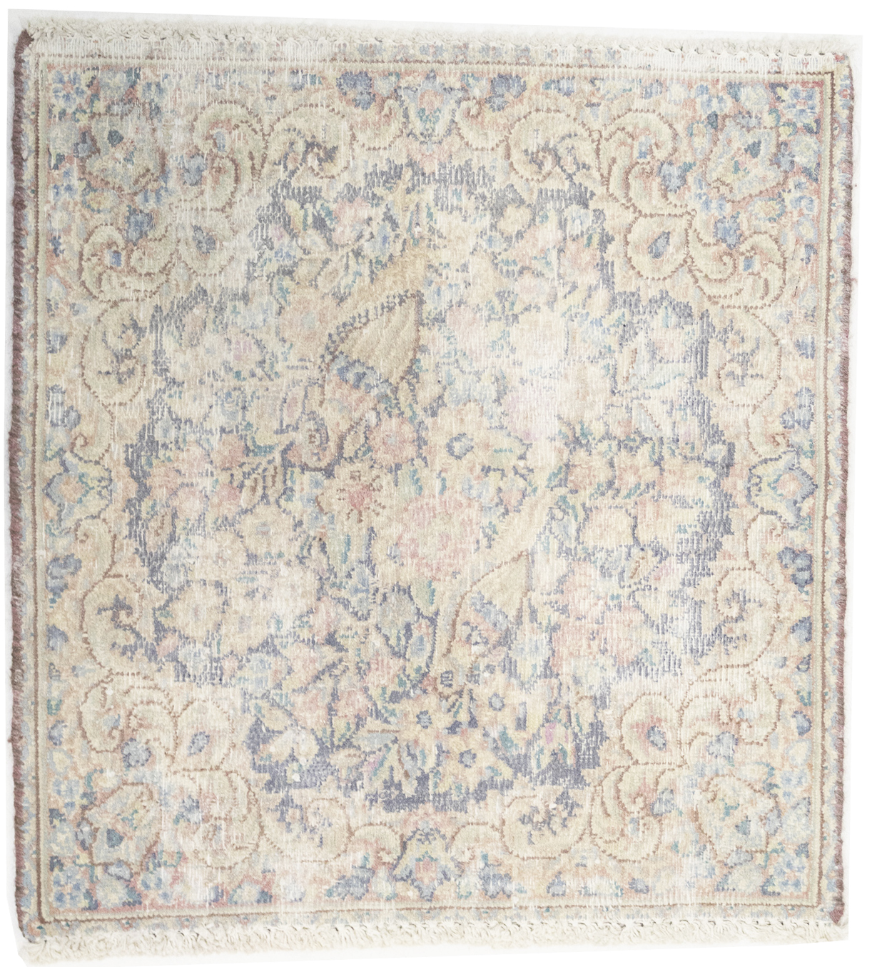 Antique Muted Floral 1'7X1'8 Distressed Vintage Oriental Square Rug