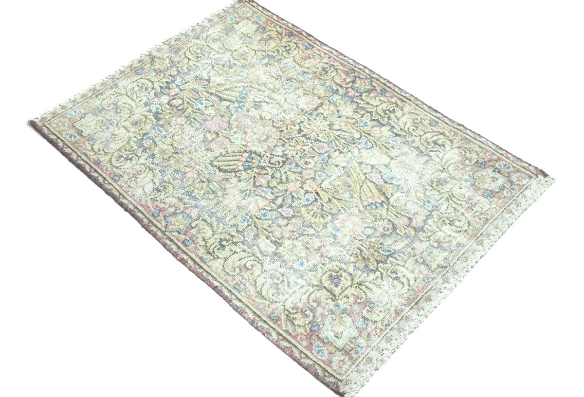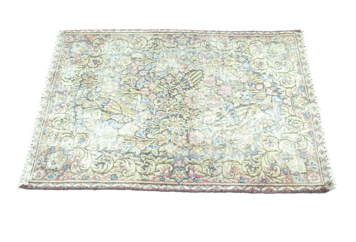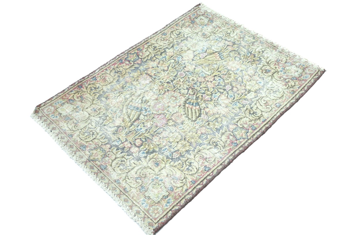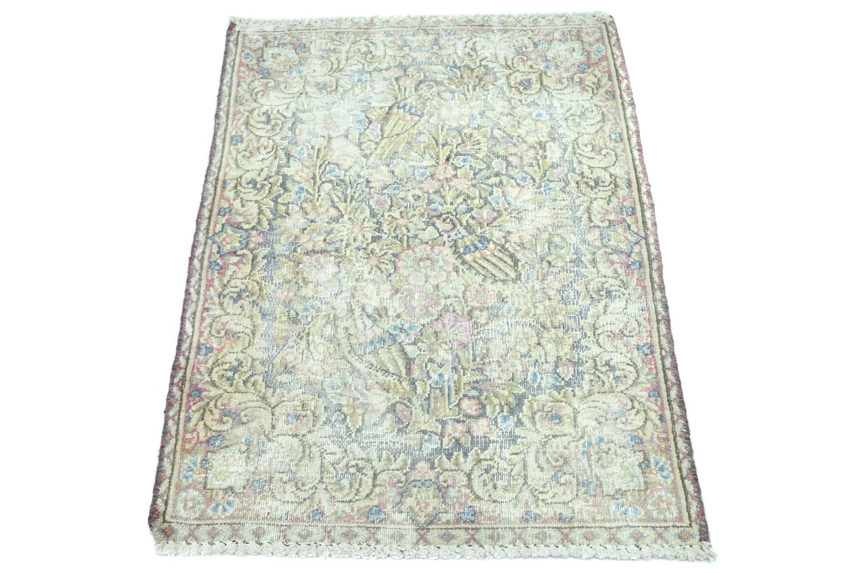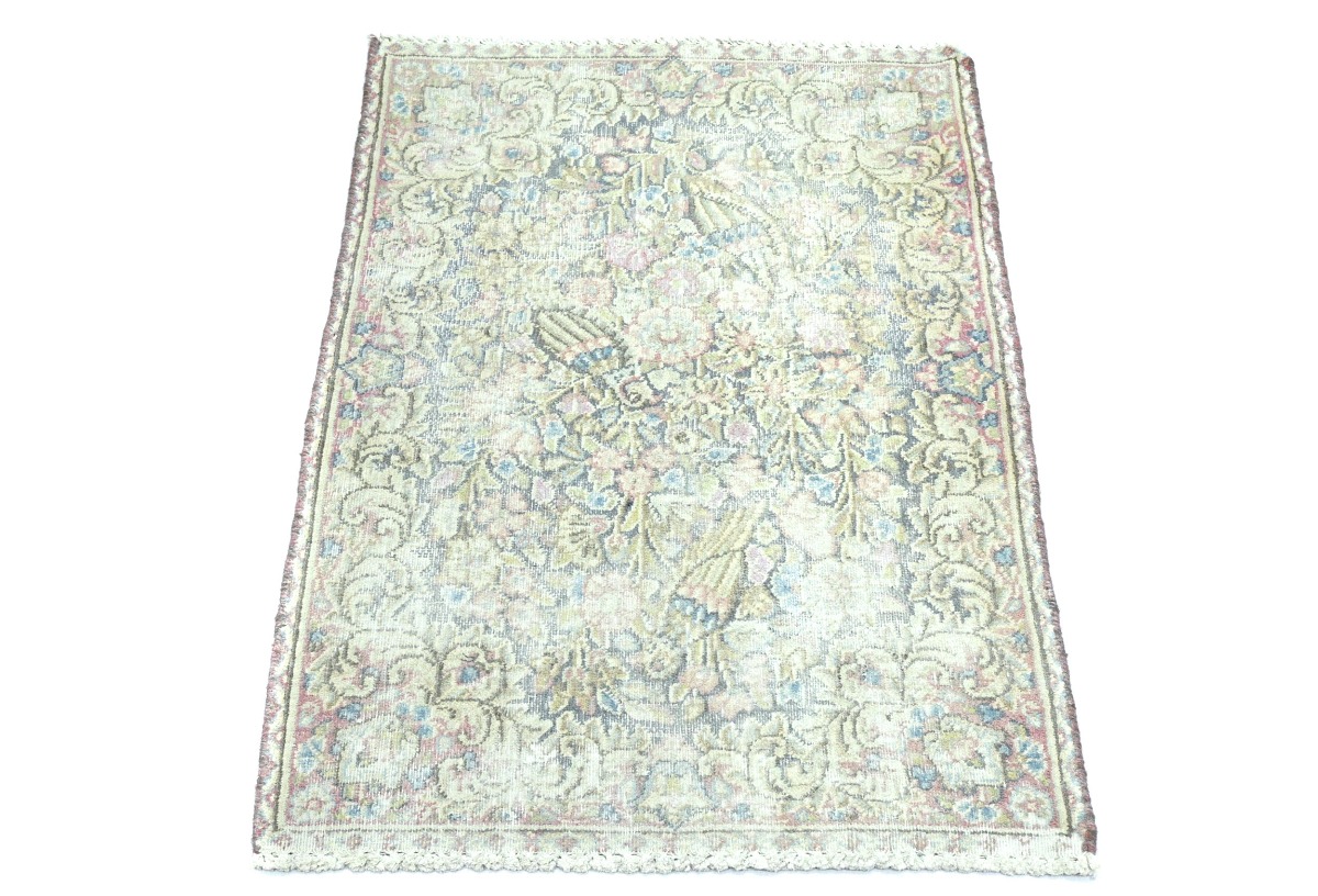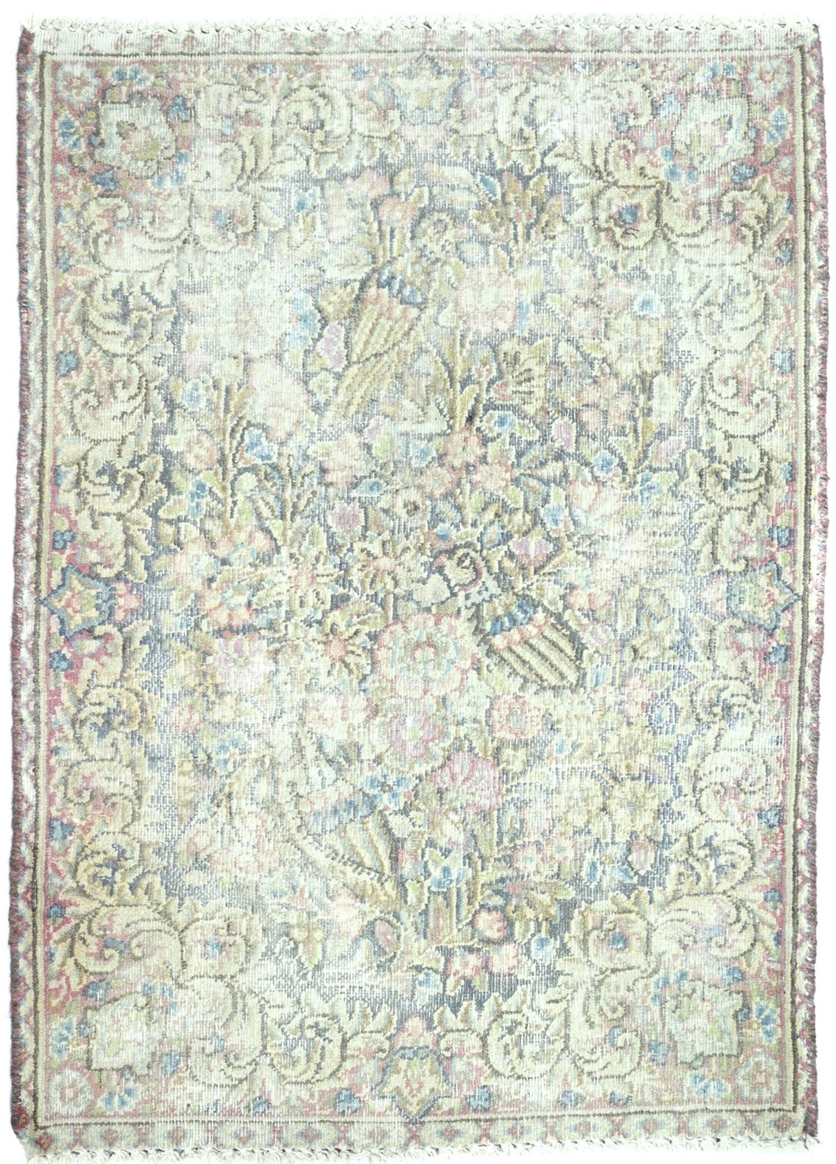 Antique Muted Floral 1'9X2'5 Distressed Vintage Oriental Rug