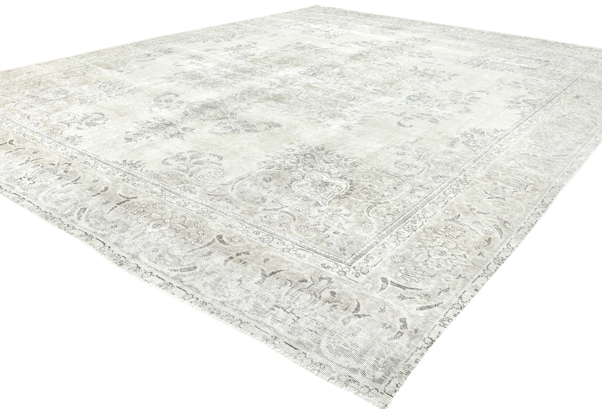 Antique Muted Floral 10X11'6 Distressed Vintage Oriental Rug