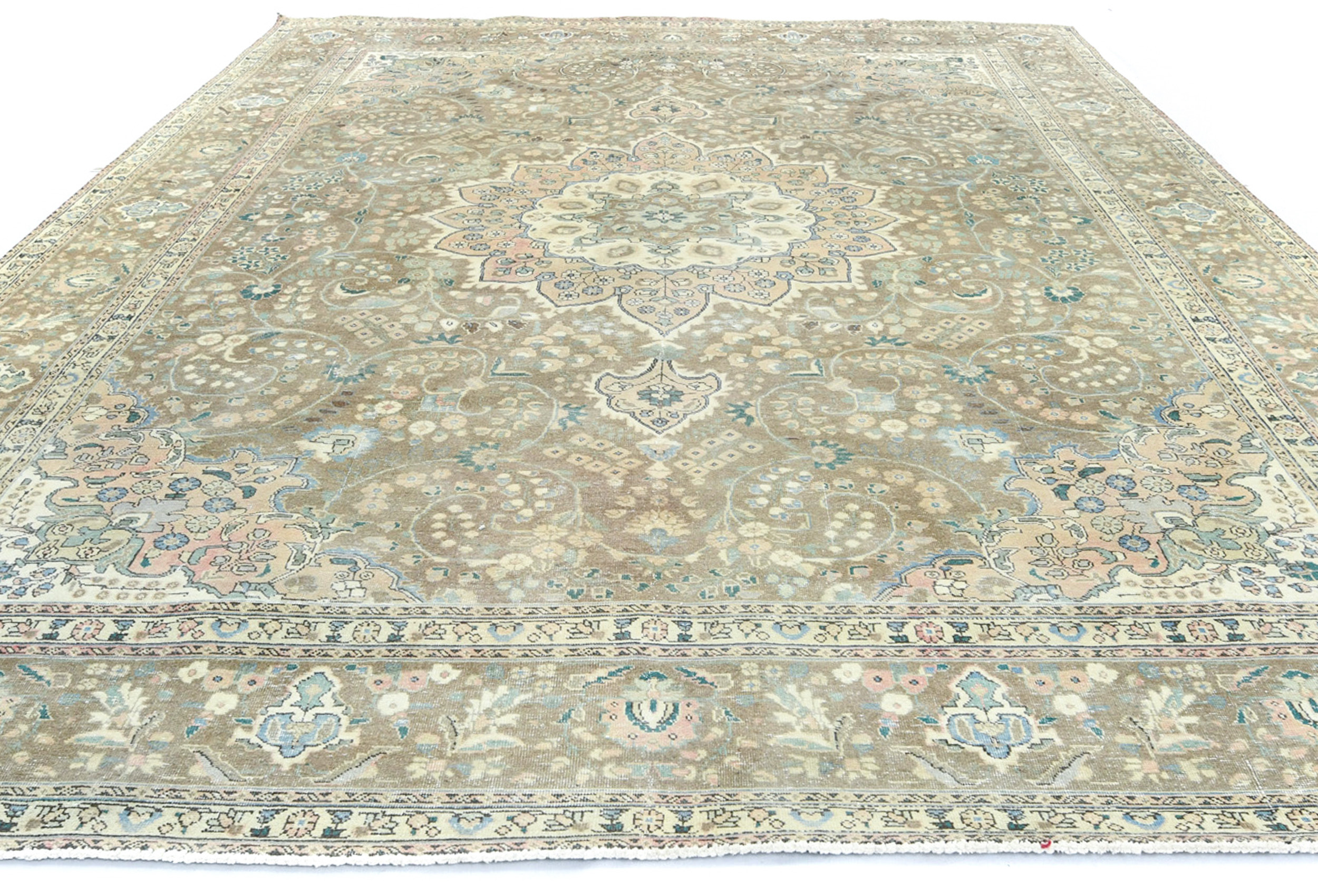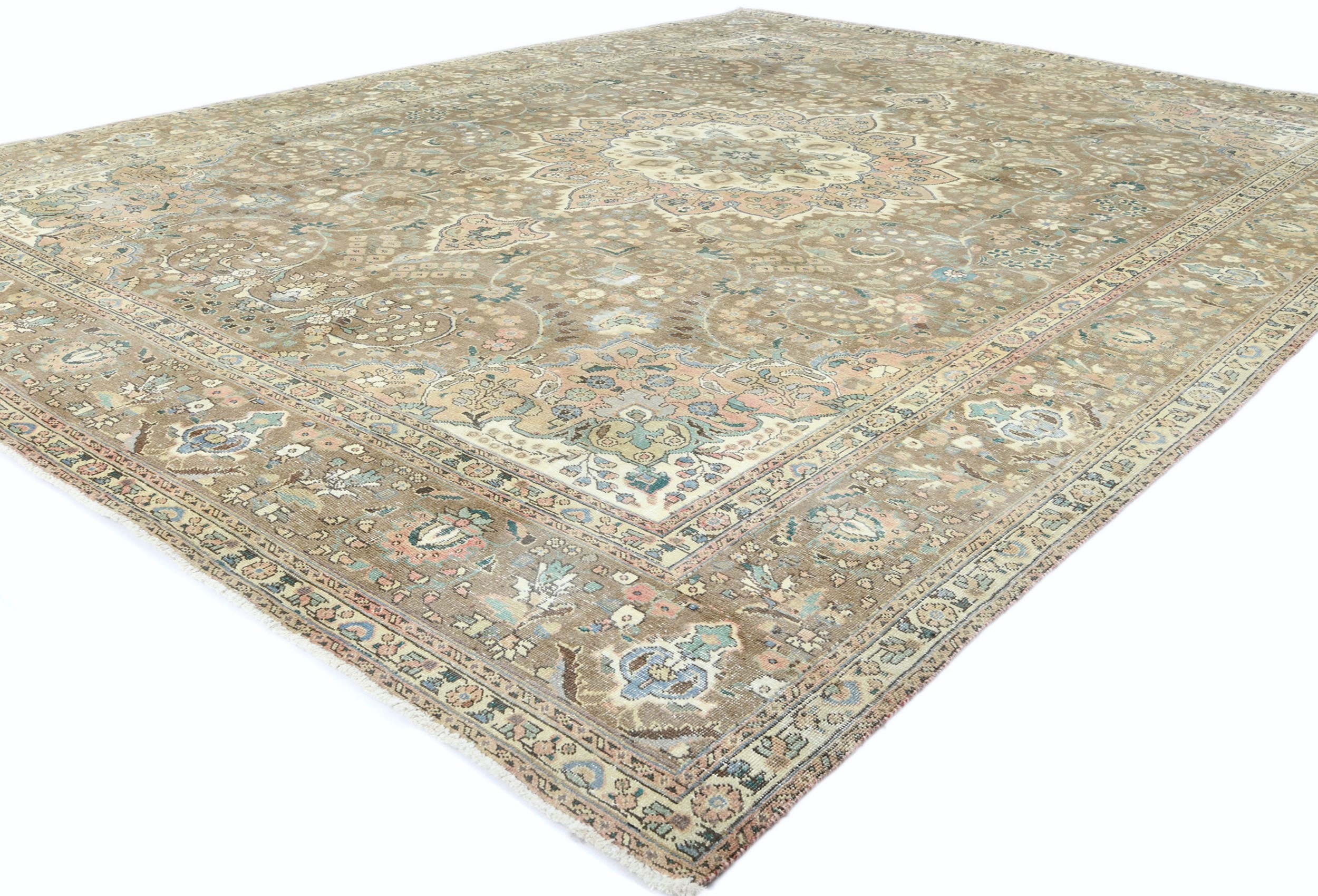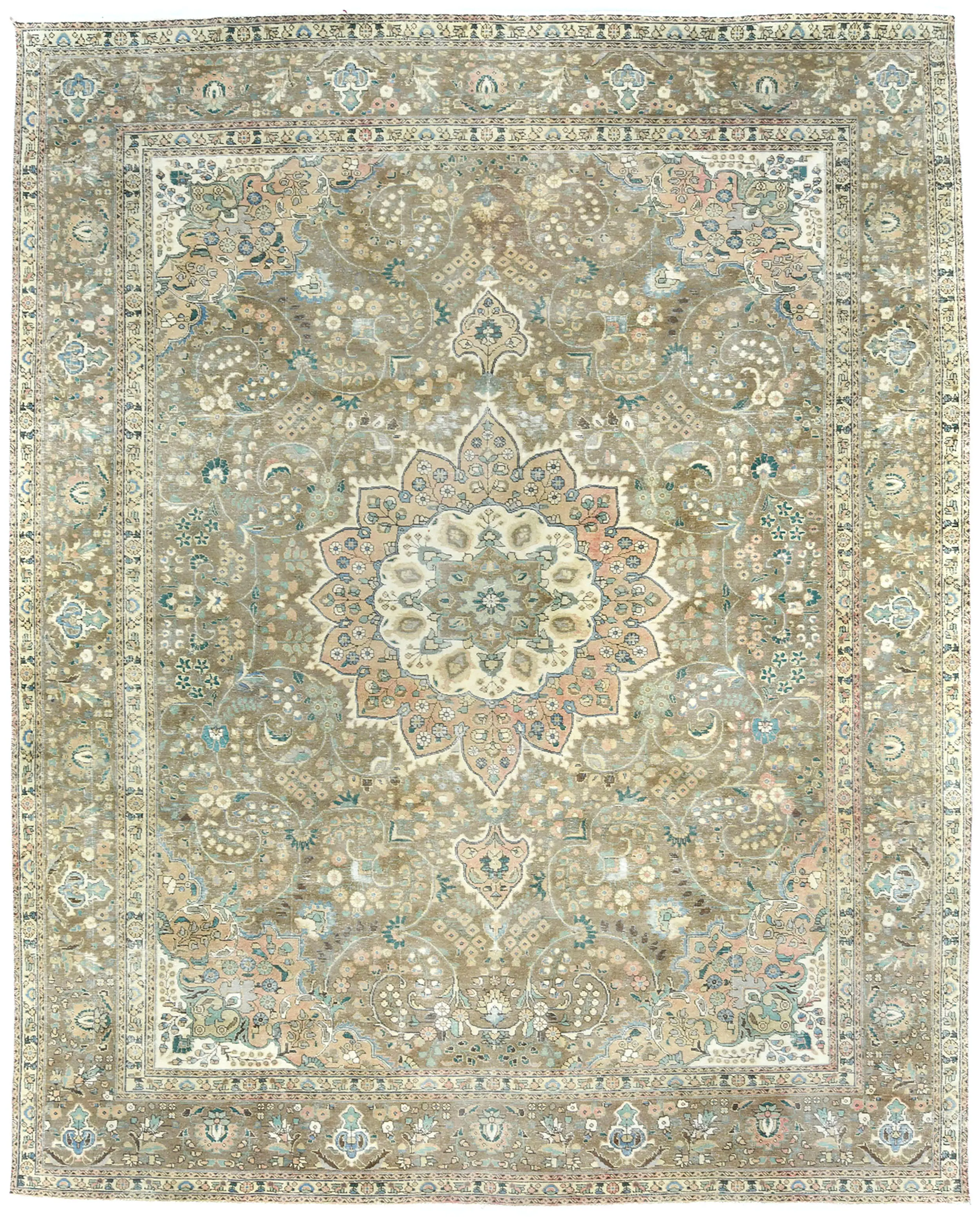 Antique Muted Floral 10X13 Distressed Vintage Oriental Rug