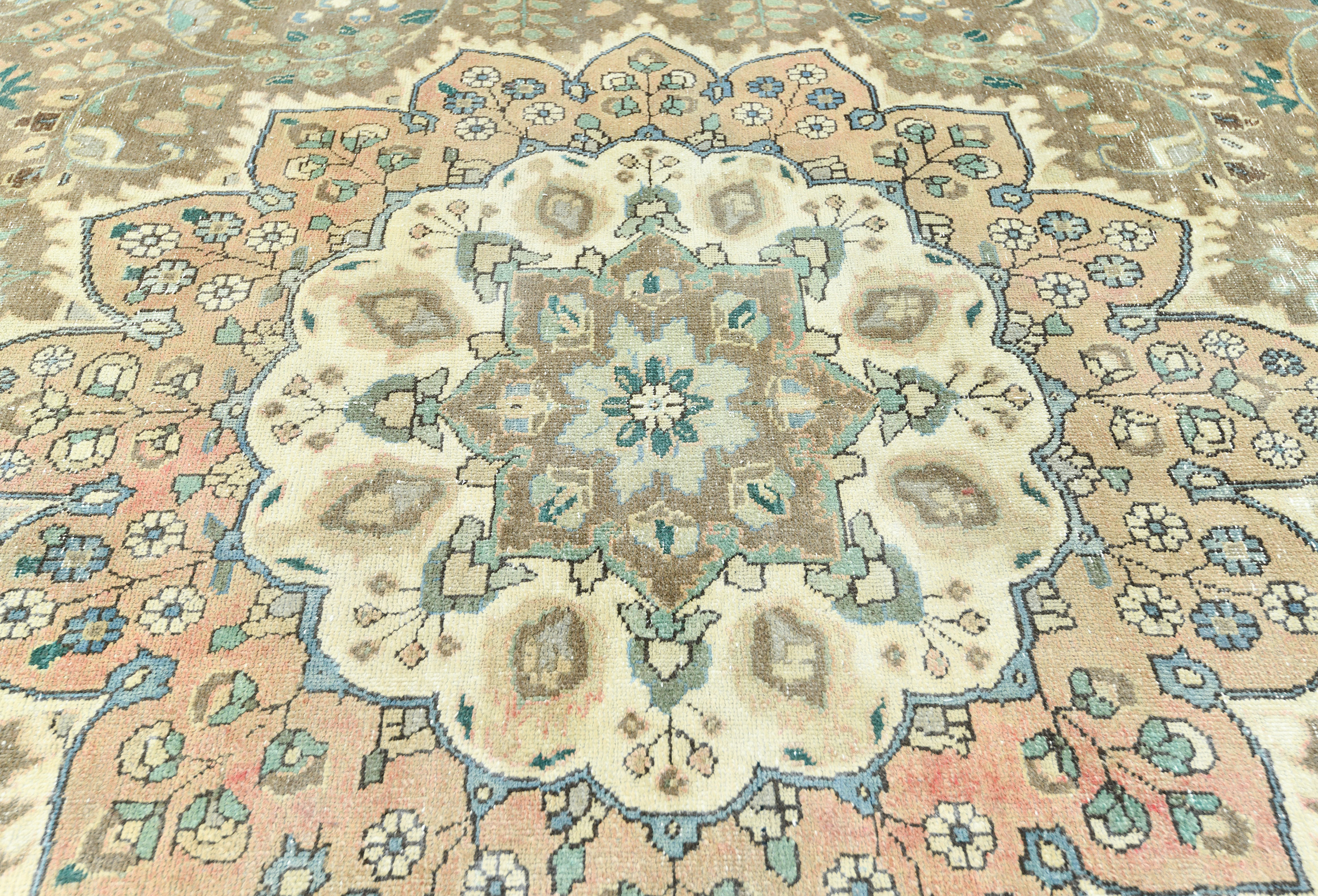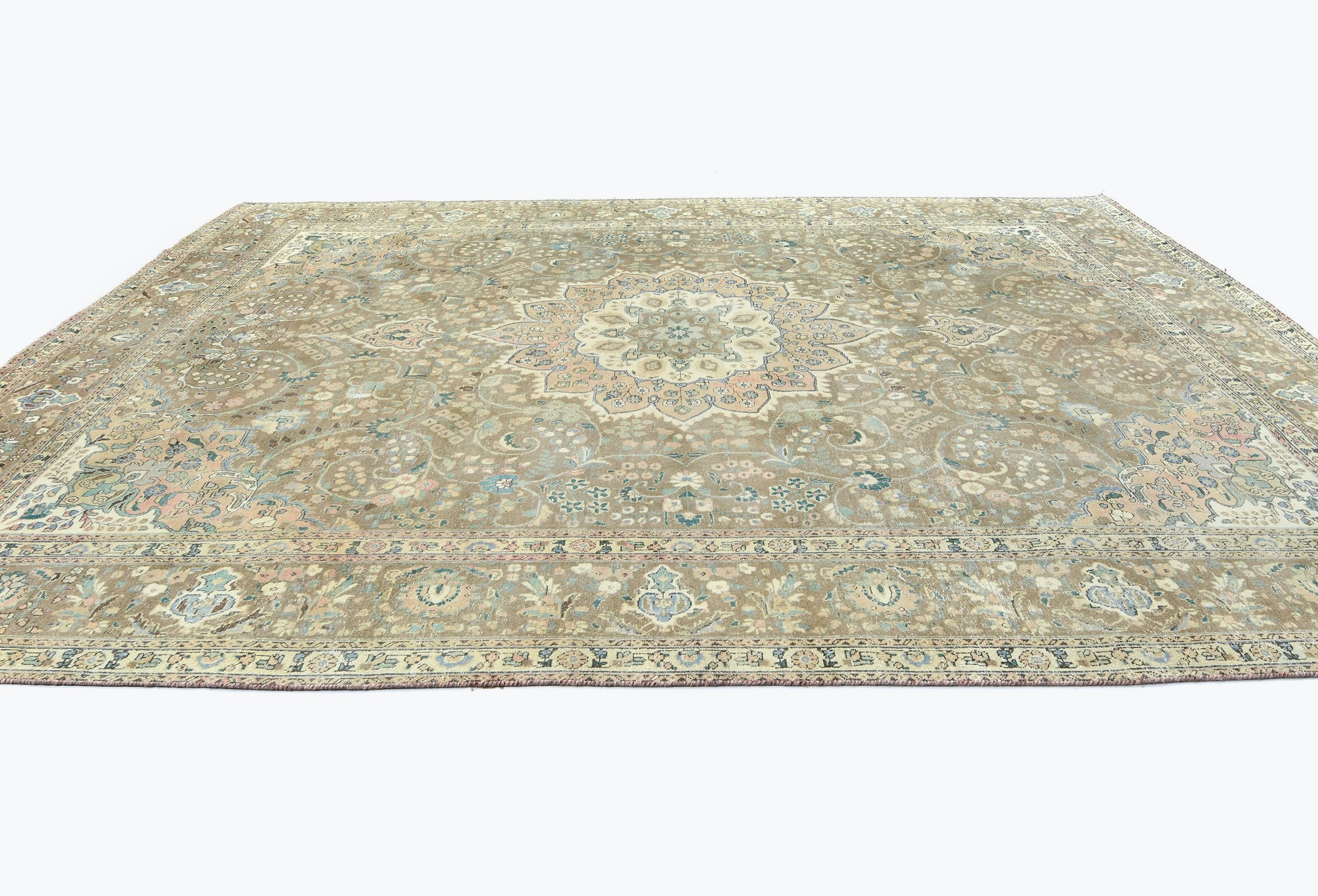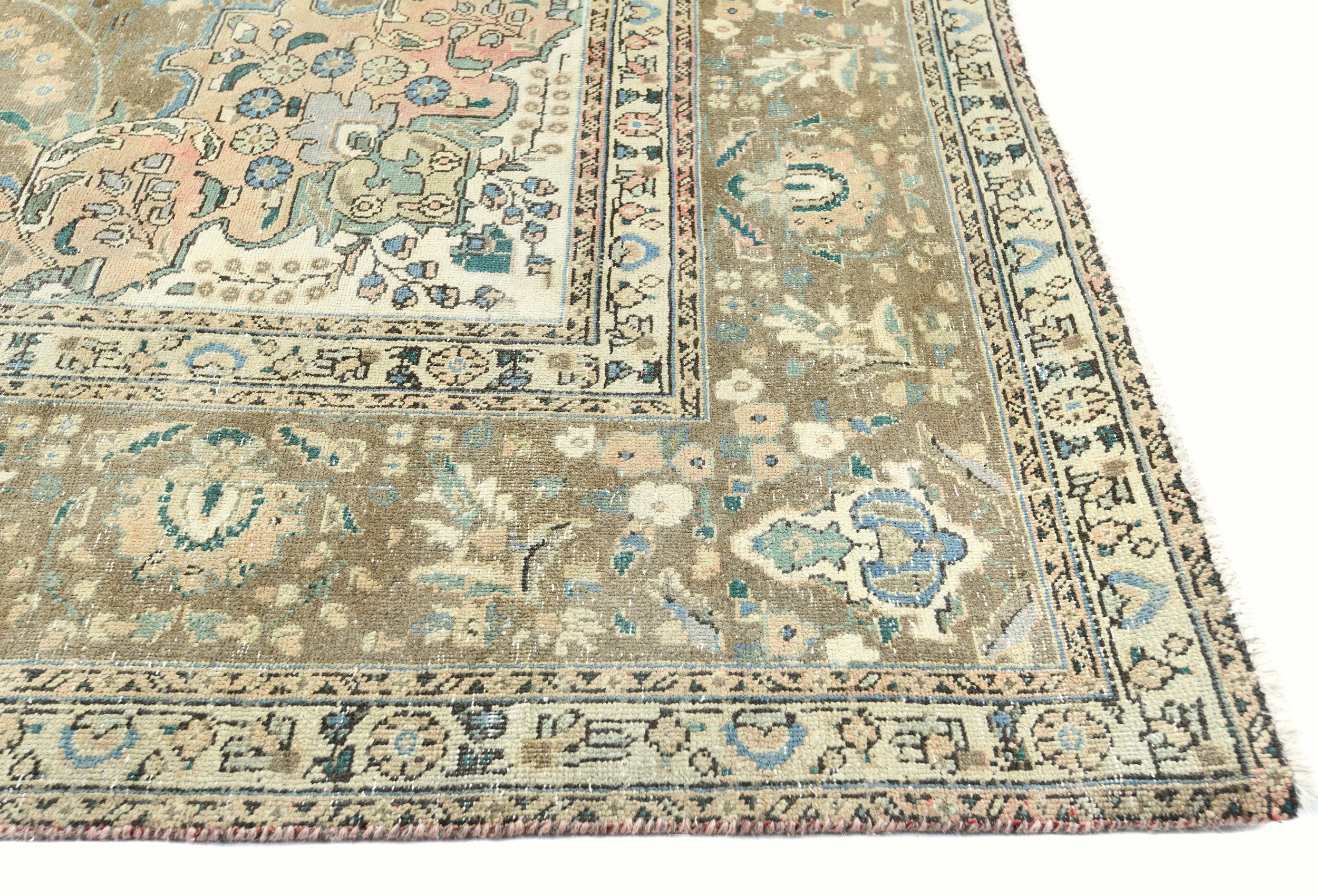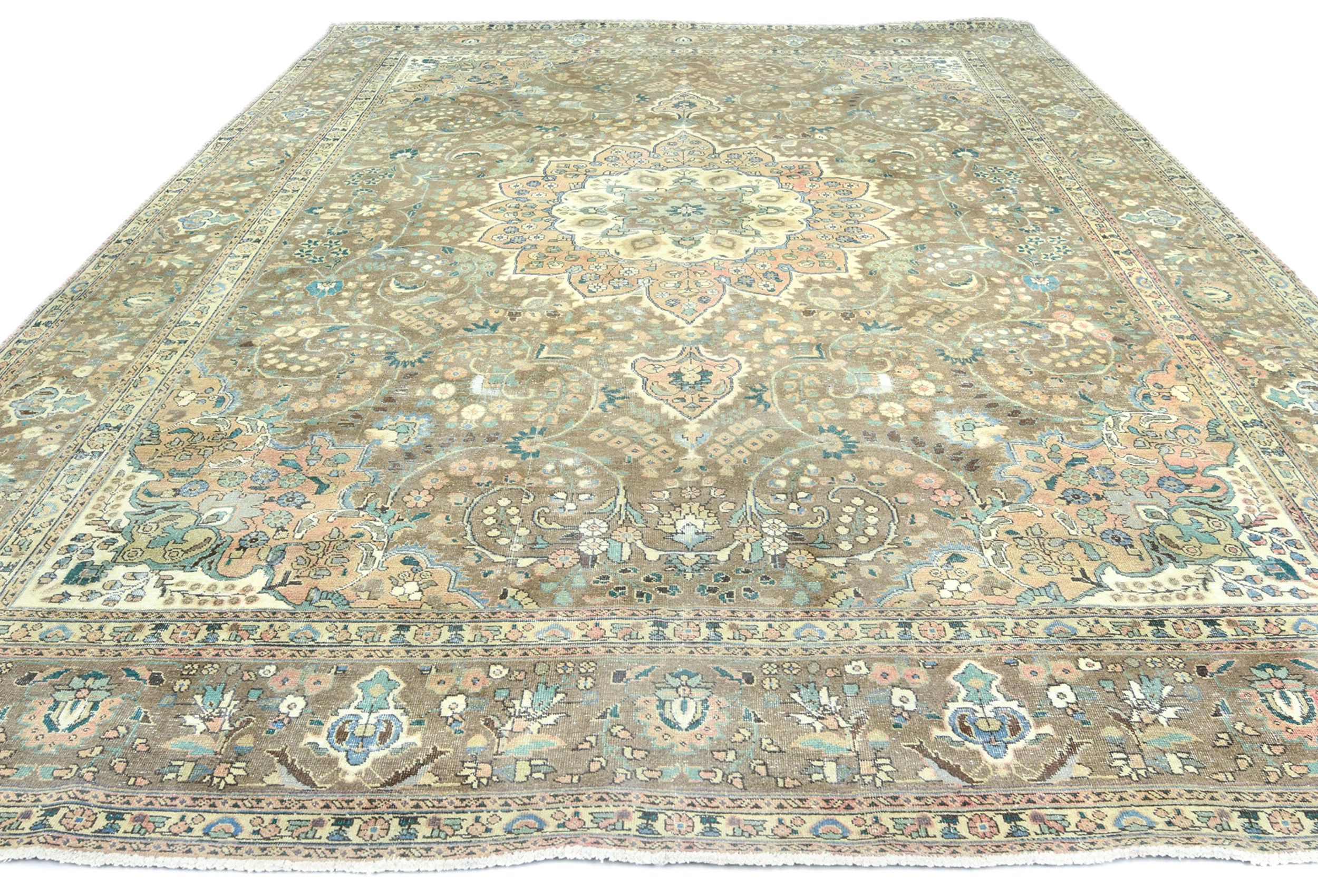 Antique Muted Floral 10X13 Distressed Vintage Oriental Rug